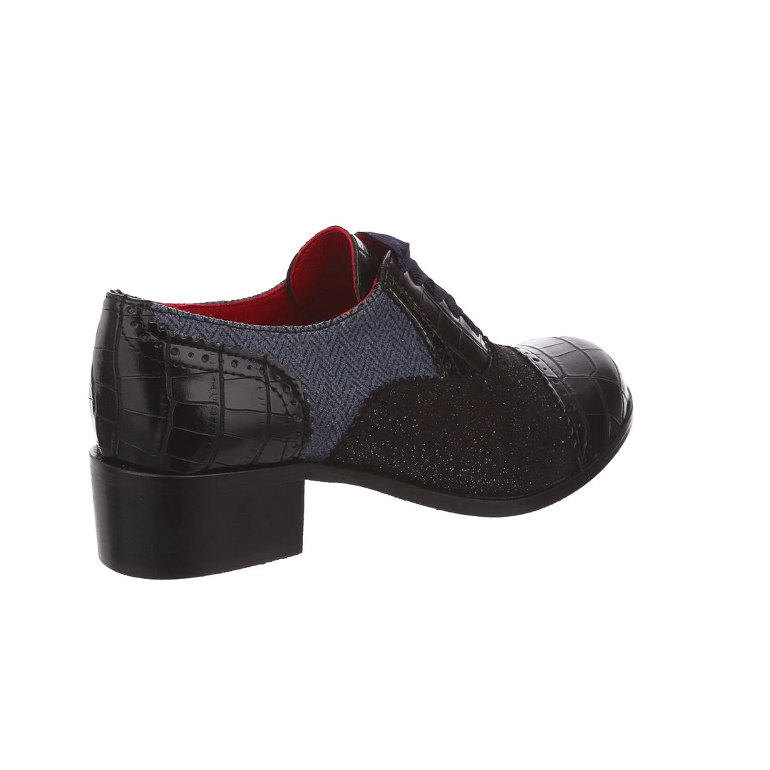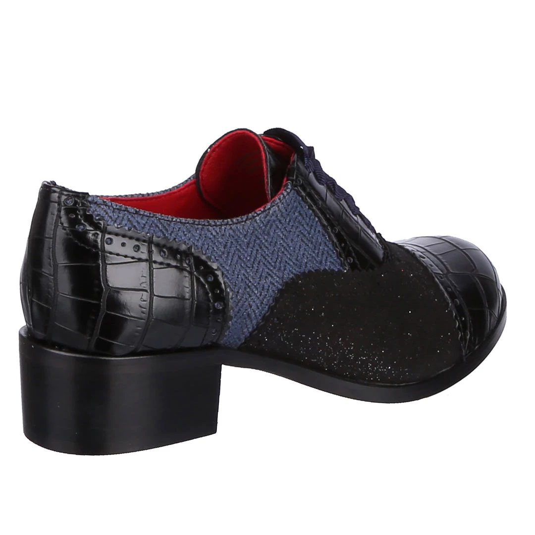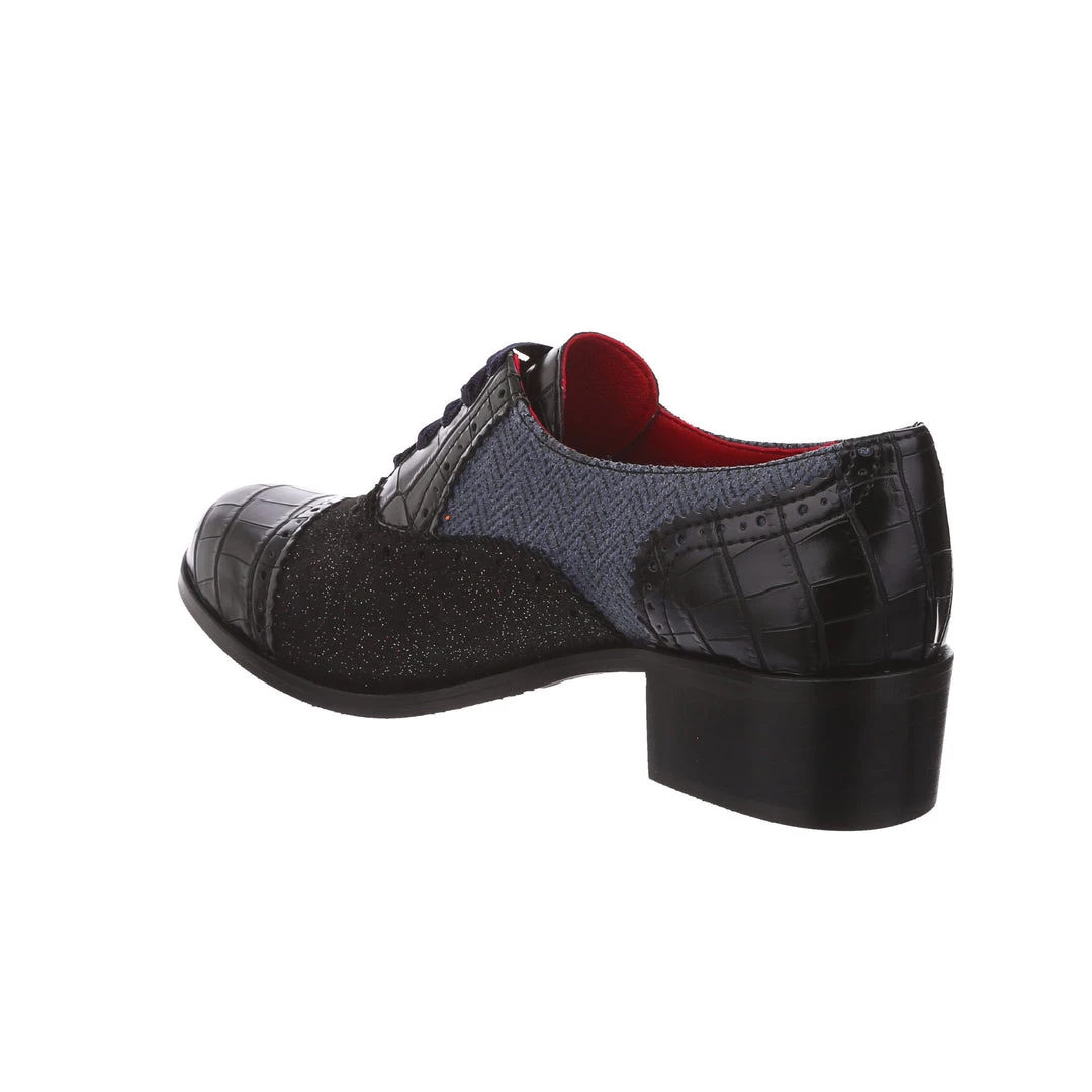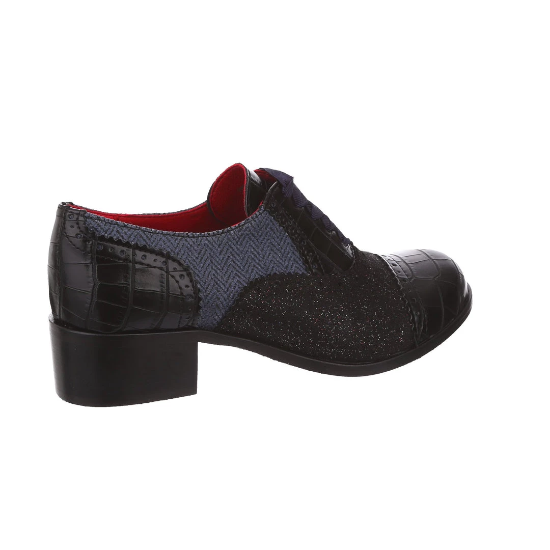Spruce up your winter wardrobe with these beauties! Inspired by traditional Oxford lace up shoes, and given our IC treatment to make them extra cute! Luxurious herringbone and glitter are combined with a low heel to make these practical, stylish and adorable! The perfect addition to any cosy wardrobe – great with warm tights or fun socks!
