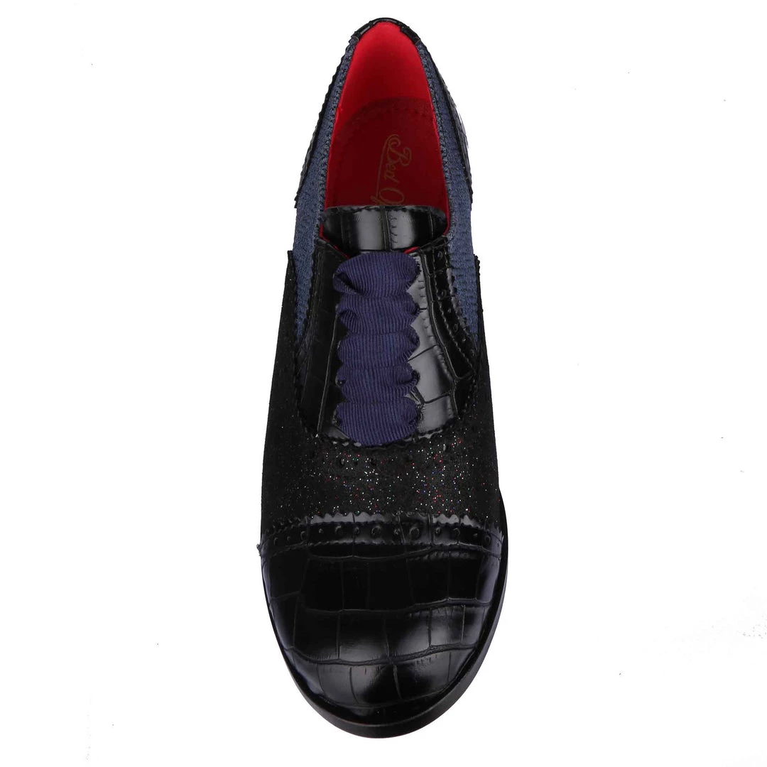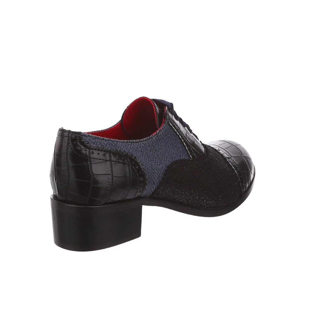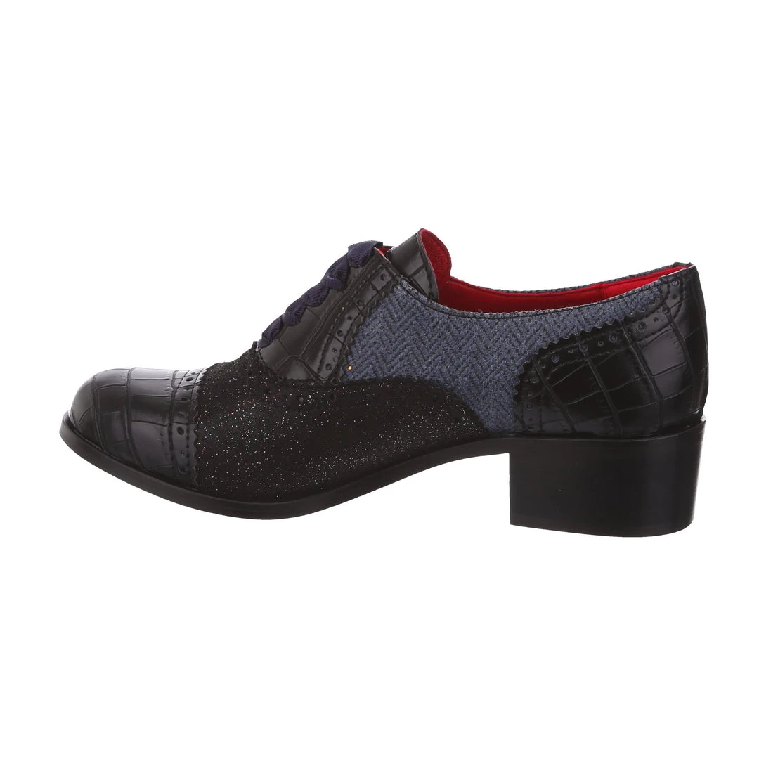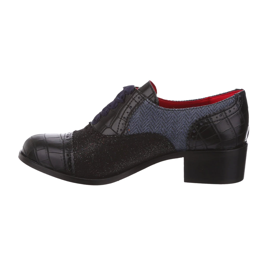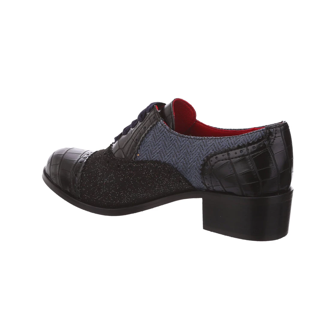 Spruce up your winter wardrobe with these beauties! Inspired by traditional Oxford lace up shoes, and given our IC treatment to make them extra cute! Luxurious herringbone and glitter are combined with a low heel to make these practical, stylish and adorable! The perfect addition to any cosy wardrobe – great with warm tights or fun socks!