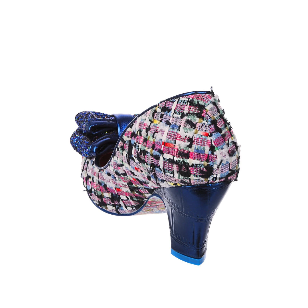 Something fabulous on your feet, these tweed mid heel courts are the perfect way to add something classy but fun to your wardrobe! The gorgeous blue textured tweed is paired with a deep indigo glitter bow on the toe and a shimmering sapphire tone metallic wrapped heel. Classically IC and sure to become instant faves!