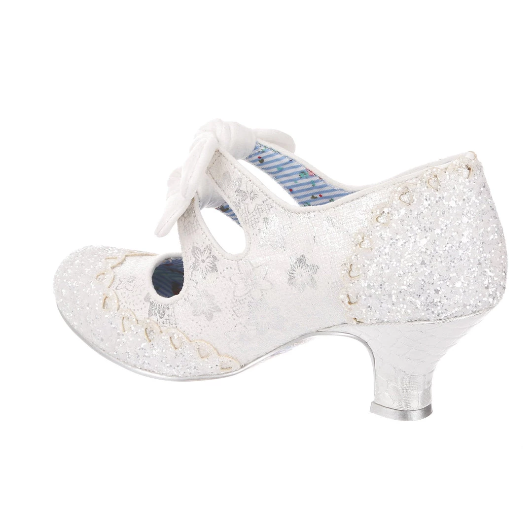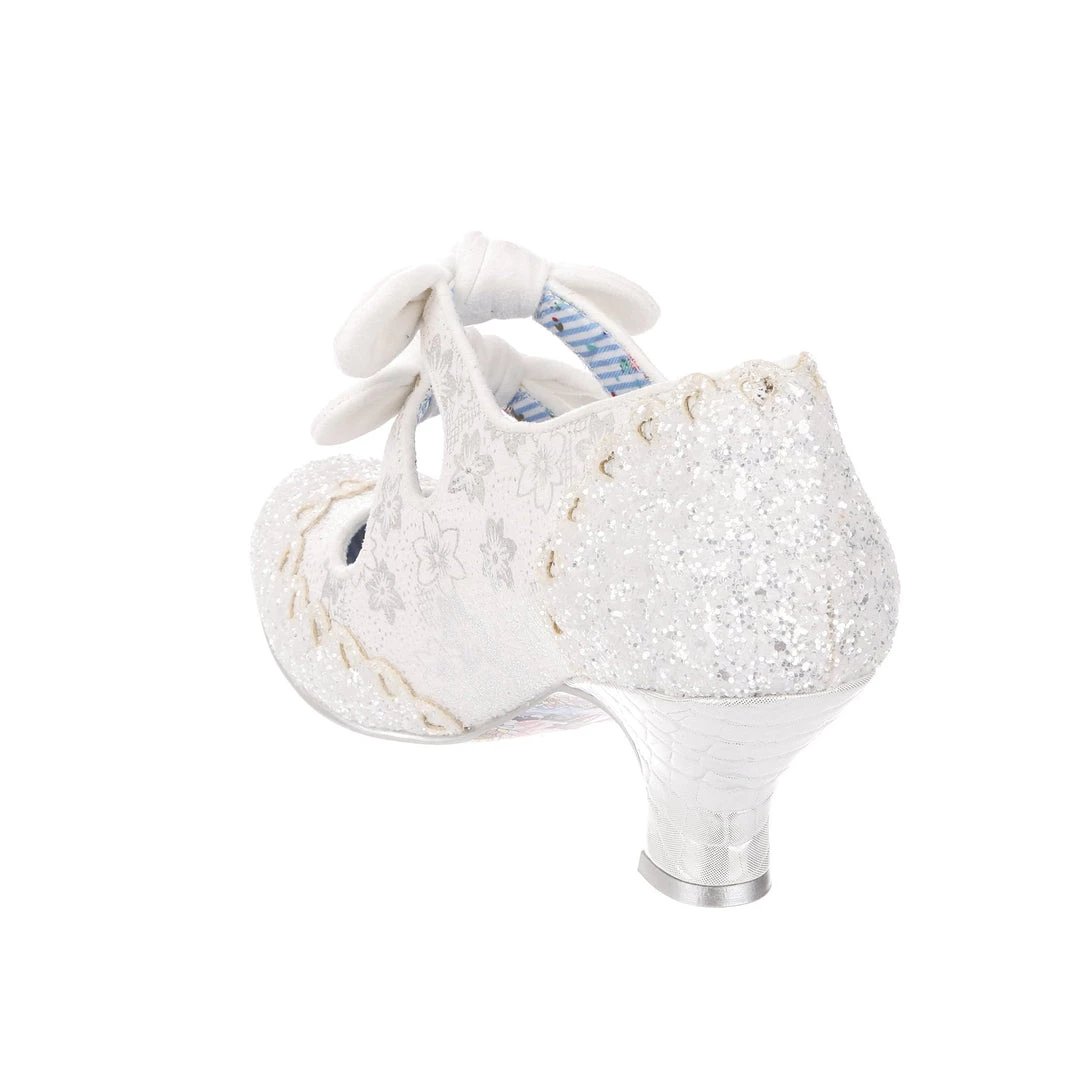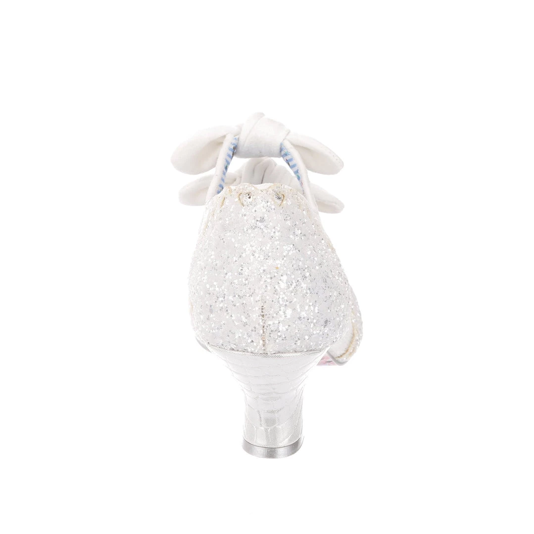 Aren’t these wedding shoe heaven?! Sparkle and shine with our iconic Calendulas that have been reimagined for your bridal dreams! With a subtle white and silver floral and stunning white glitter toe, with antiqued cut out hearts for added romance! Finished with twin bows on the straps that hides elastic sides to make it easy to slip these beauties on. Choose these as your happily ever after!