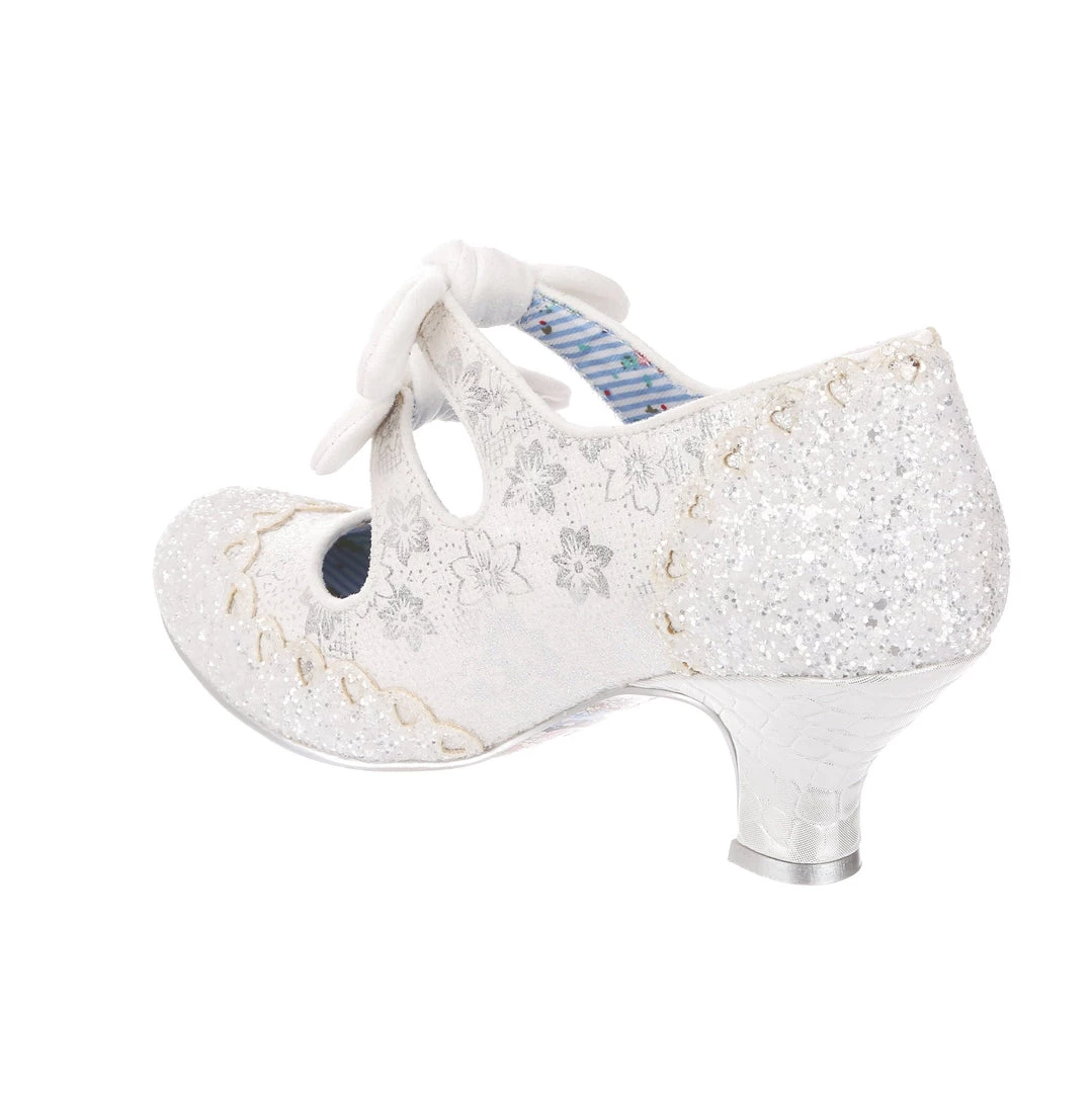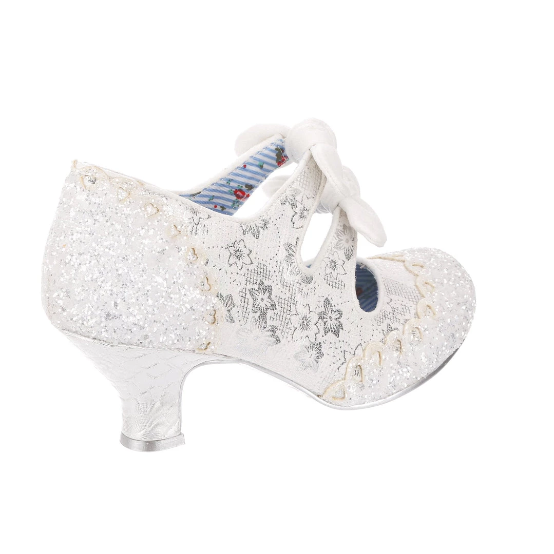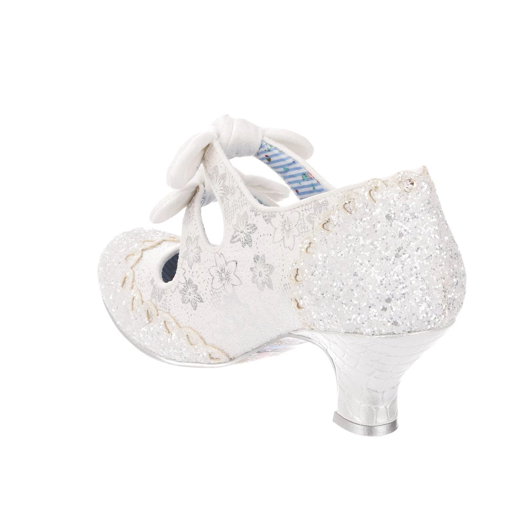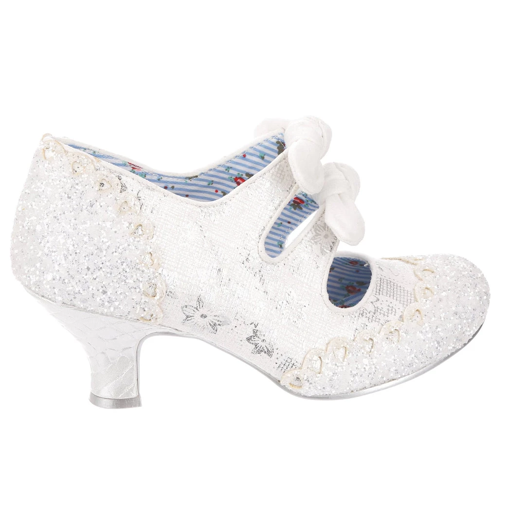 Aren’t these wedding shoe heaven?! Sparkle and shine with our iconic Calendulas that have been reimagined for your bridal dreams! With a subtle white and silver floral and stunning white glitter toe, with antiqued cut out hearts for added romance! Finished with twin bows on the straps that hides elastic sides to make it easy to slip these beauties on. Choose these as your happily ever after!