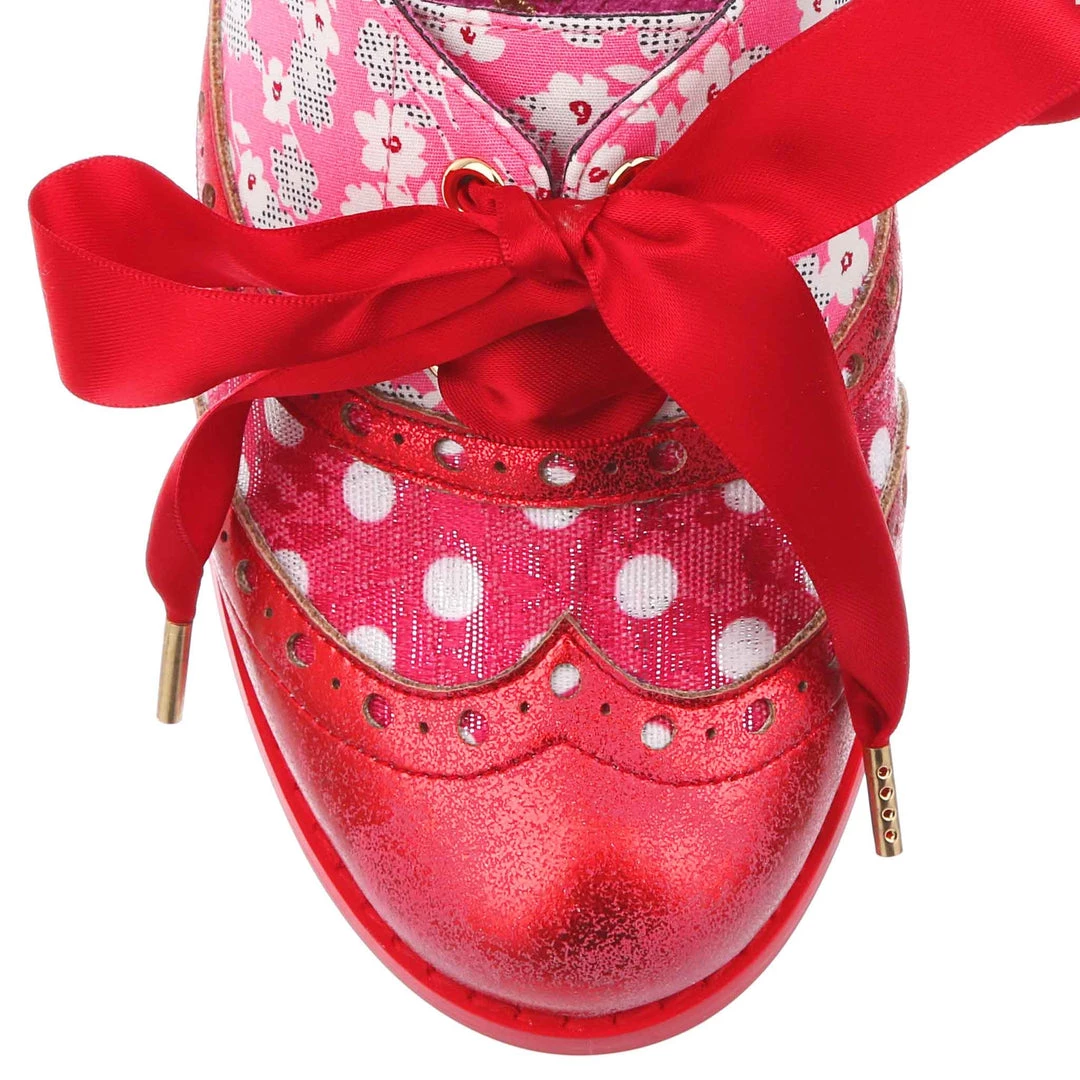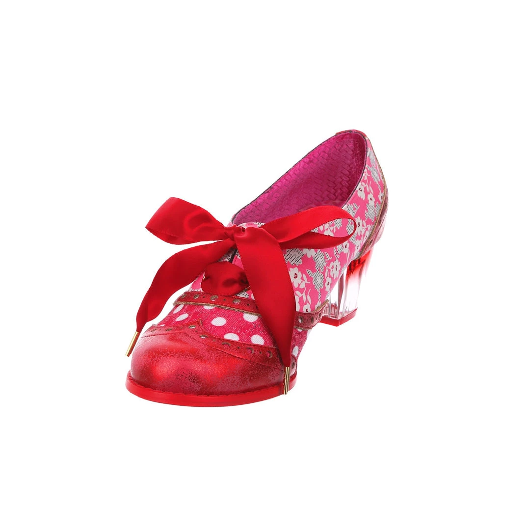 Lace up something lovely with these adorable vintage style mid heels! A combination of red toned floral, polkadots and metallics, these comfortable but fun heels have ribbon laces for ease of getting on and off and also feature our fave lucite heel – in a wearable midi height! Poised, preppy and perfect for you!