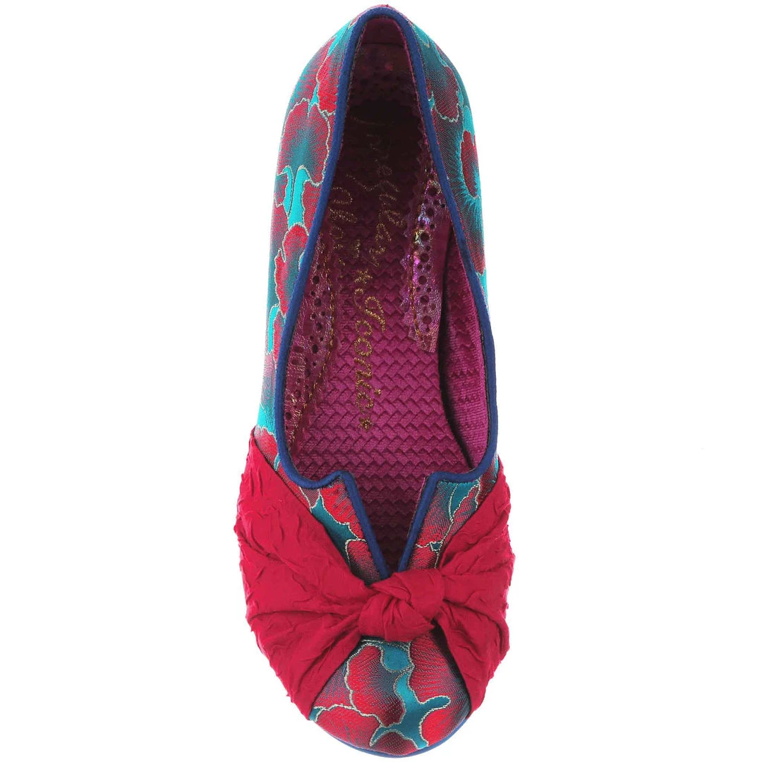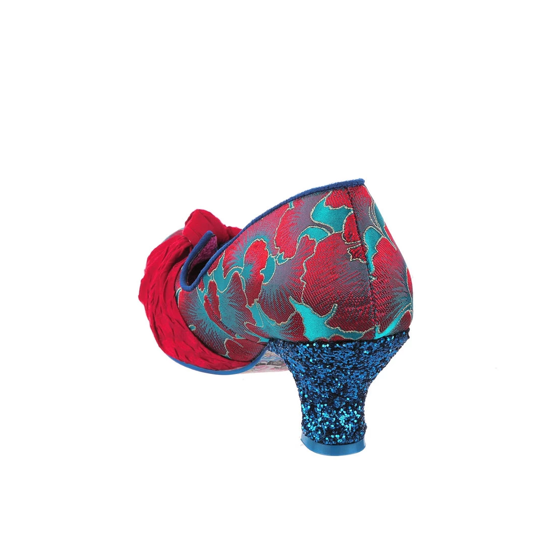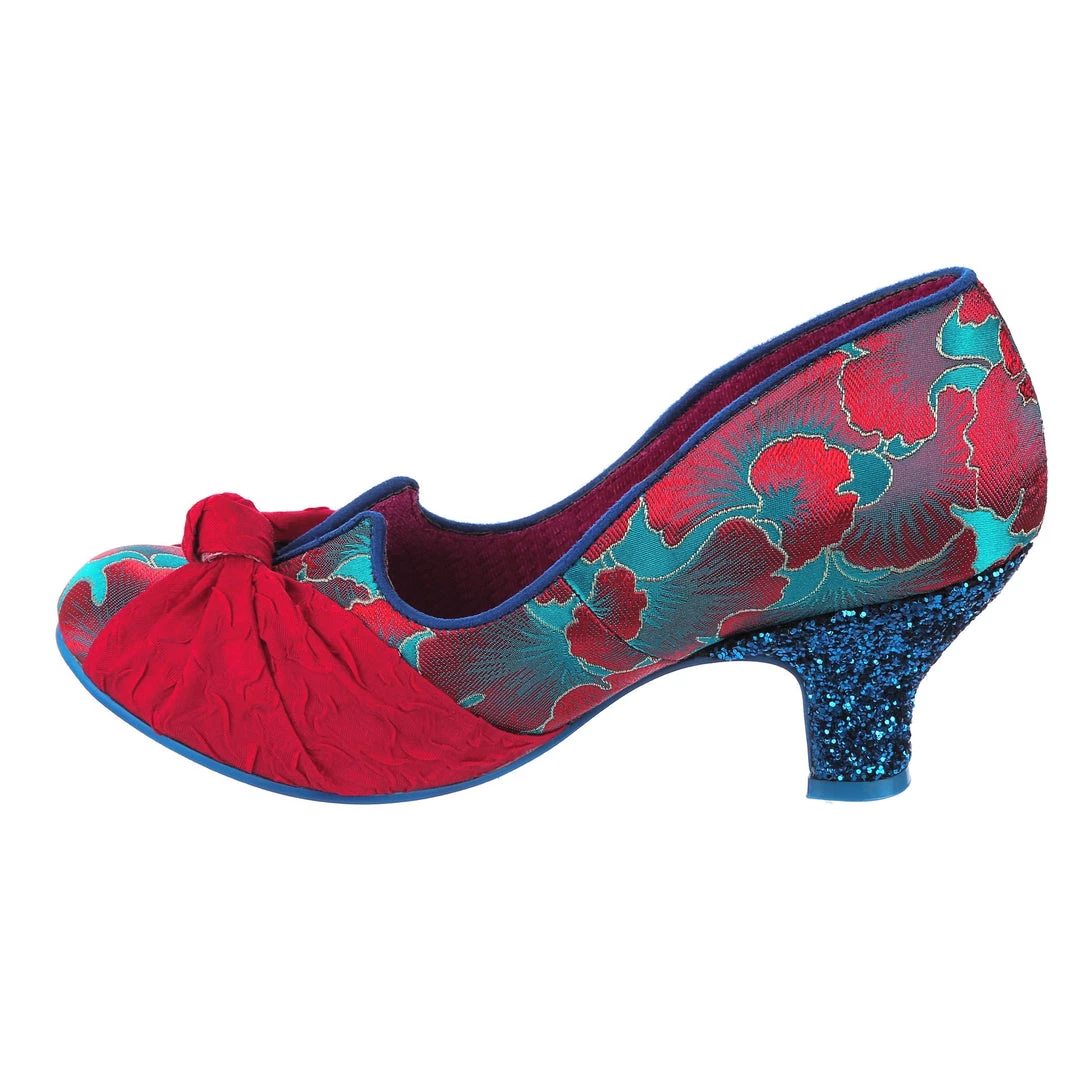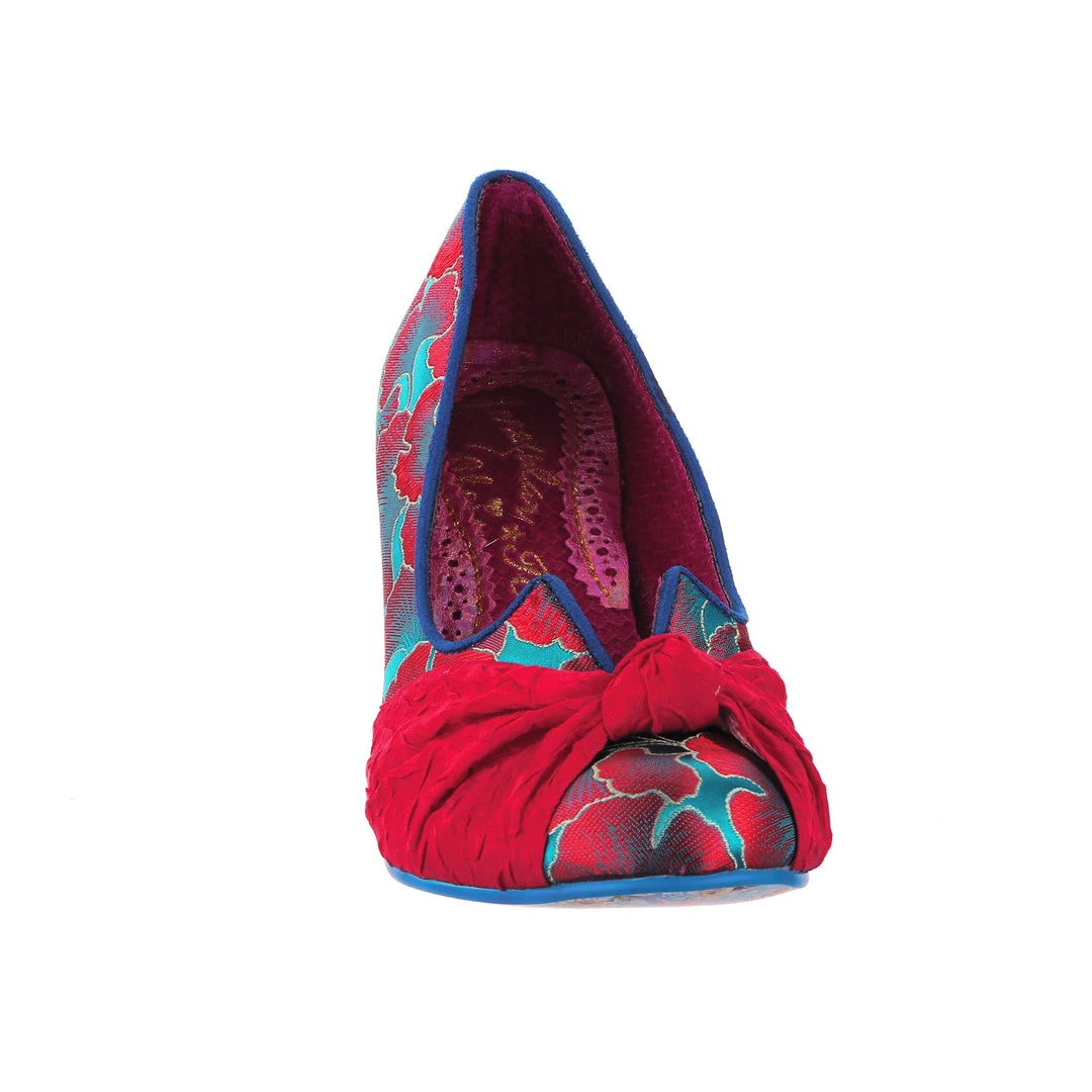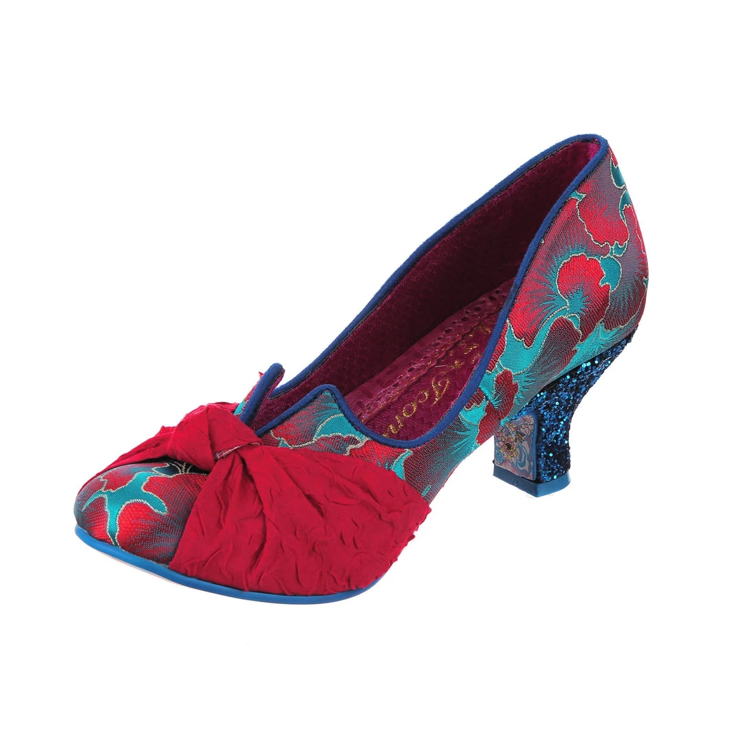 Stomach in knots? These beauties are here to ease your fashion troubles! These adorable mid heels feature a statement knot on the toe made from a fabulous textured crimson fabric, which is contrasted to the stunning blue and red patterned upper! An elegant V cut on the topline gives a lovely final touch to these gorgeous IC classics!