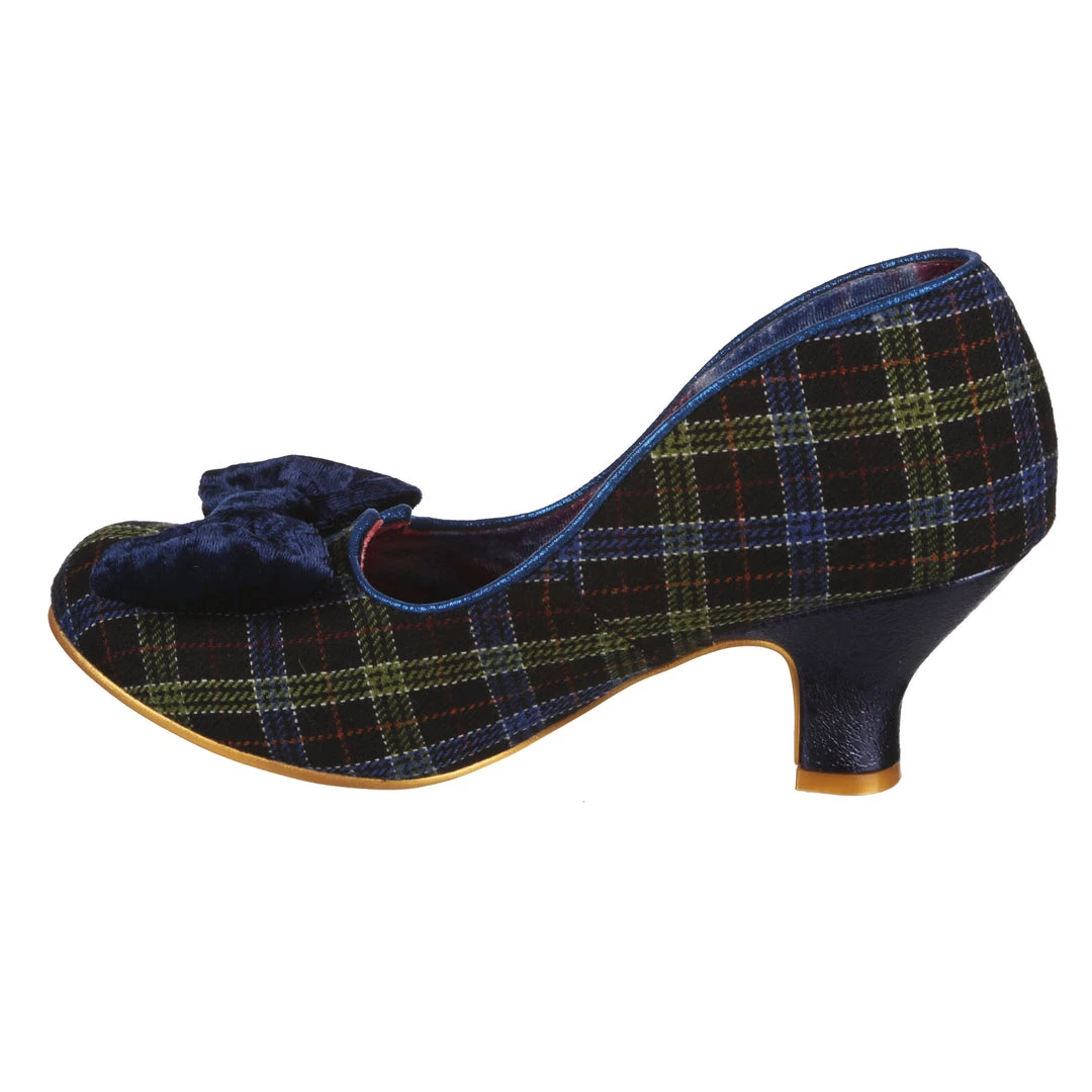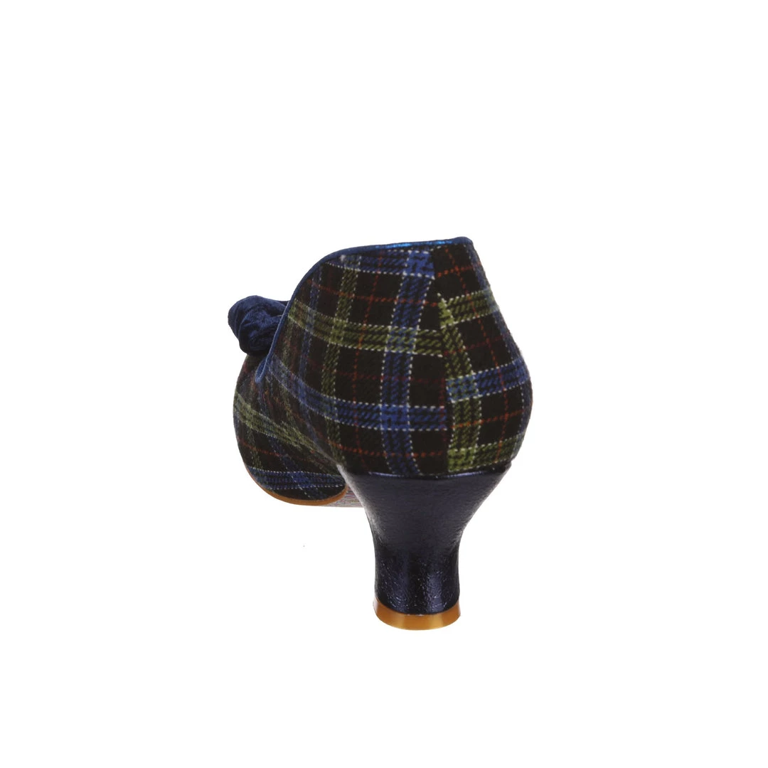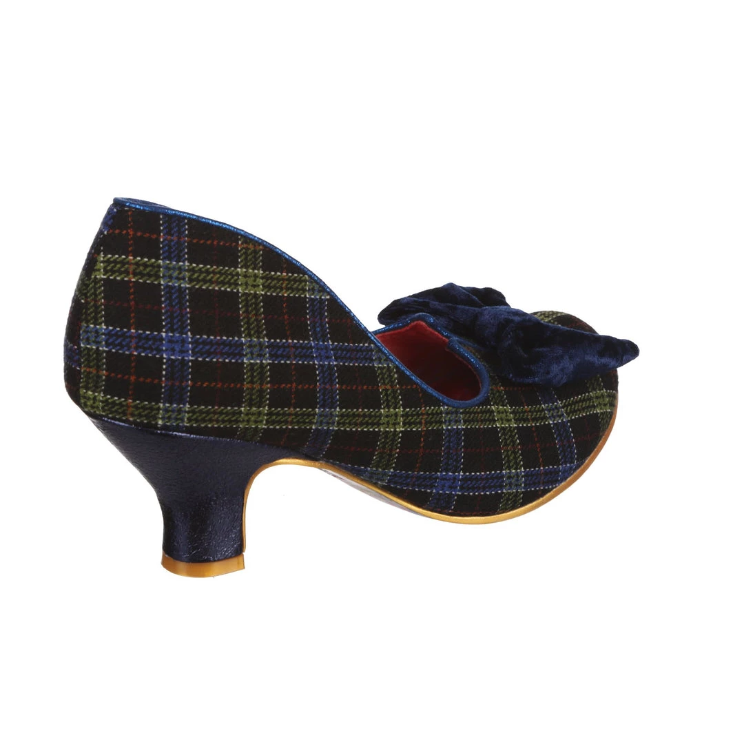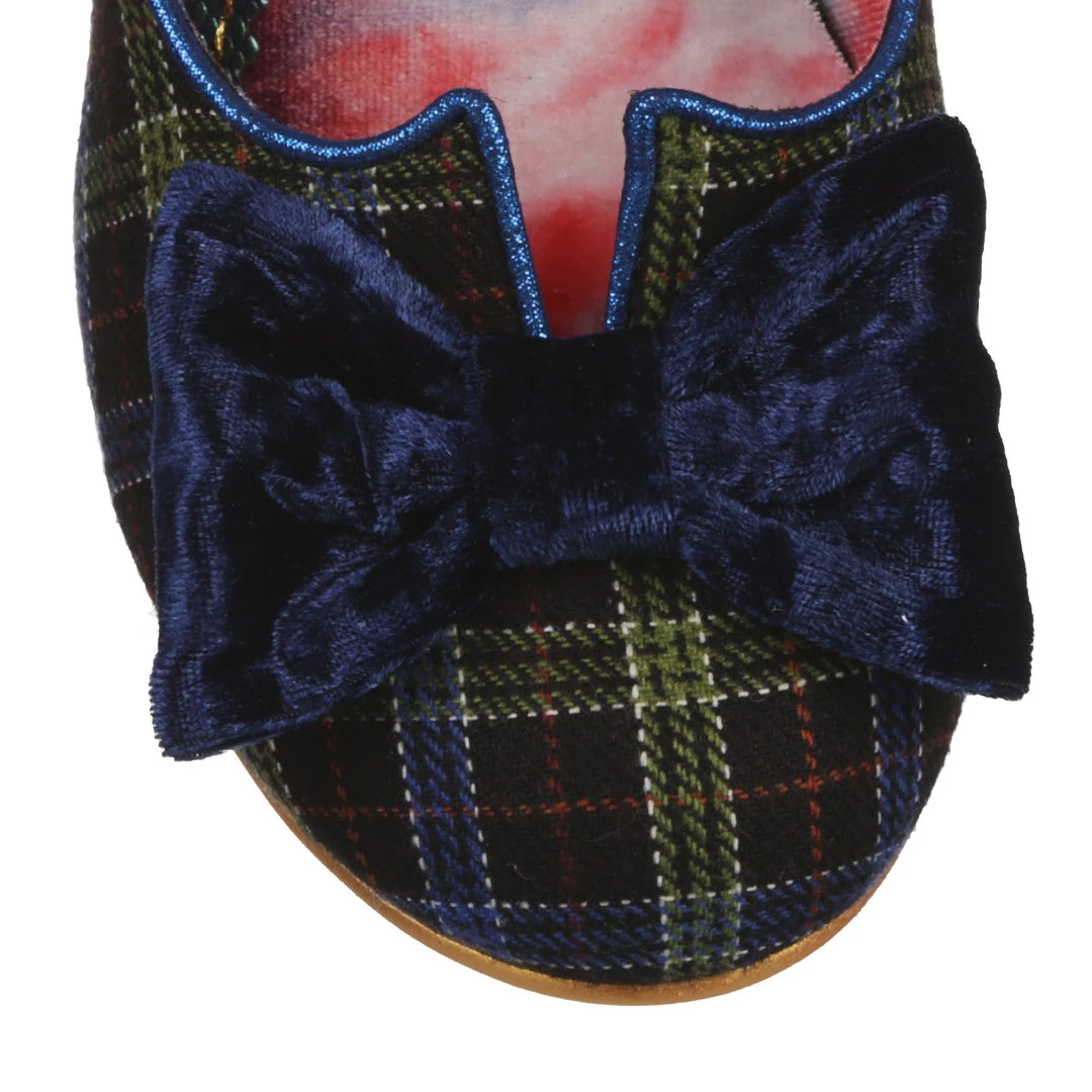 A wearable low heel in rich blue tartan check is paired with a subtle matching velveteen bow to the toe. A classic leg-flattering split vamp and a cute round toe make these a perfect pair for your autumn occasions! A perfect new take on our classic Iconic style.