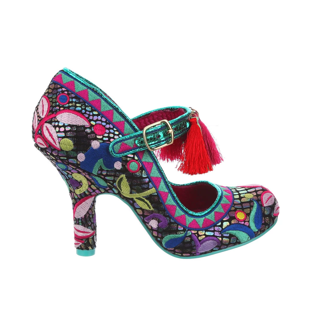 Add some tassels and fun to your outfit! Our magical Ekaterina is back in all new colours! Dreamy deep teal is paired with fuchsia and silver details on these fancy embroidered beauties! The embroidered Mary Jane strap means they are comfortable and secure, and the heel is a classic IC shape, sure to be instant faves!
