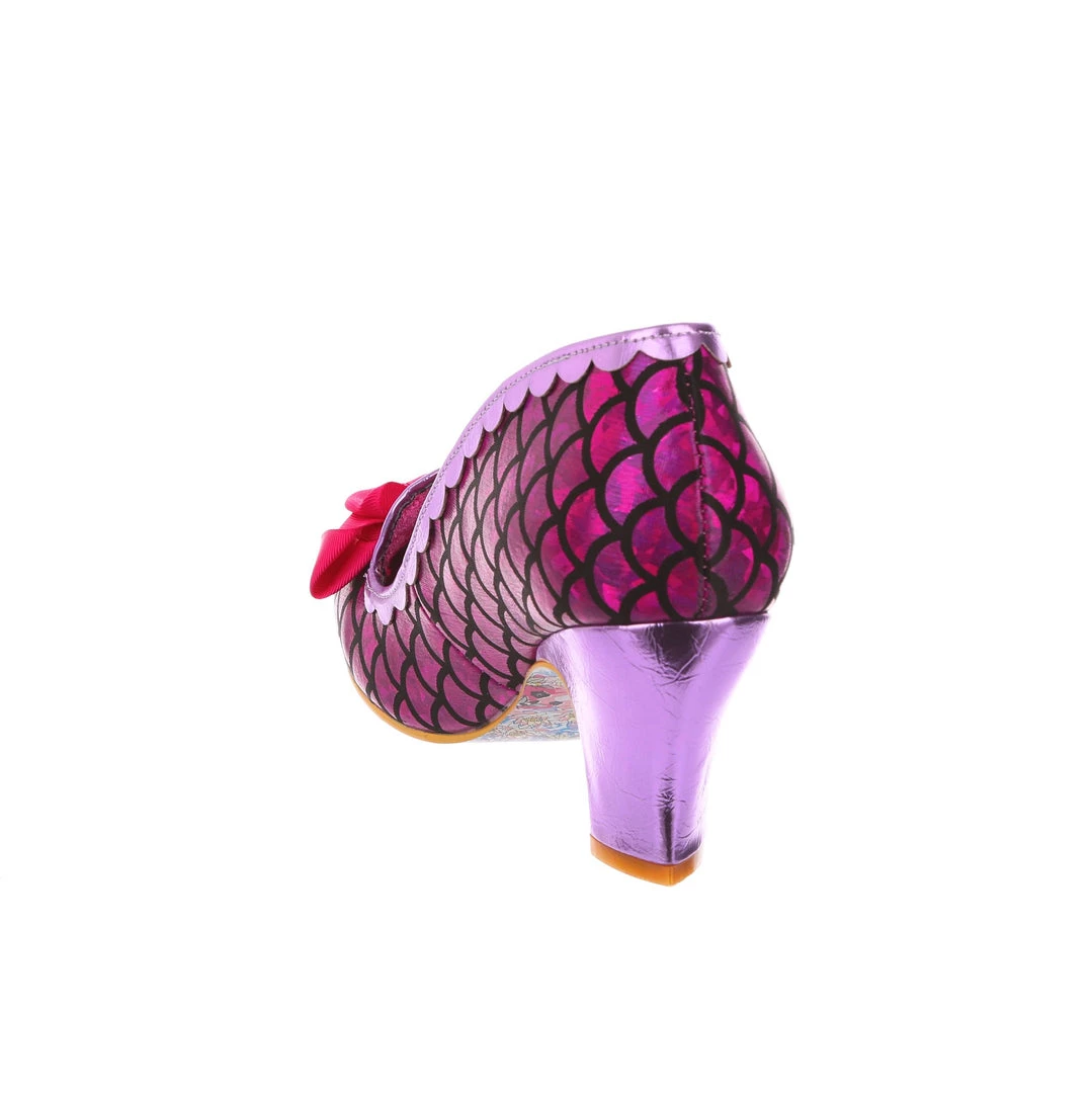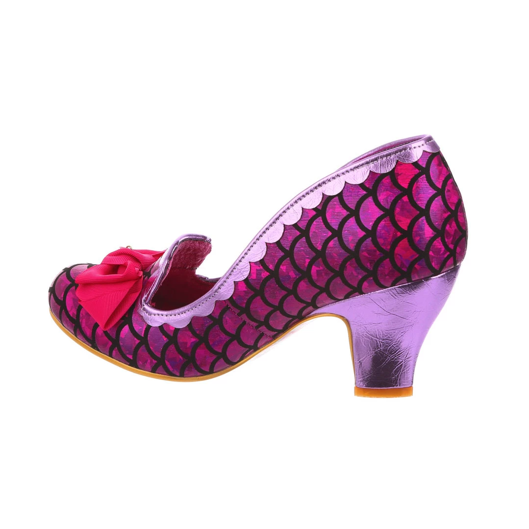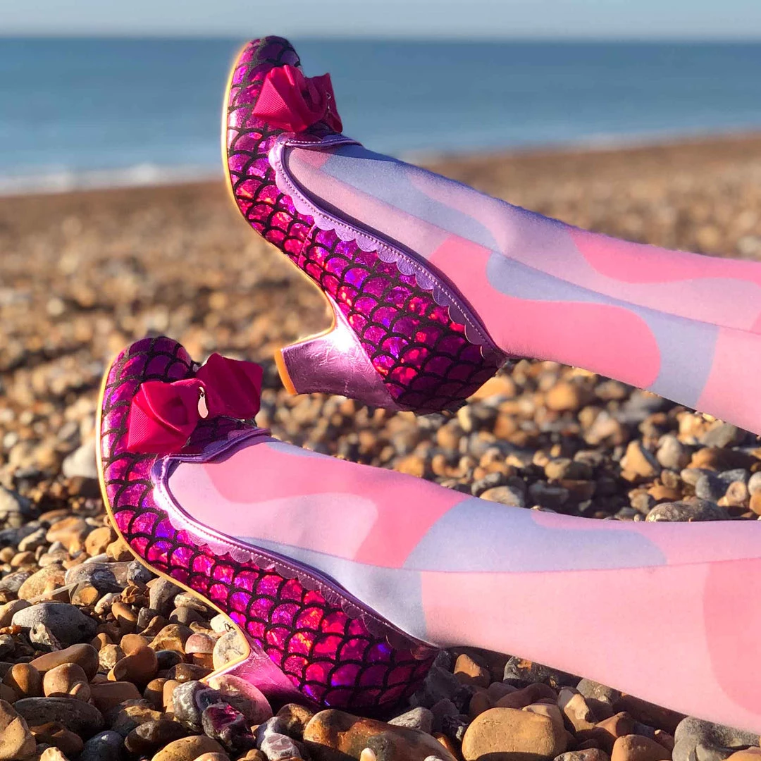 These beauties were mer-made for you! Featuring a magical shimmering fuchsia metallic scale print, these mid heel classic Kanjankas are sure to give you a seaside smile! Paired with a matching pink bow, heel and scalloped edging, these perfect heels are sure to be a hero piece for any of you secret mermaids out there!
