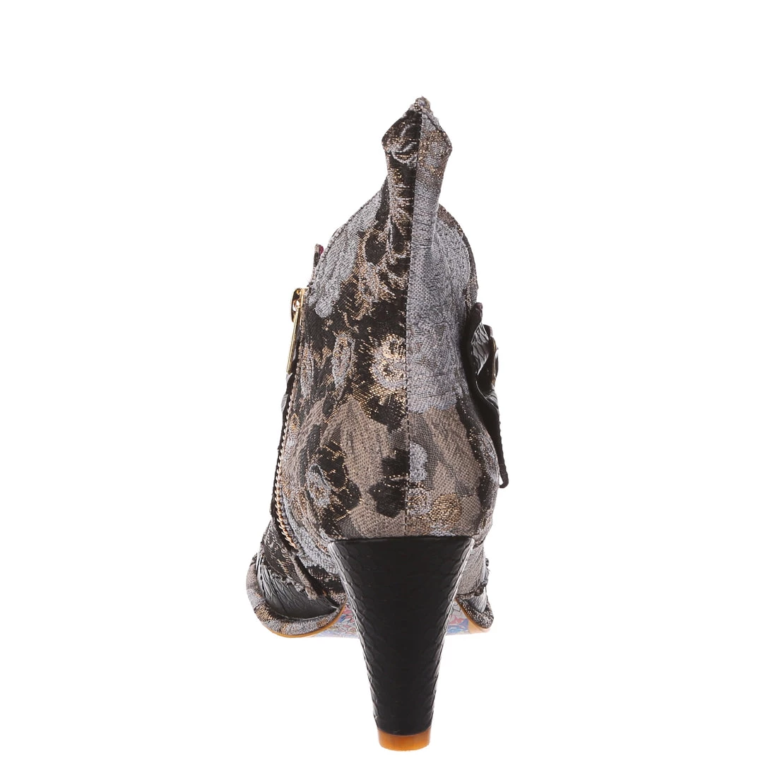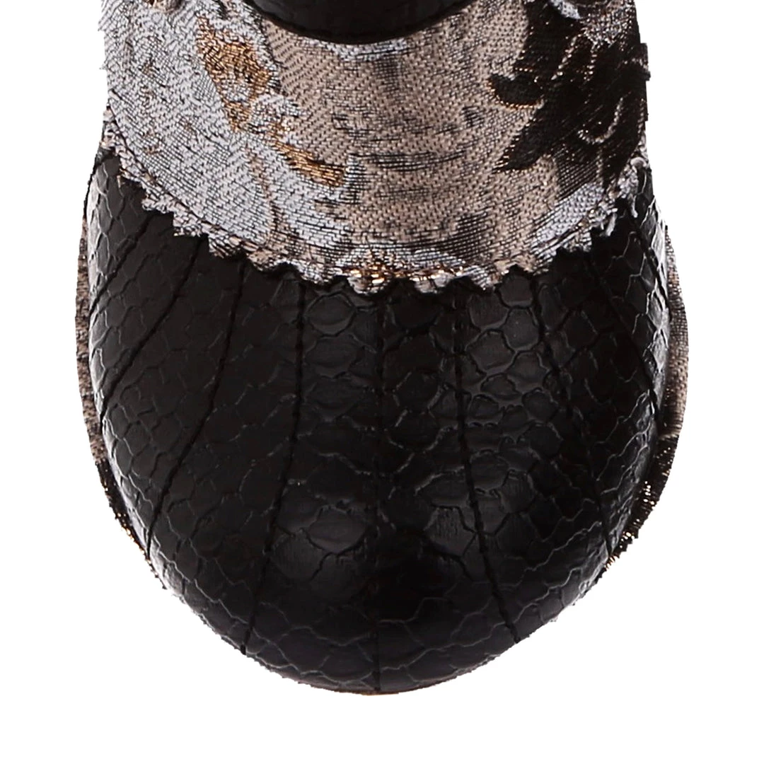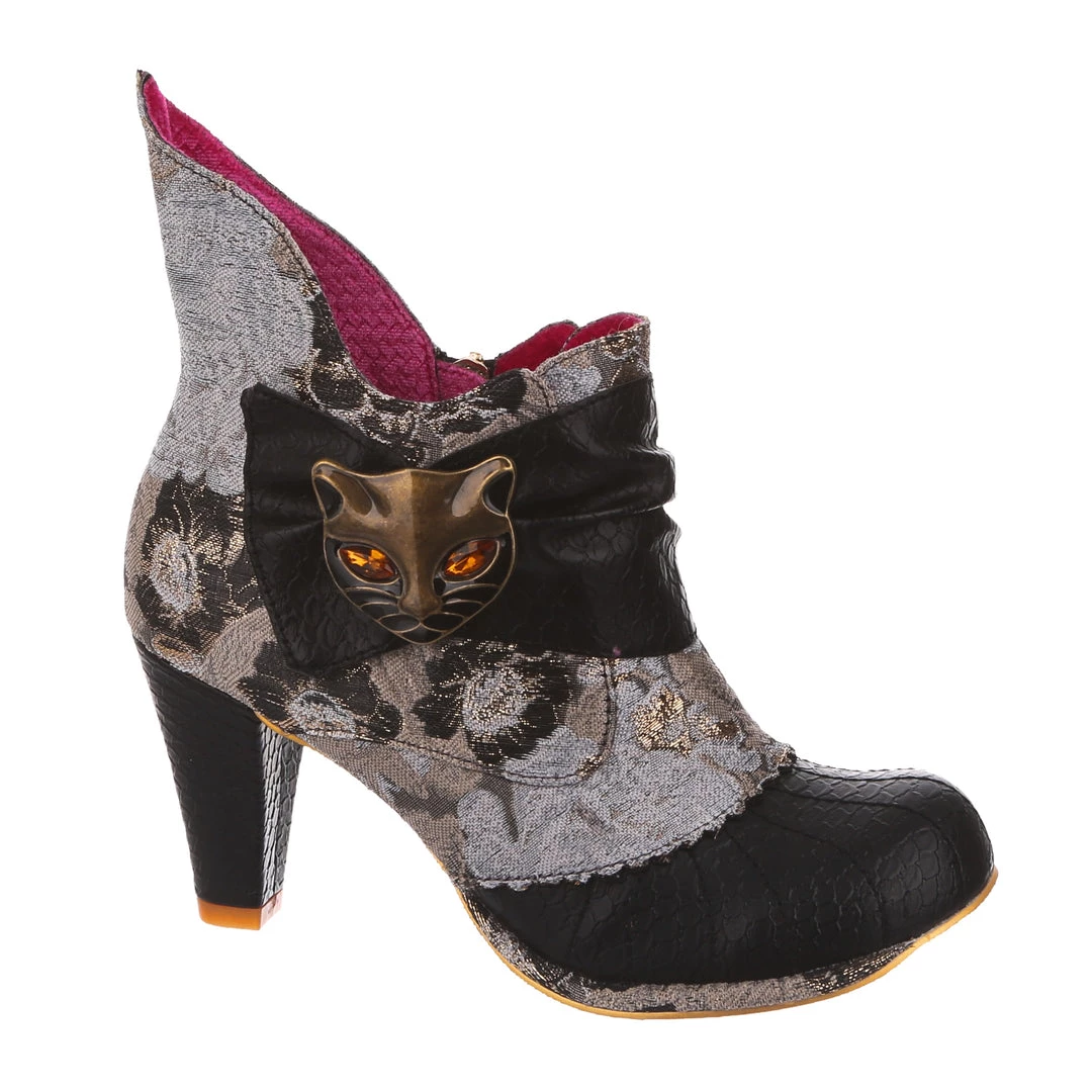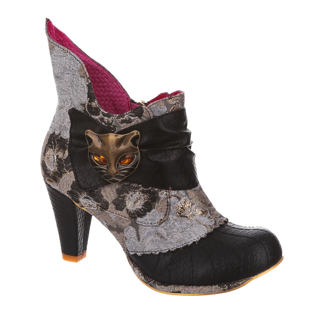 Meee-ow! Get your catwalk on in these gorgeous high heel boots! Our fan favourite Miaow has been reimagined this season in luxurious monochrome brocade fabric and shimmering black metallic, all topped off of course with the signature cat charm! Perfect to give any outfit a little boost of Irregular style, add them to your life today!