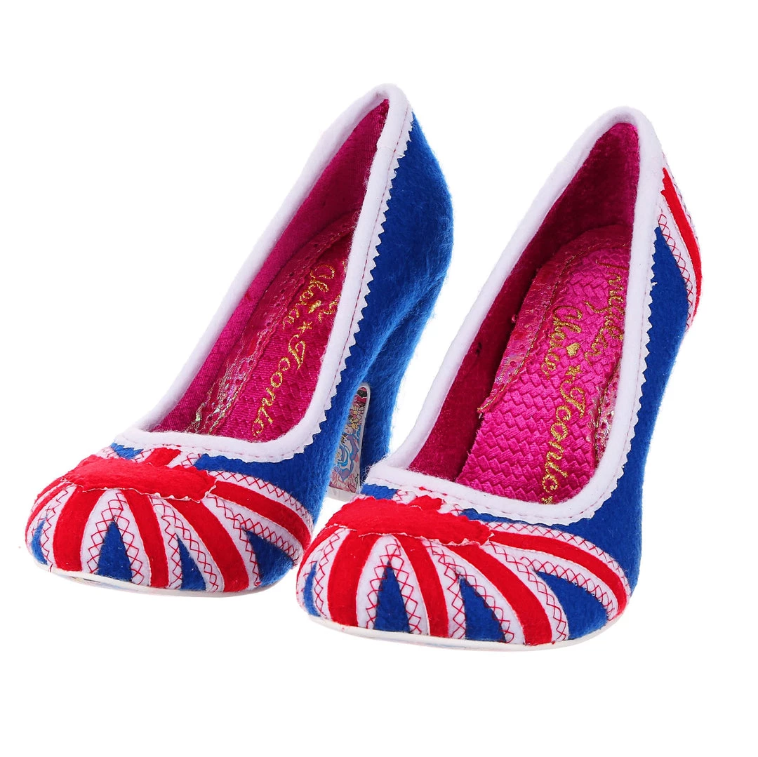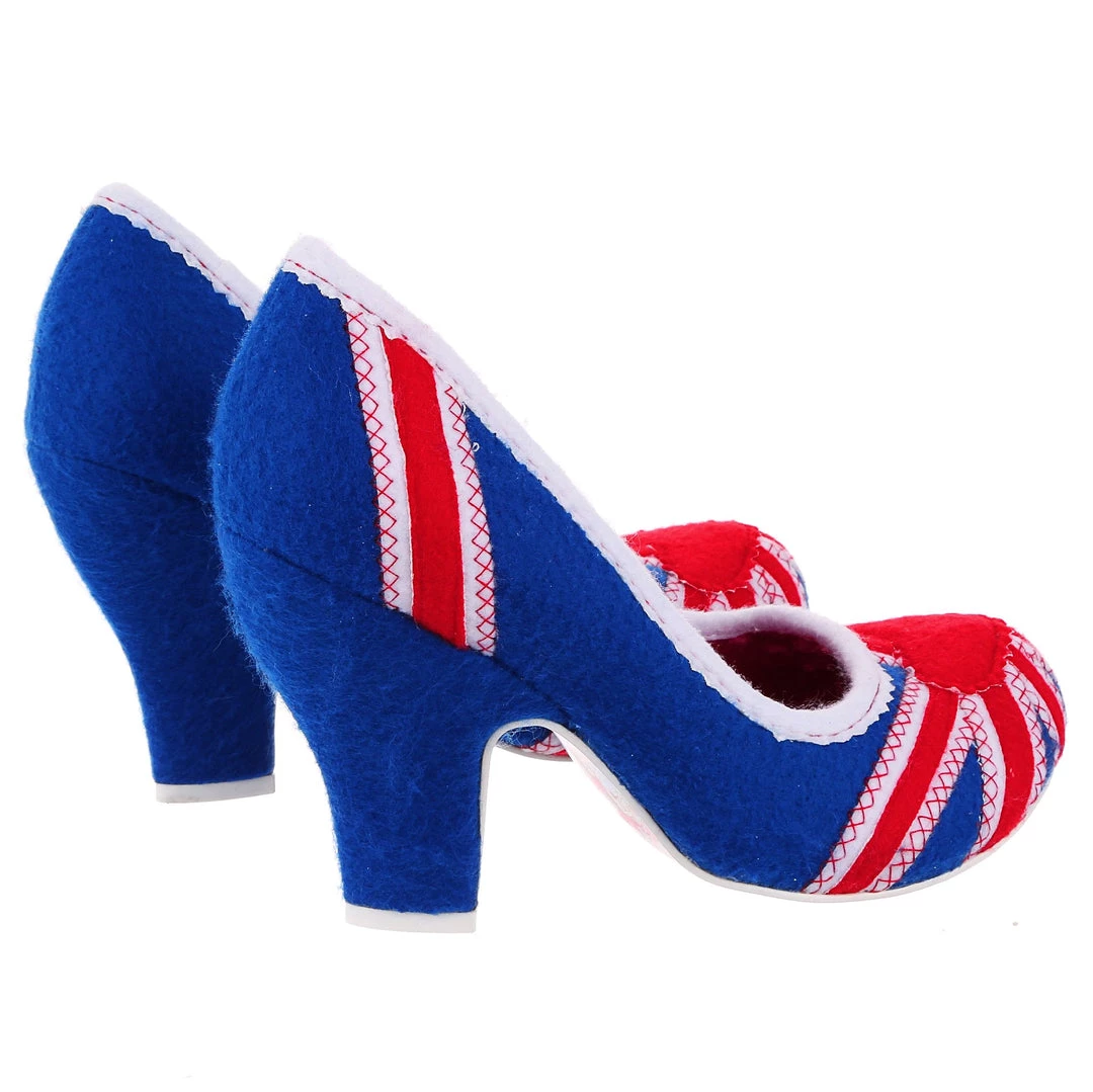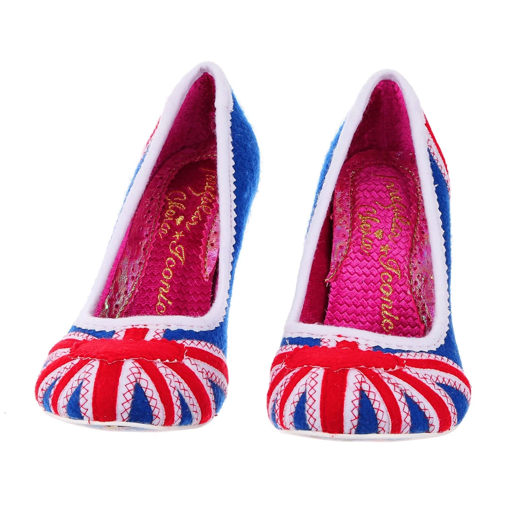 Celebrate the Jubilee in style with our reworked version of IC icon Patty! The platinum edition of the Union Jack high heels are fabulous in red, white and blue and on a comfortable and sturdy high heel. Get that patriotic feeling starting with your toes!