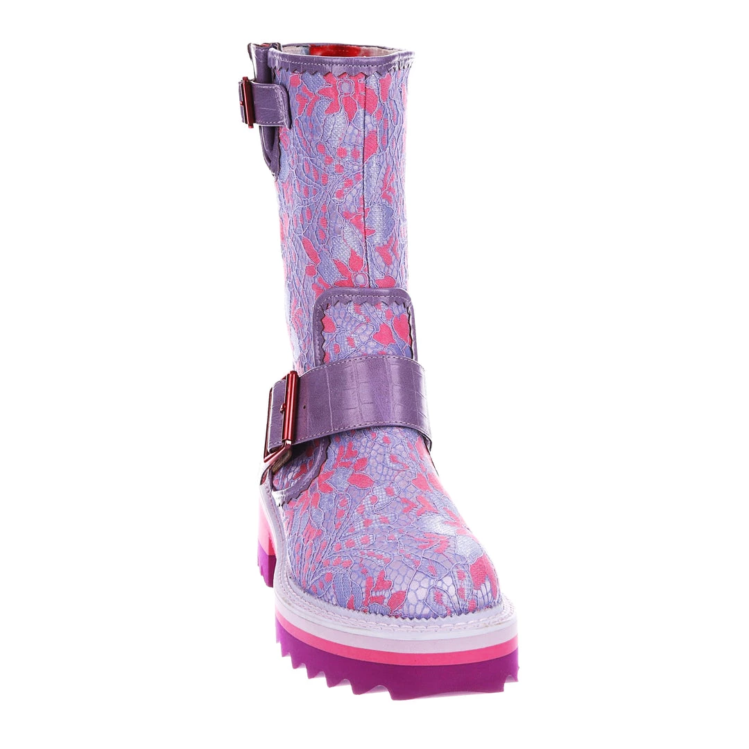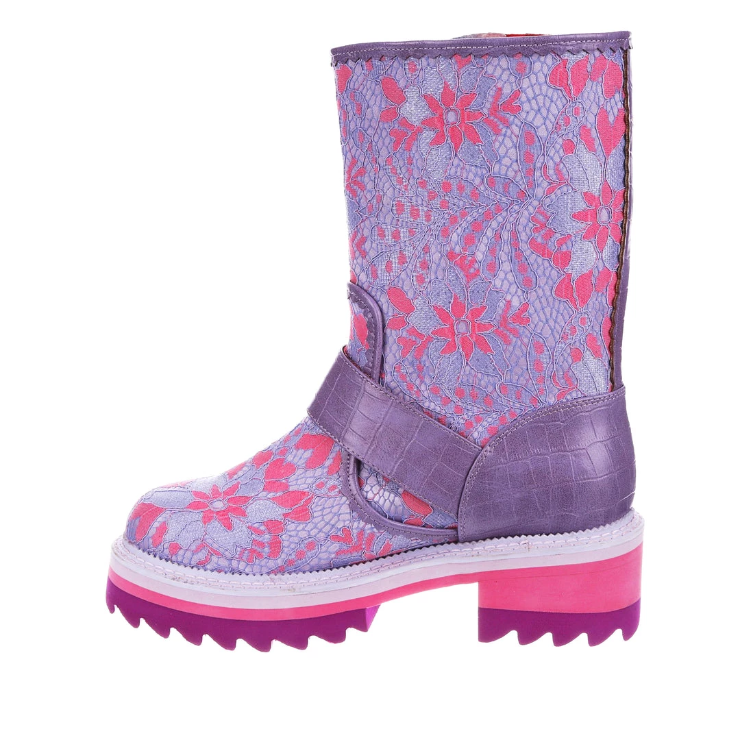Perfect for those chilly walks, these boots are here to infuse some fun into your wardrobe for the colder months! Featuring a bright lilac and baby pink floral fabric, accented with lavender crocodile texture and rose gold buckles – these boots are sure to take any outfit to the next level! The chunky tread means that they are super comfortable and also create a great impact when worn! Perfect to pair with some fun tights or snazzy trousers, add them to your life today!