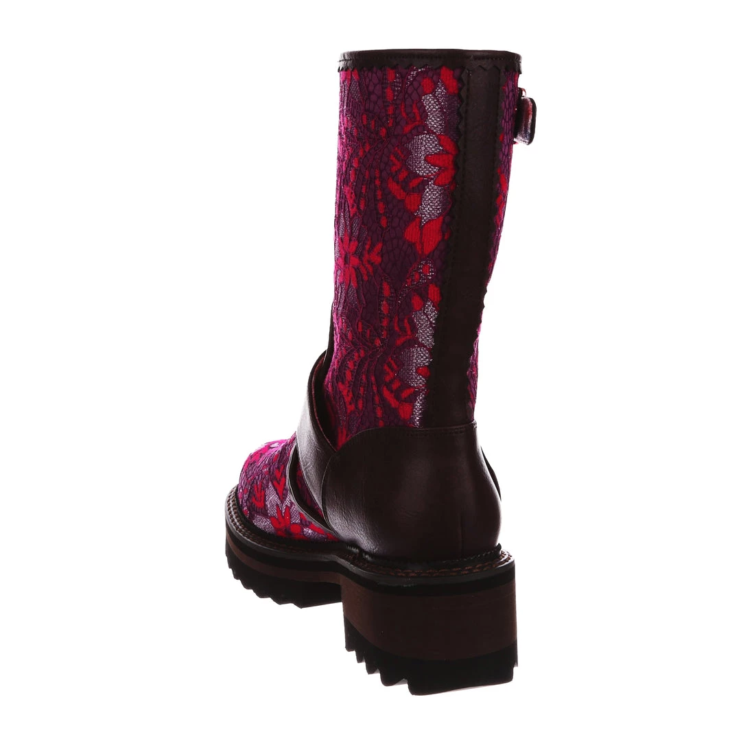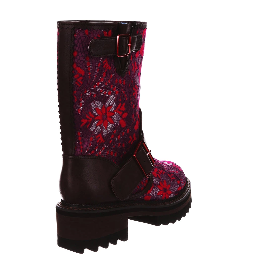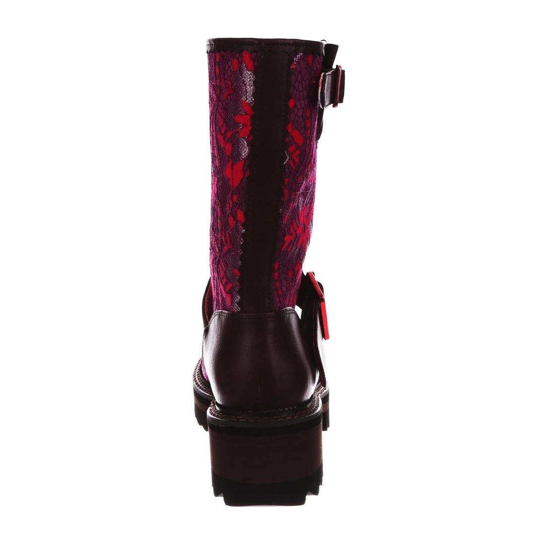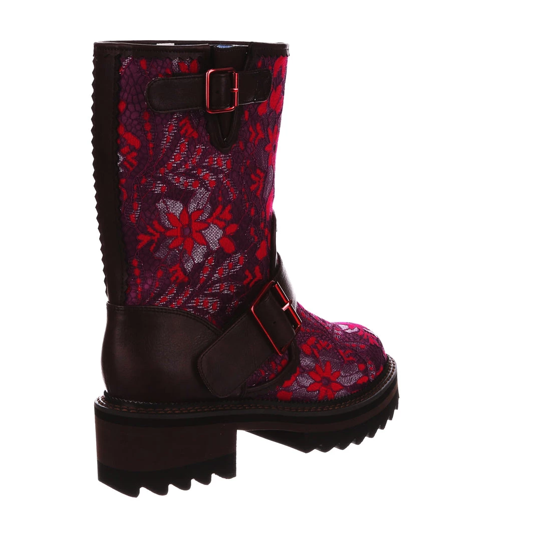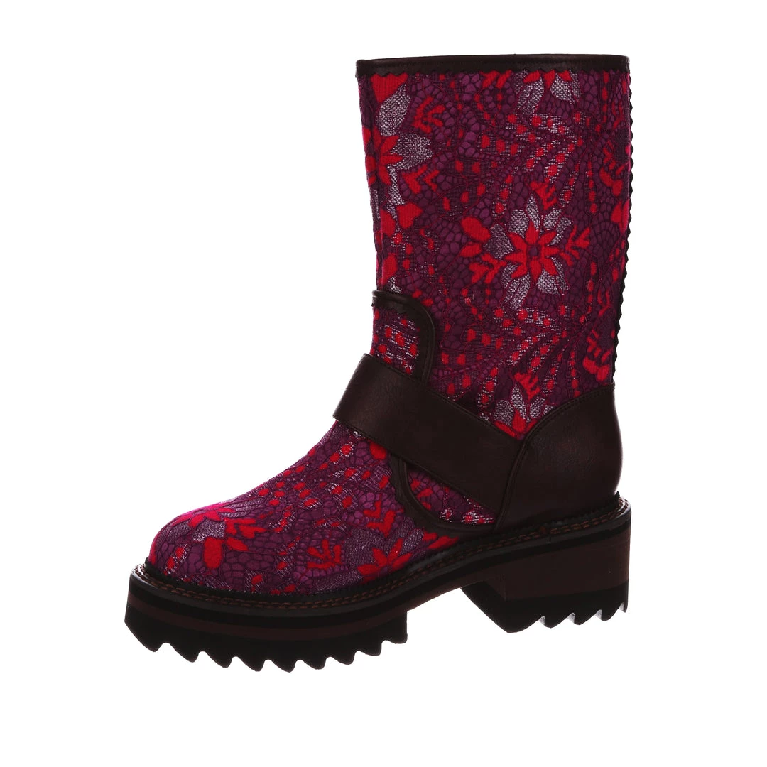 Perfect for those chilly walks, these boots are here to infuse some fun into your wardrobe for the colder months! Featuring a striking purple and hot pink floral fabric, accented with an aubergine leather texture and rose gold buckles – these boots are sure to take any outfit to the next level! The chunky tread means that they are super comfortable and also create a great impact when worn! Perfect to pair with some fun tights or snazzy trousers, add them to your life today!
