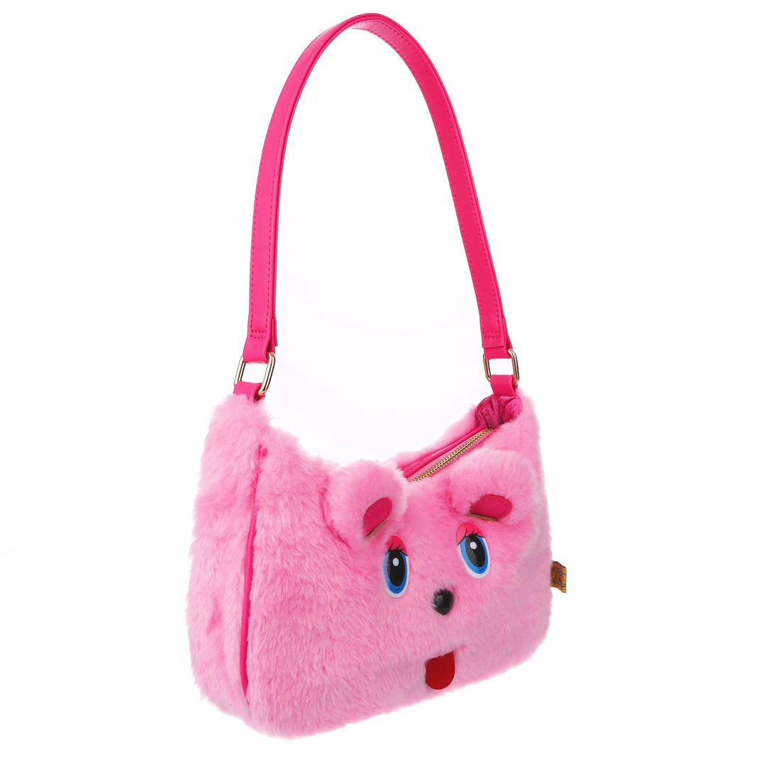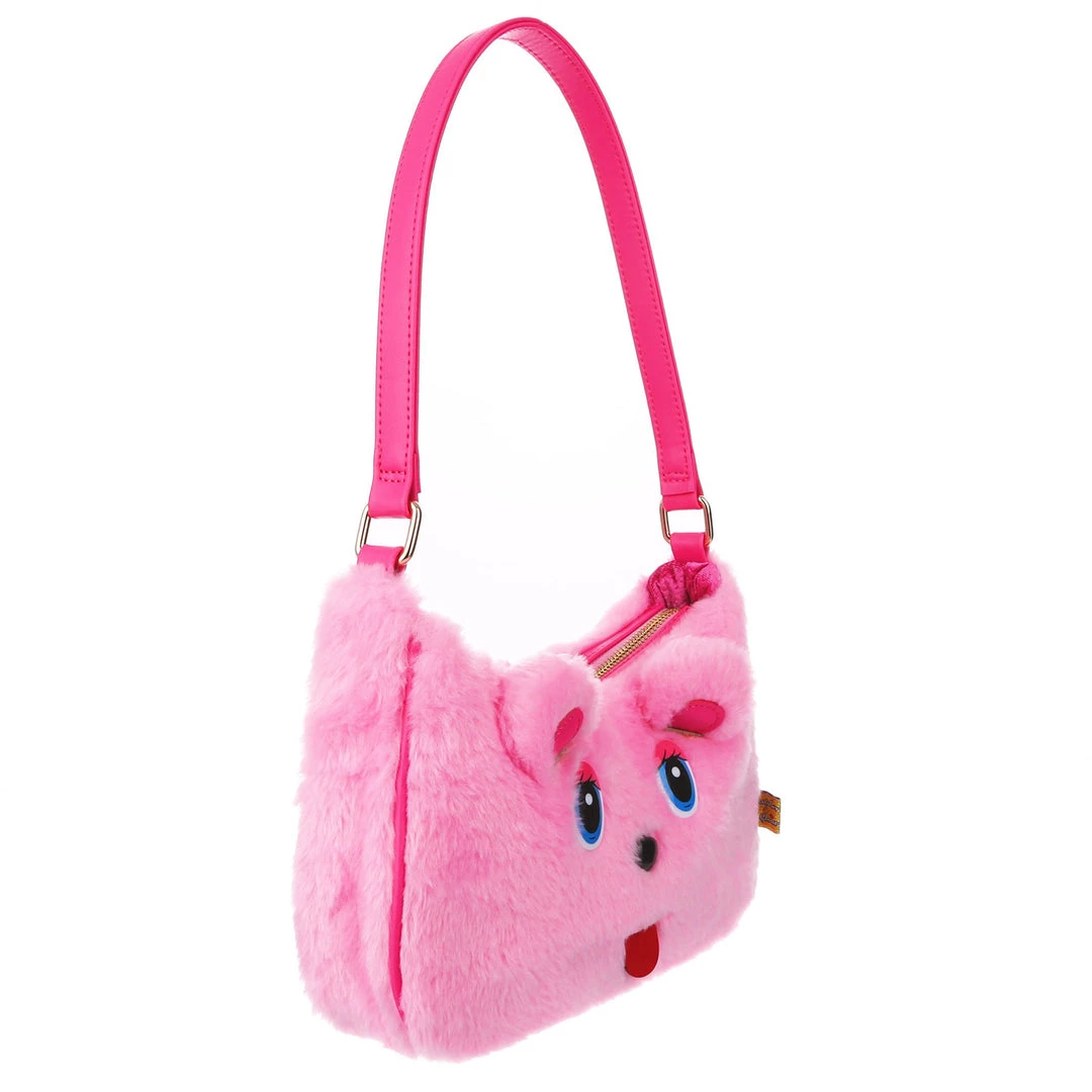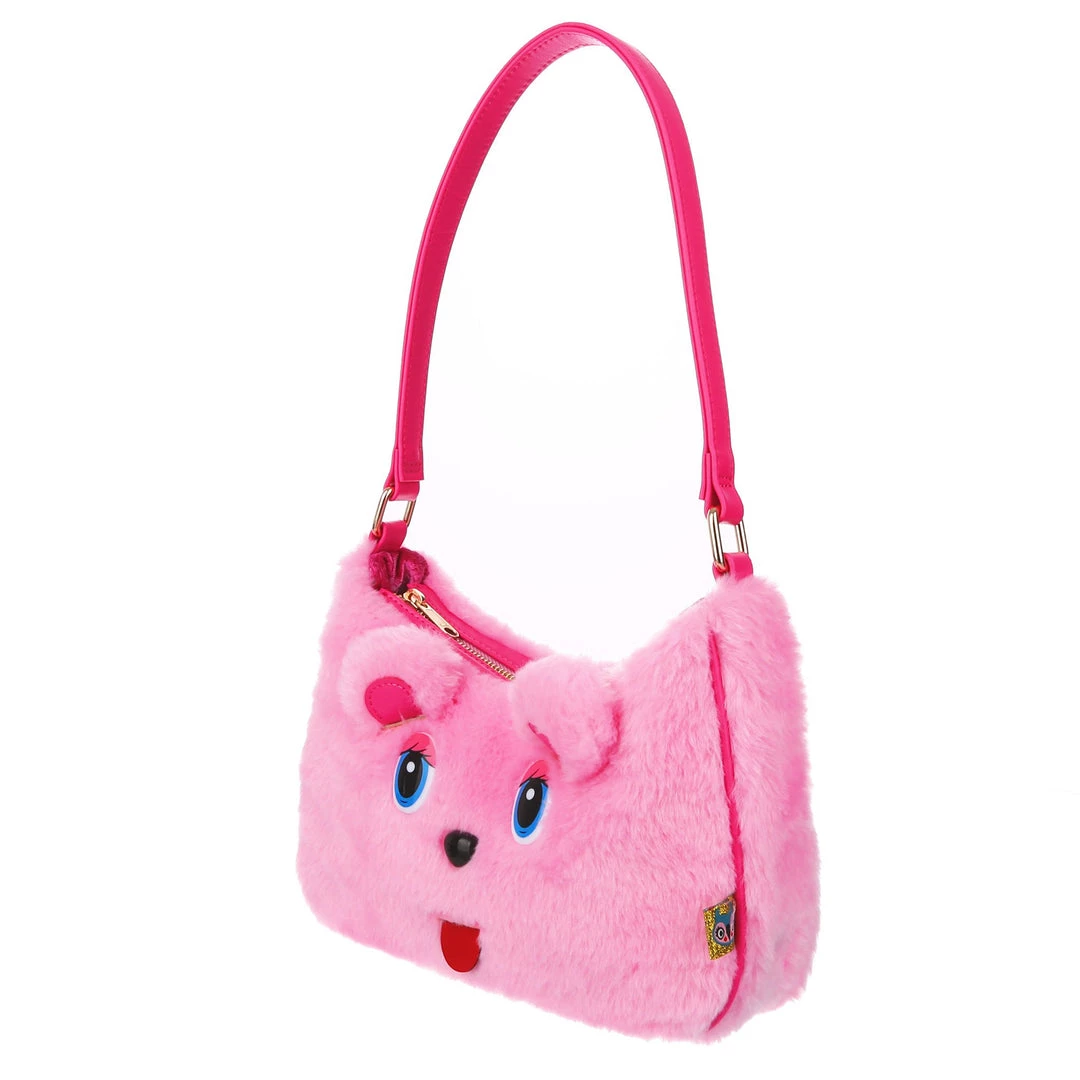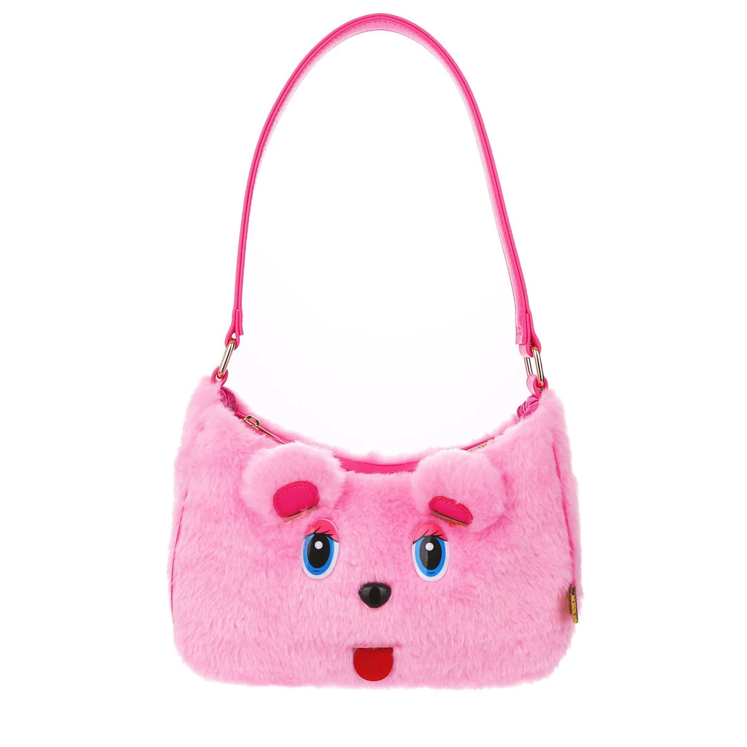 The cutest, fluffiest little friend! This little handbag has all the adorable vibes you want! A handheld strap and zip fastening adorn this cutie patootie, and the main fabric is a fabulous pink faux fur which is embroidered and embellished with all the details (including little 3D ears) to make it look like a teddy bear face! Cute, kitschy and perfect for you!