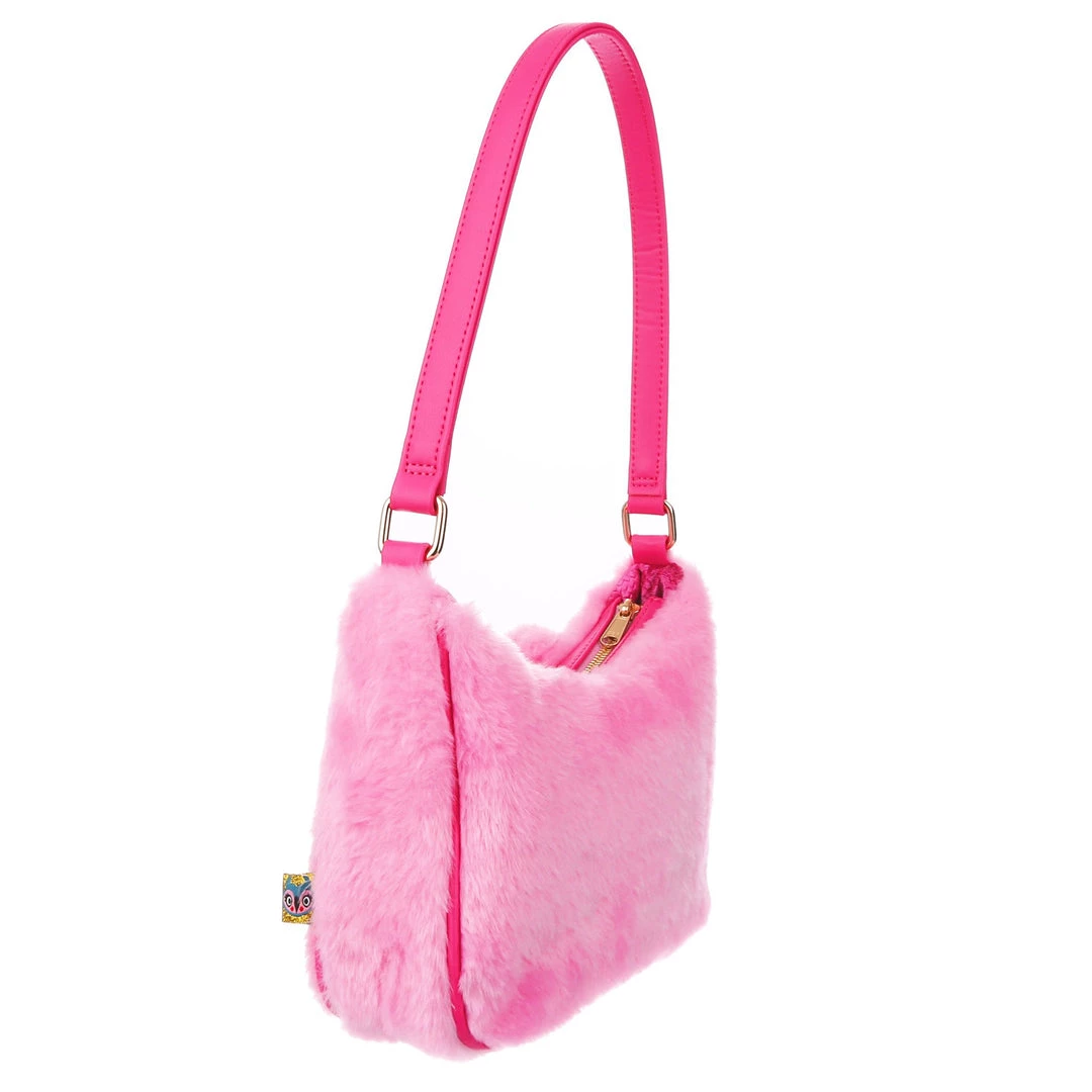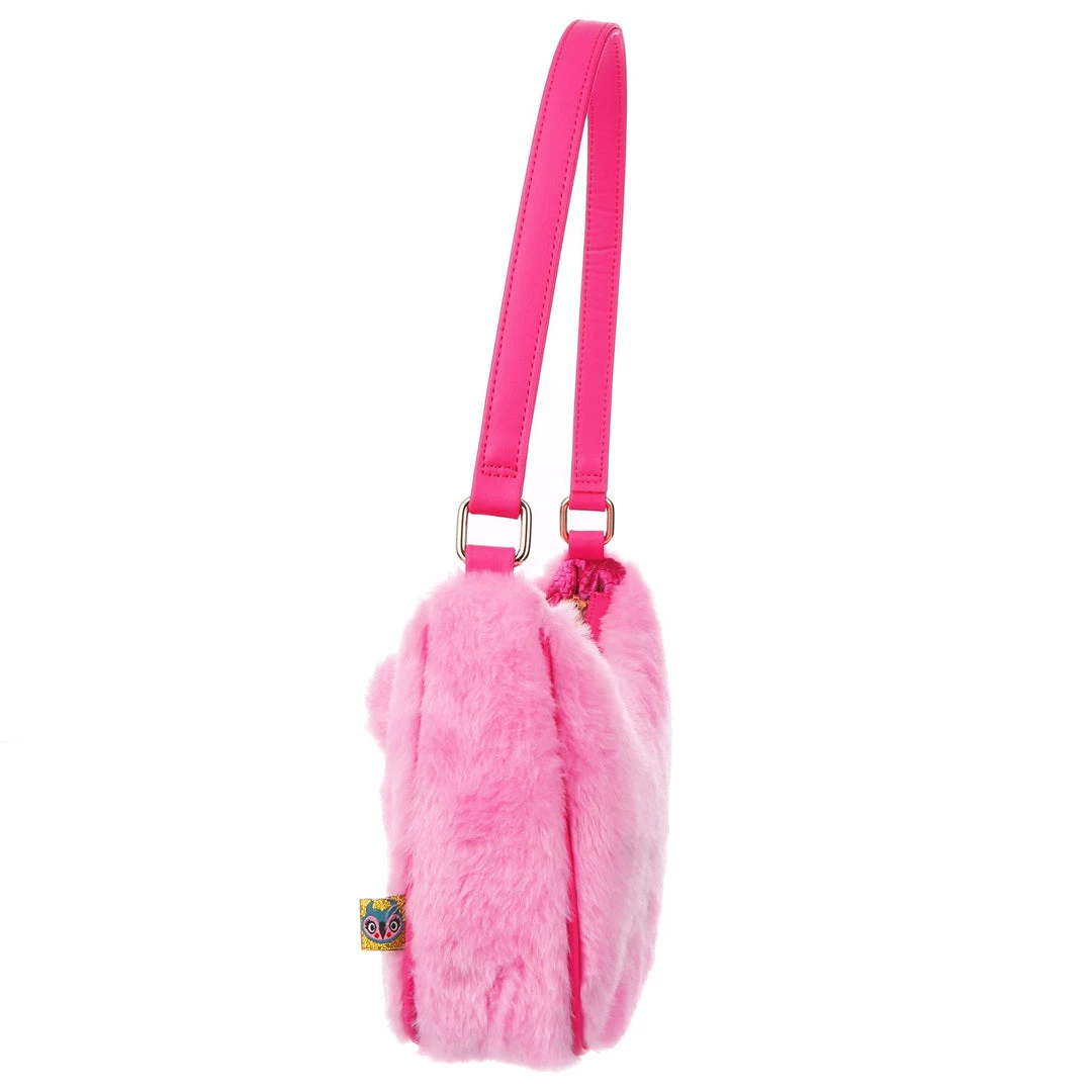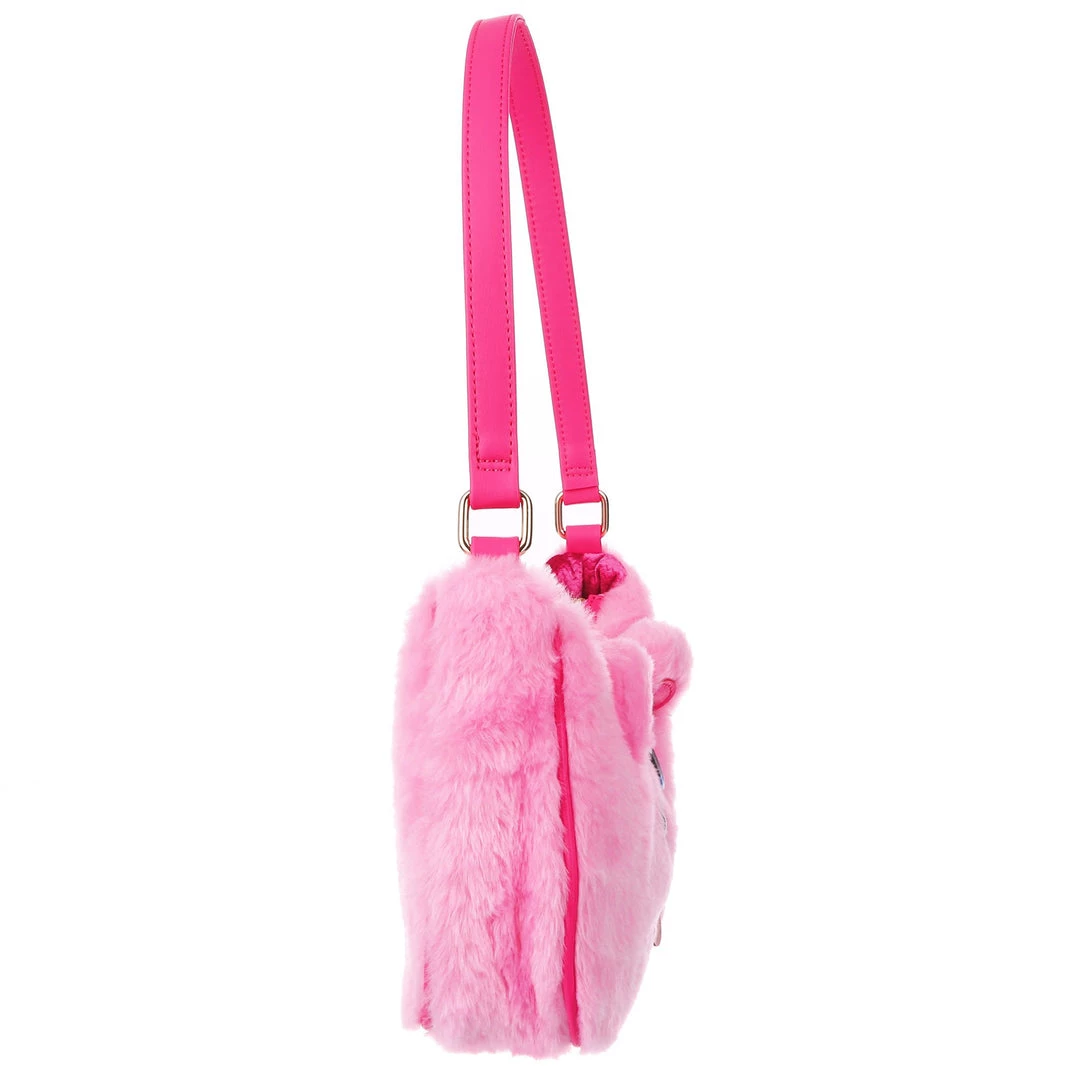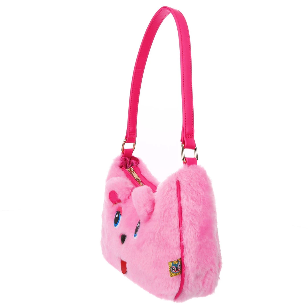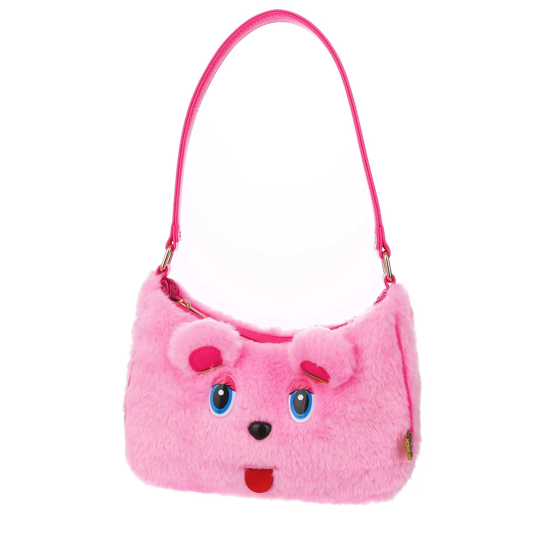 The cutest, fluffiest little friend! This little handbag has all the adorable vibes you want! A handheld strap and zip fastening adorn this cutie patootie, and the main fabric is a fabulous pink faux fur which is embroidered and embellished with all the details (including little 3D ears) to make it look like a teddy bear face! Cute, kitschy and perfect for you!