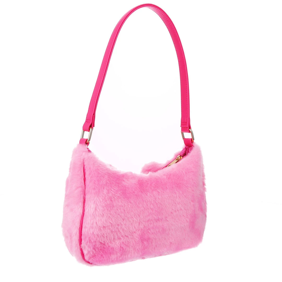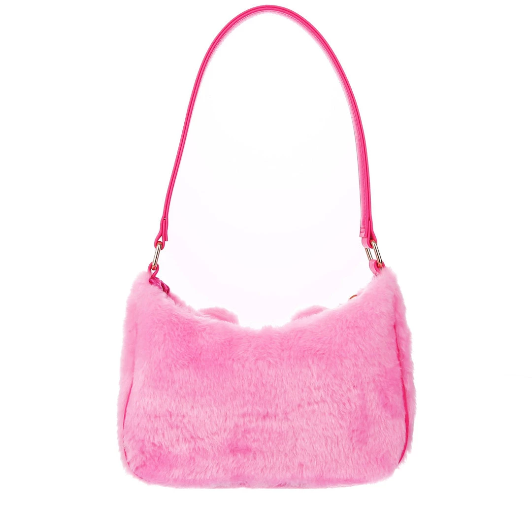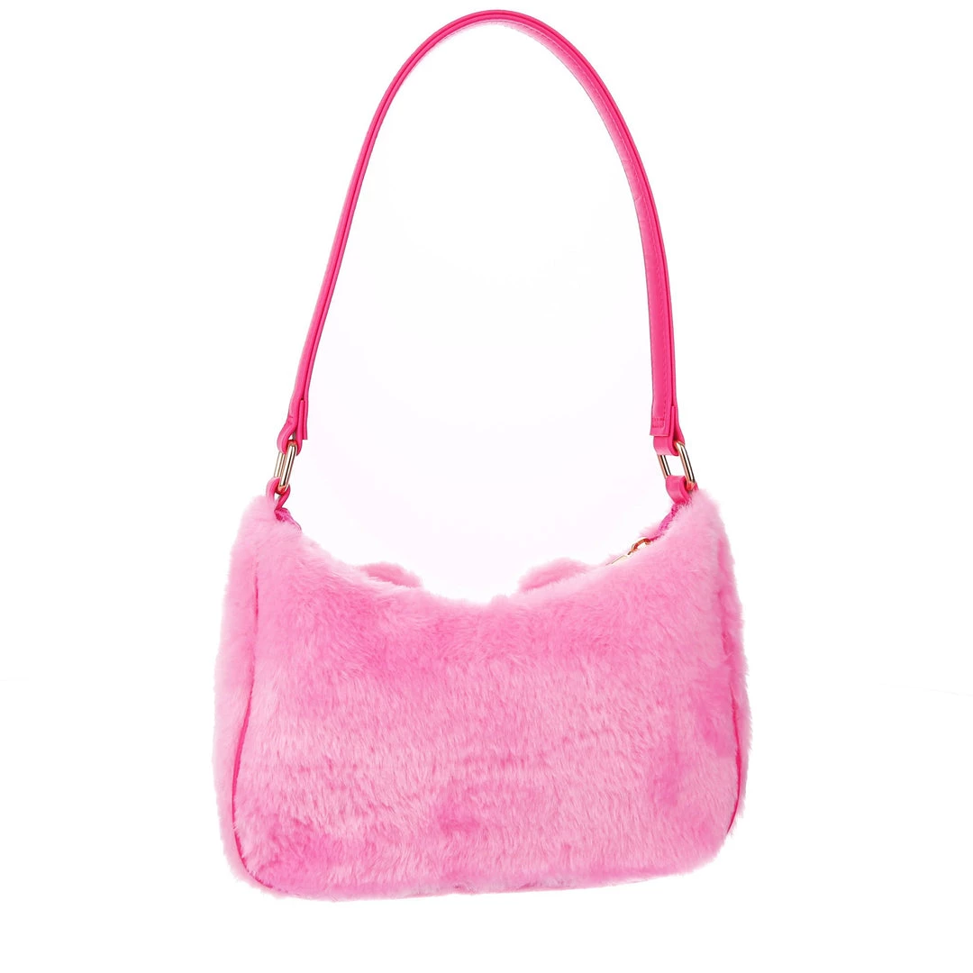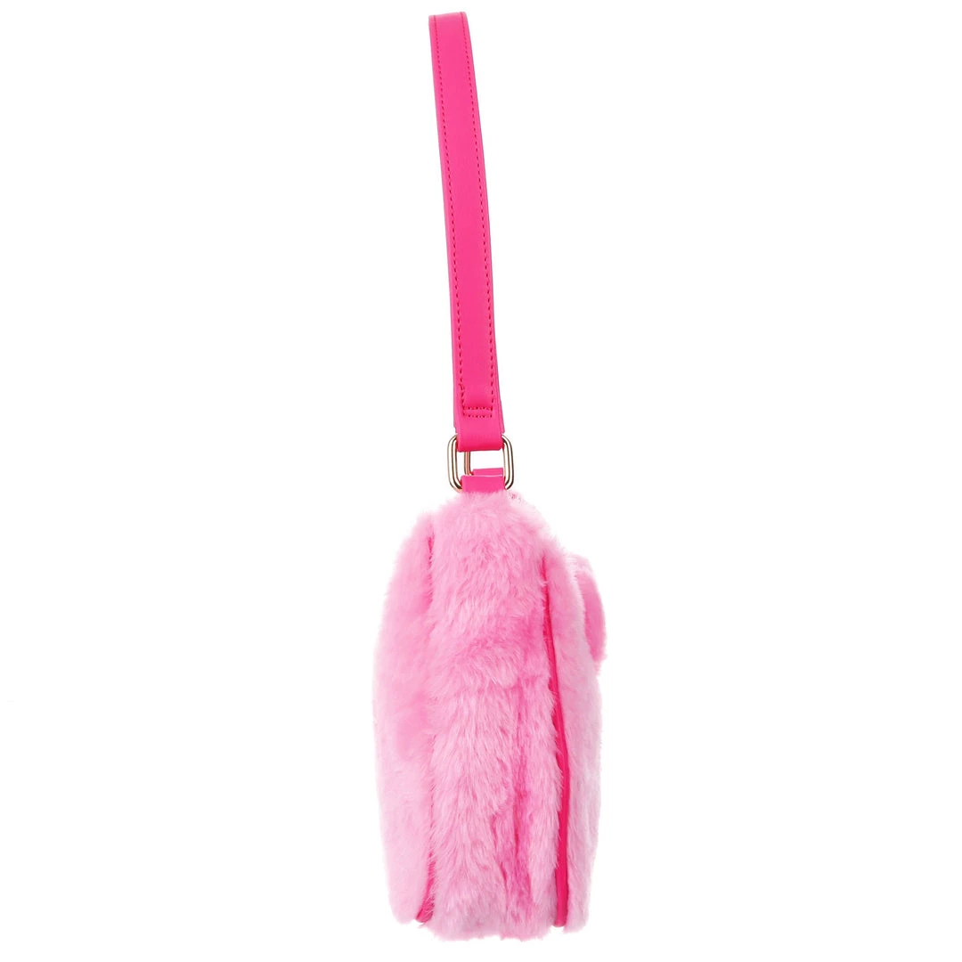 The cutest, fluffiest little friend! This little handbag has all the adorable vibes you want! A handheld strap and zip fastening adorn this cutie patootie, and the main fabric is a fabulous pink faux fur which is embroidered and embellished with all the details (including little 3D ears) to make it look like a teddy bear face! Cute, kitschy and perfect for you!