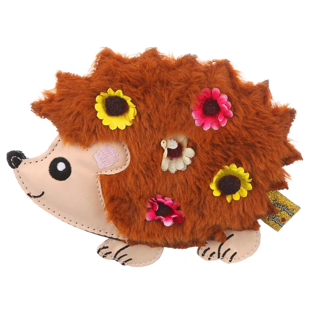 Handle with care! Little Spike is a charming fluffy hedgehog with 3D flowers and an adorable embroidered face. A green tartan reverse holds the zip to pop in your valuables and keep them safe.