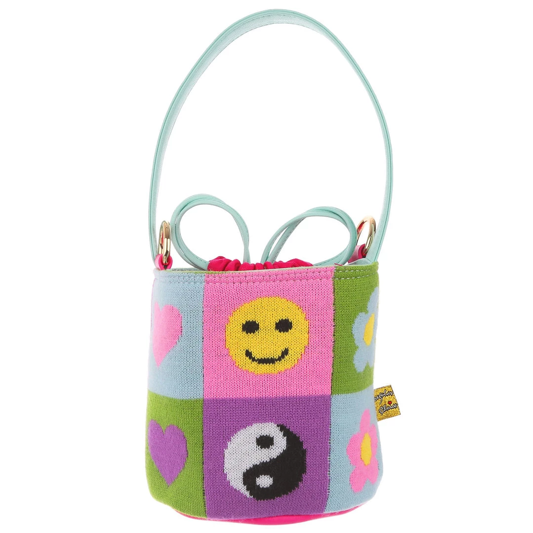 One for all the nineties fashion nostalgia lovers! Pastel patchwork bucket bag with a teal drawstring closure and matching handle that is surprisingly spacious for all your on the go essentials. Hit the street with this stylish and fun bag!