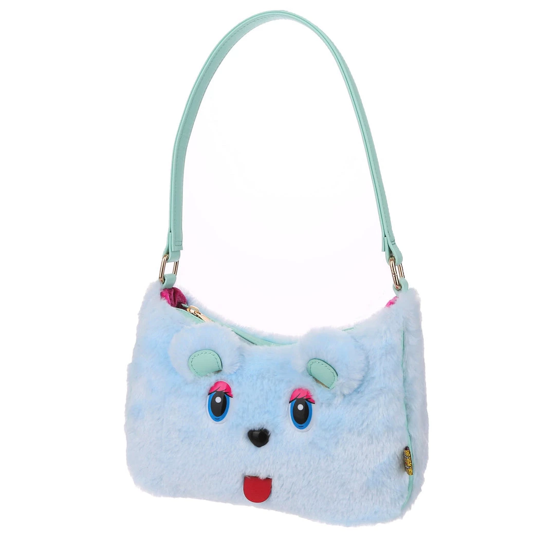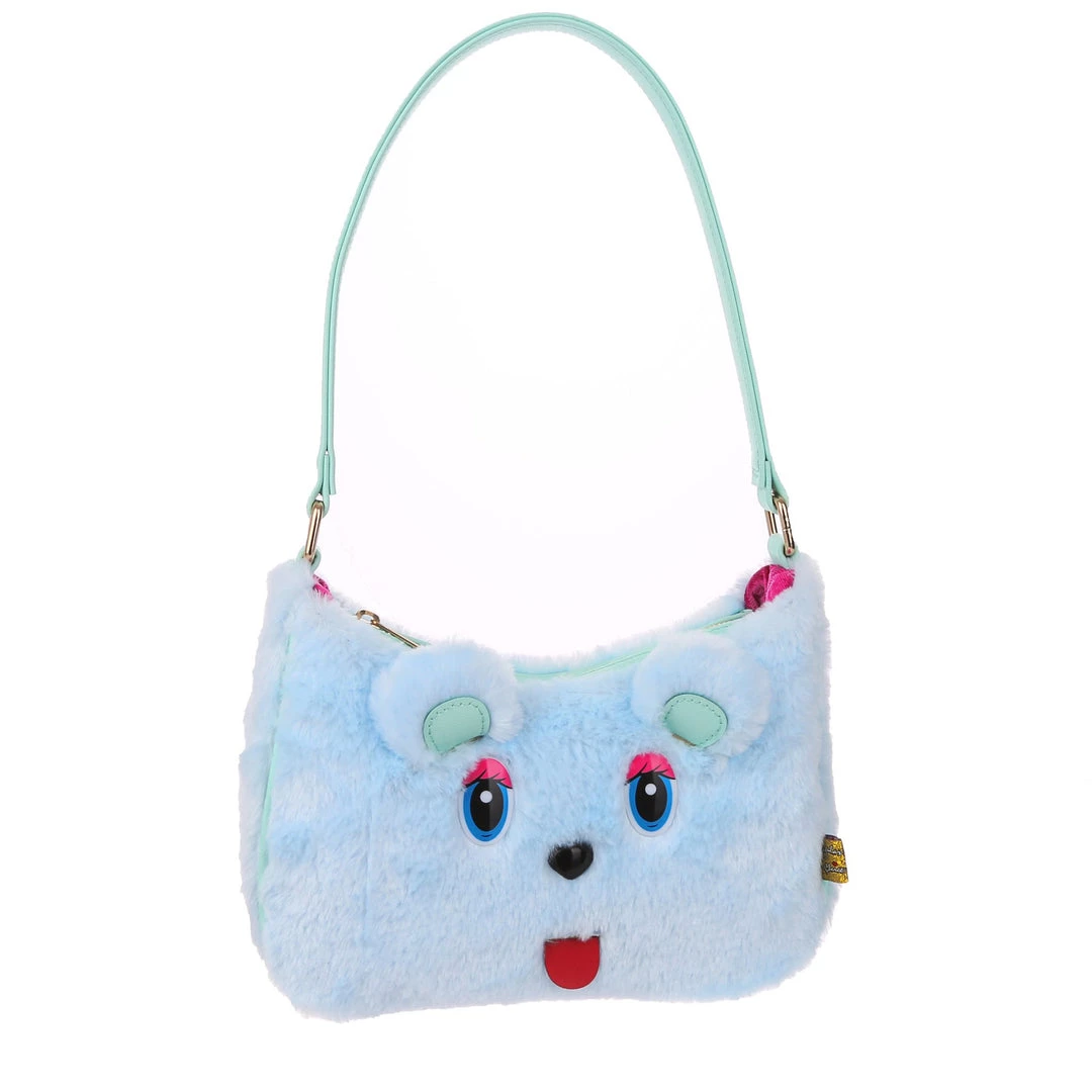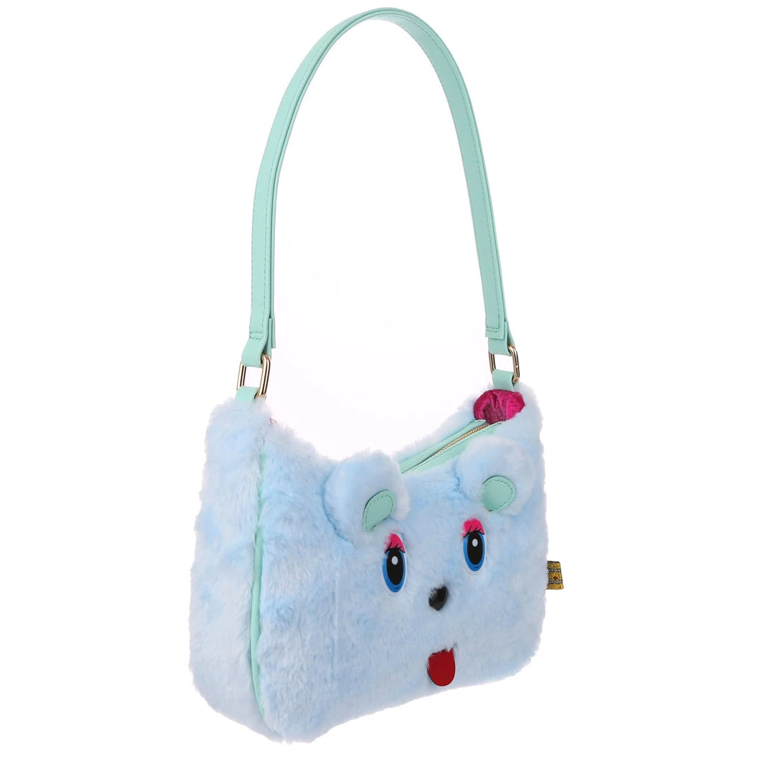 The cutest, fluffiest little friend! This little handbag has all the adorable vibes you want! A handheld strap and zip fastening adorn this cutie patootie, and the main fabric is a fabulous baby blue faux fur which is embroidered and embellished with all the details (including little 3D ears) to make it look like a teddy bear face! Cute, kitschy and perfect for you!
