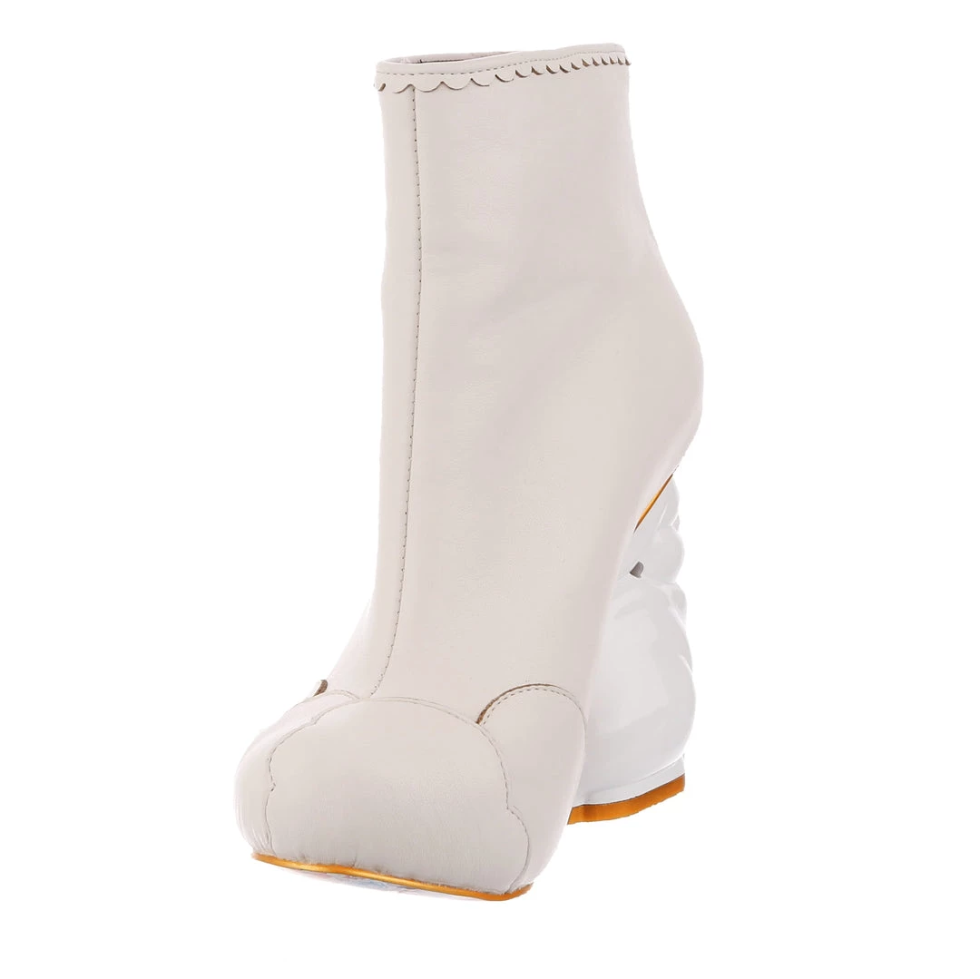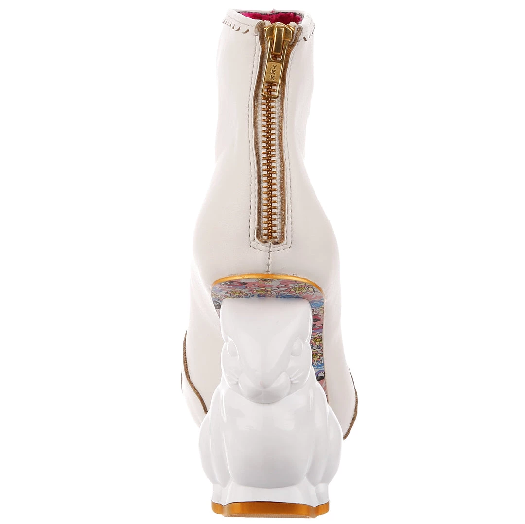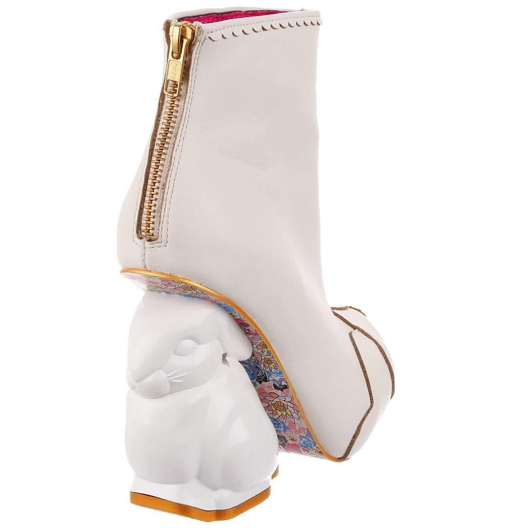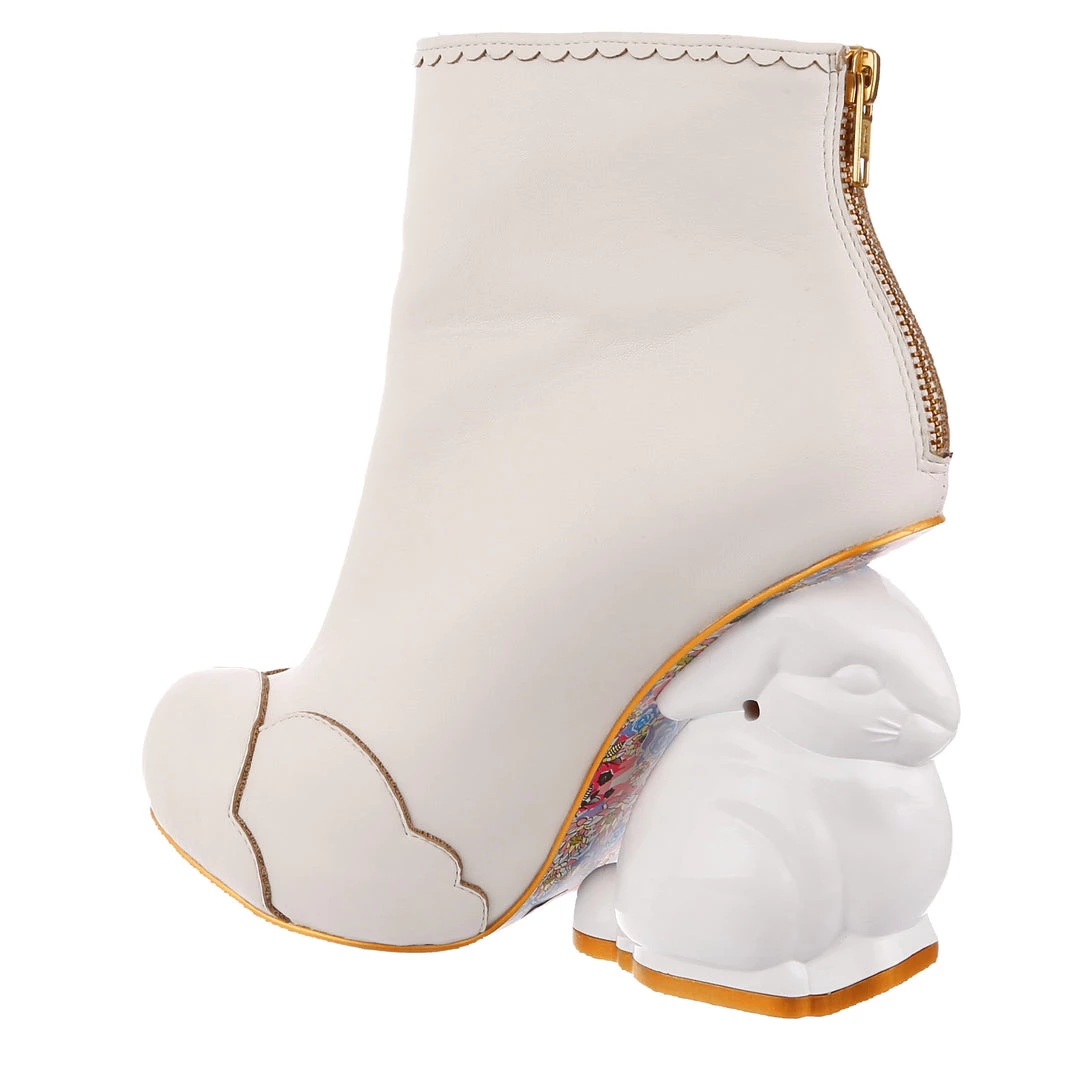 Get your paintbrush ready for these bunny boots! High heel ankle boots are left as a blank canvas for your creative designs, completed with a bunny heel, that has a hole ready for a bow of your choice! The zip fastening at heel makes these so easy to pop on and off. Finished with scallop detailing around the ankle and layered clouds on the toe, fulfil your bunny dreams with these fabulous boots today!