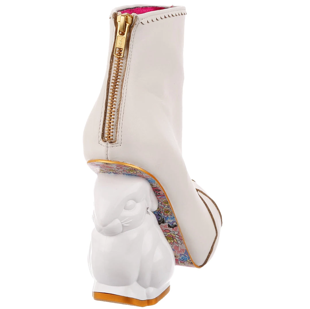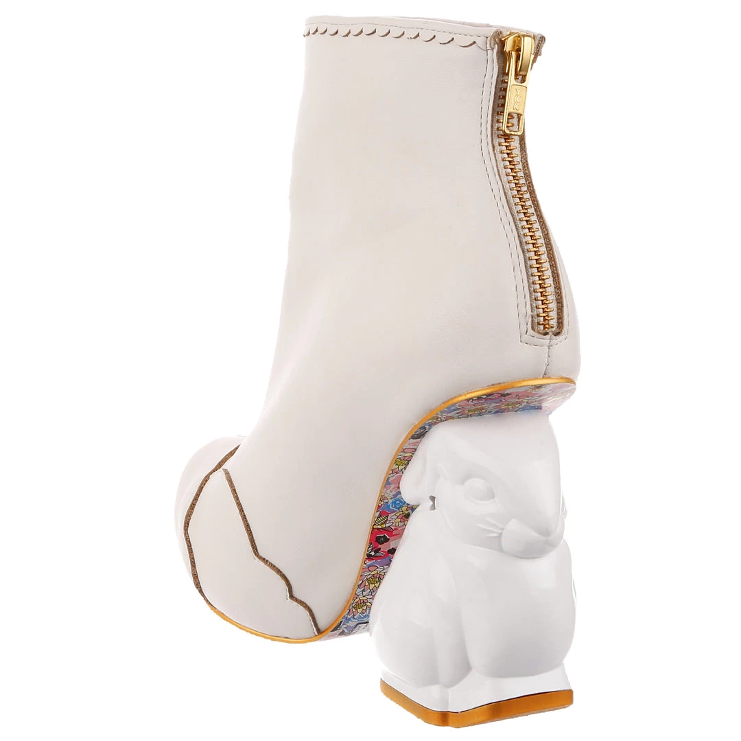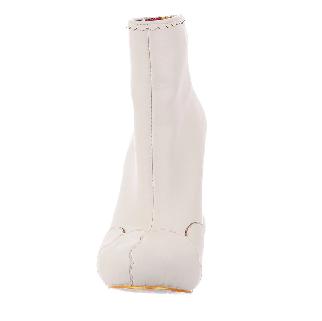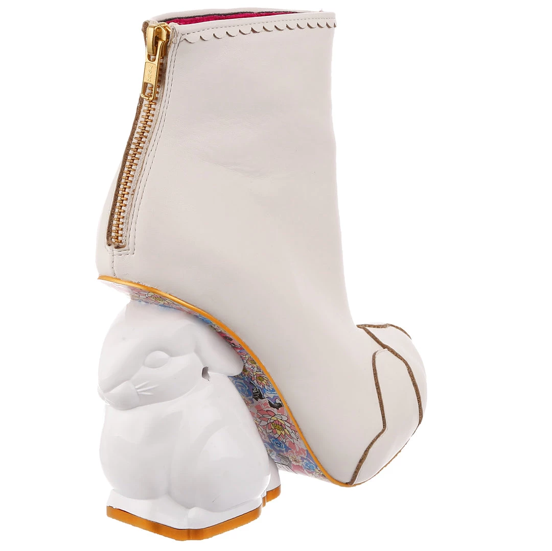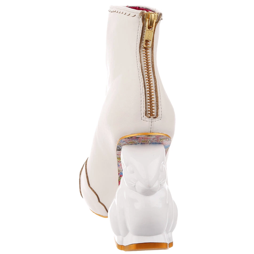 Get your paintbrush ready for these bunny boots! High heel ankle boots are left as a blank canvas for your creative designs, completed with a bunny heel, that has a hole ready for a bow of your choice! The zip fastening at heel makes these so easy to pop on and off. Finished with scallop detailing around the ankle and layered clouds on the toe, fulfil your bunny dreams with these fabulous boots today!