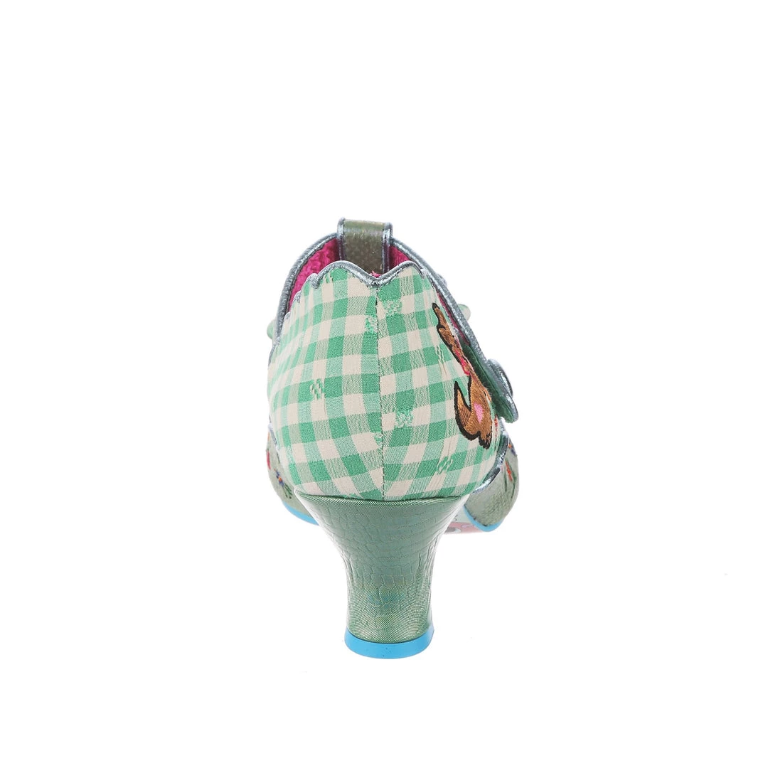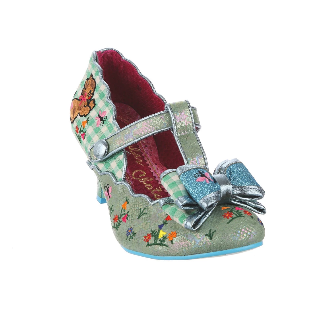A whimsical wonder, these adorable mid heels are a little breath of fresh air for your wardrobe! A fabulous teal colour is embellished with tiny little embroidered posies, which is bordered by the scalloped edges with wrap around the whole shoe! A T-Bar strap leads to the most extravagant blue and green gingham bow on the toe, which ties into the matching piping and details all around the topline! Of course, we can’t forget to mention the darling little kitty and butterfly embroidered on the side too – simply purr-fect!