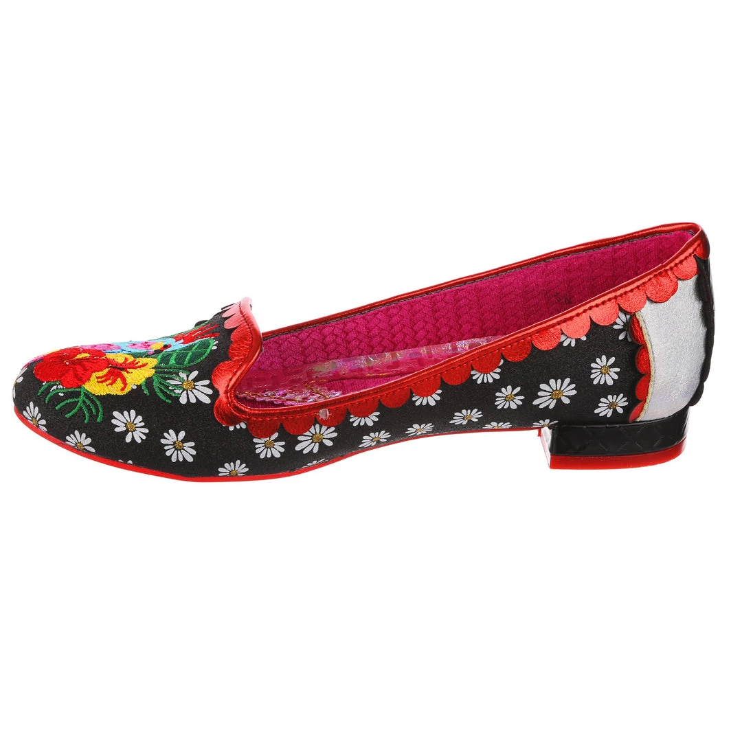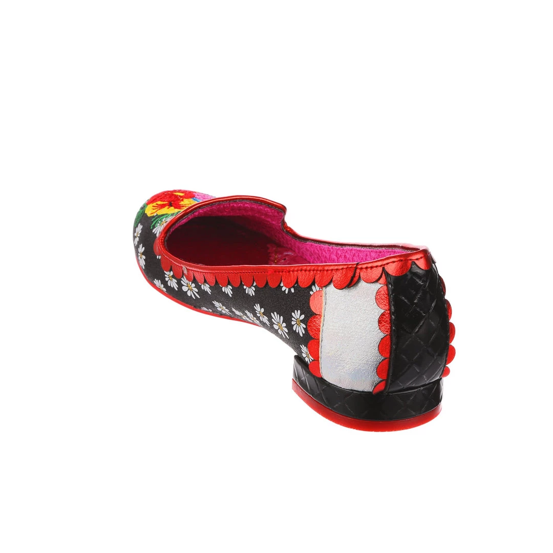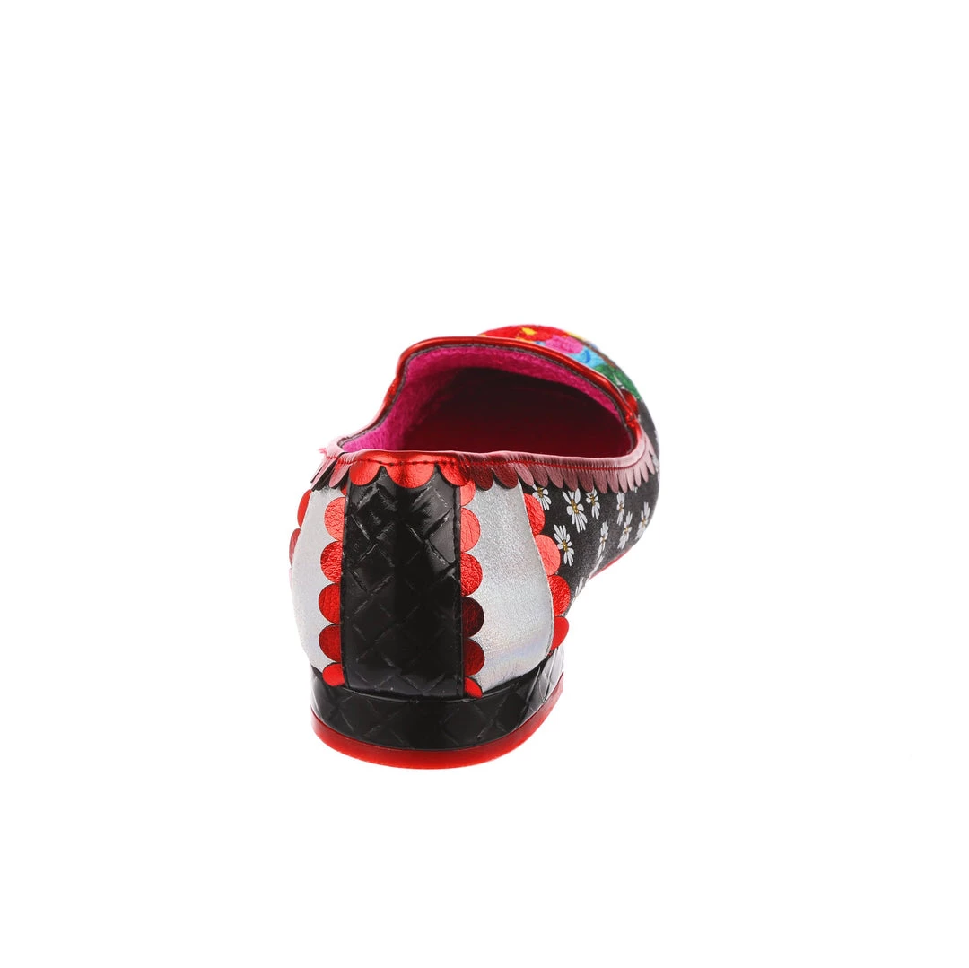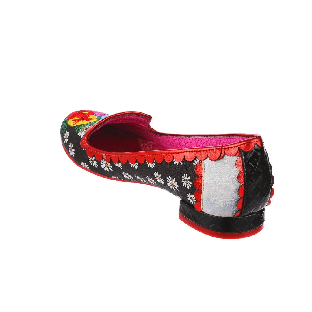 Are you a real bird of paradise? We reckon these flats will be singing to you! A gorgeous black glitter fabric is printed with daisies, bordered with a metallic red scalloping and adorned on the toe with the most darling embroidery of a cockatoo! Fun, flirty and flat, they are a great wardrobe staple!