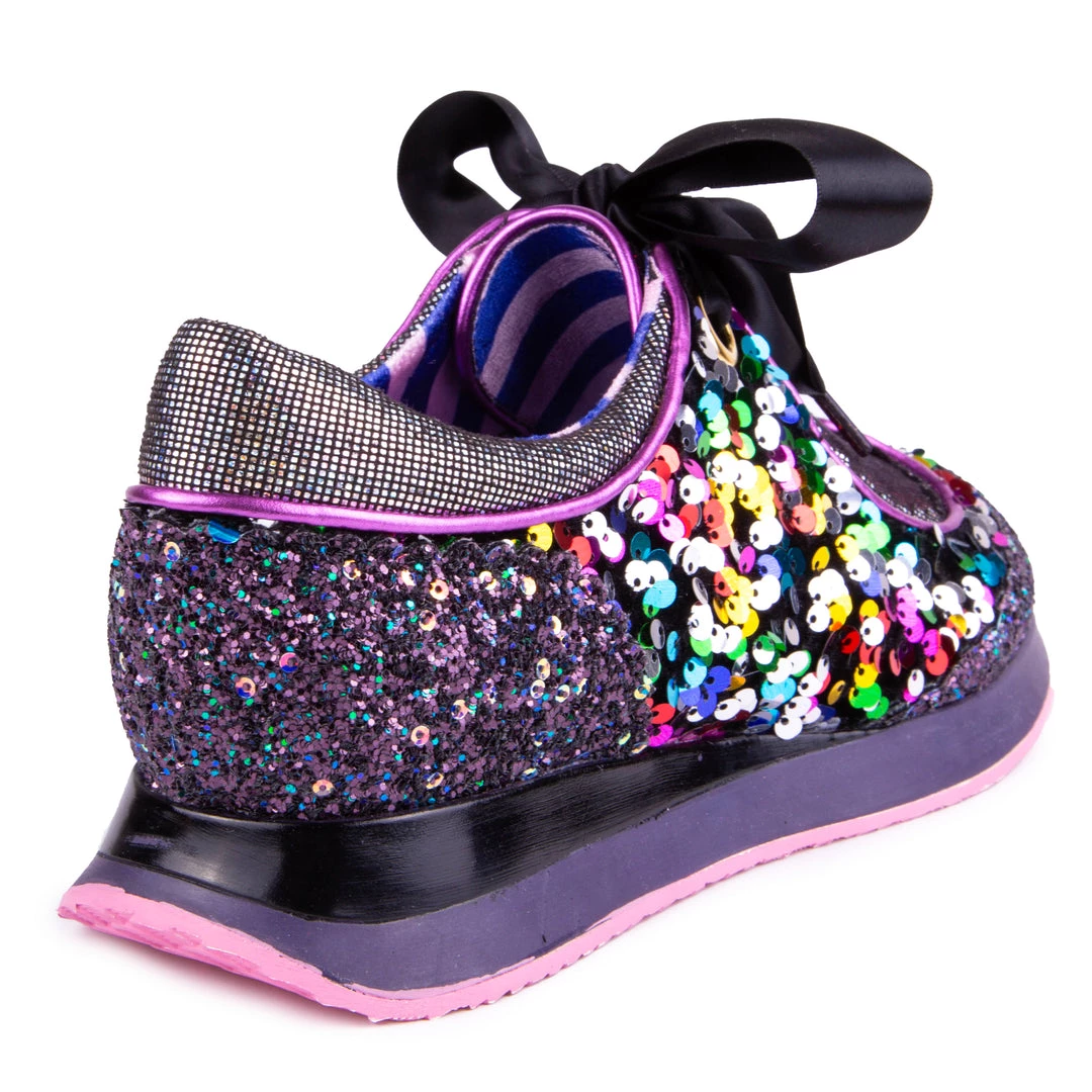 Wear your love for all to see! These super cute trainers combine a dark purple glitter texture, shimmering red metallic and mesmerising rainbow sequins all in a fun and comfortable style! Tied with a ribbon bow, the front of these shoes look like a heart and are sure to turn heads! Add them to your wardrobe today!