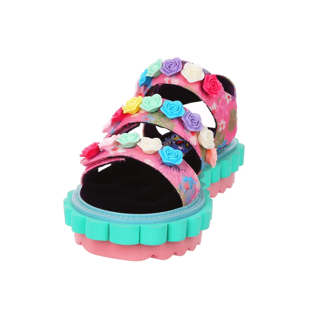 Sandals? Flowers? Platforms? The shoes of your dreams? Check, check, check and CHECK! These cuties are here to make your summer months fabulous! A gorgeous pink brocade is paired with magical multicoloured rose buds along the straps, which match the fabulous pastel teal and pink double stacked scalloped sole! Perfect to add a bit of wow to any outfit, grab them today!