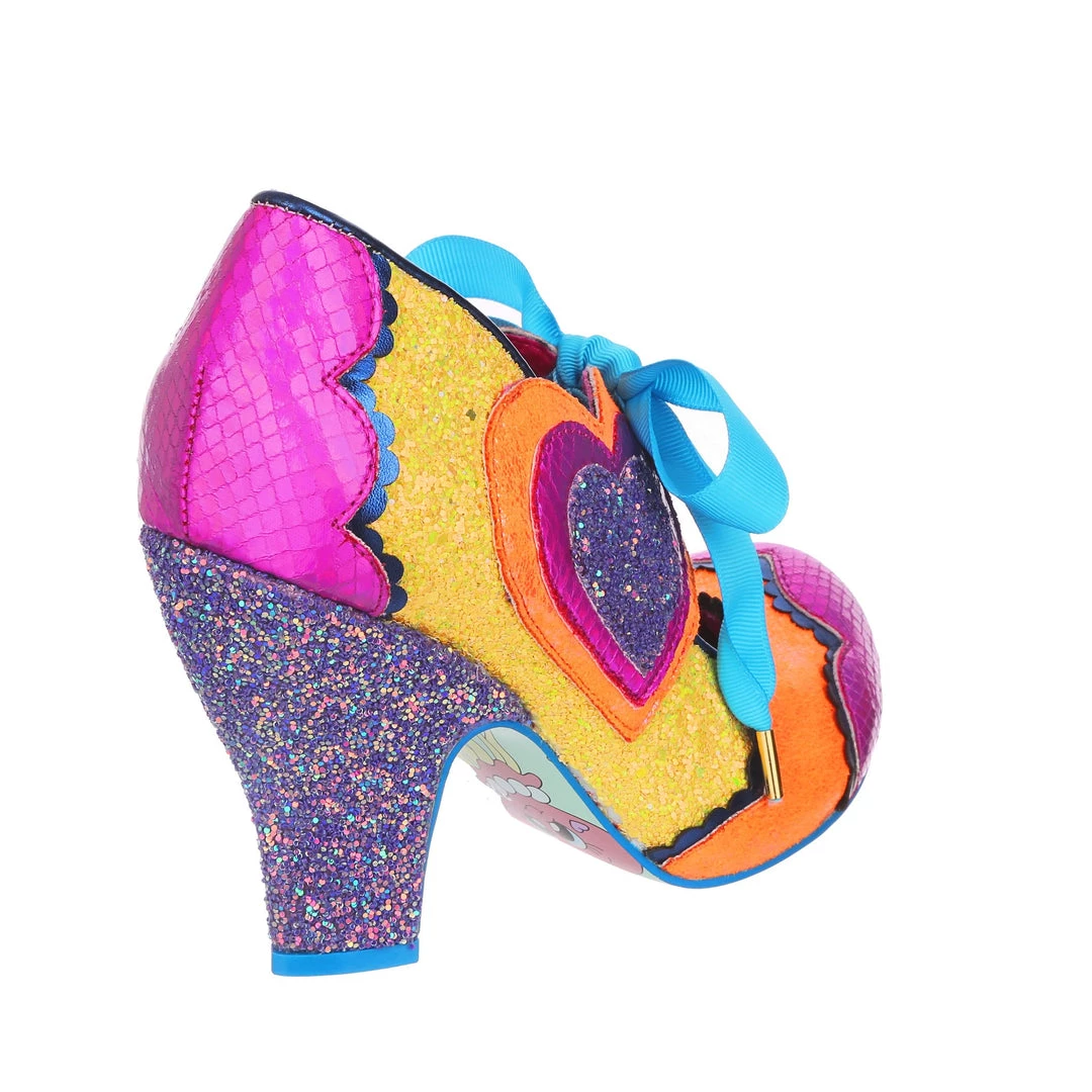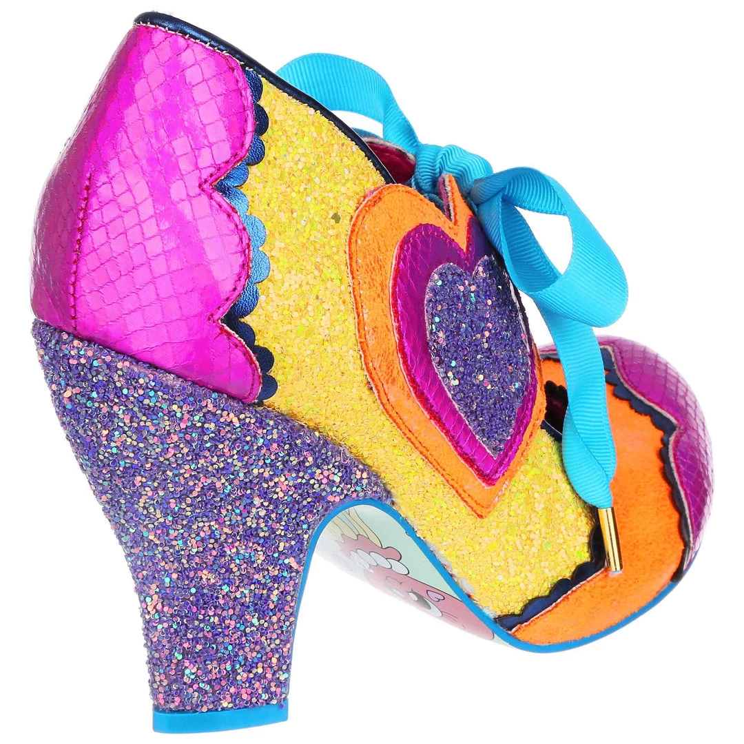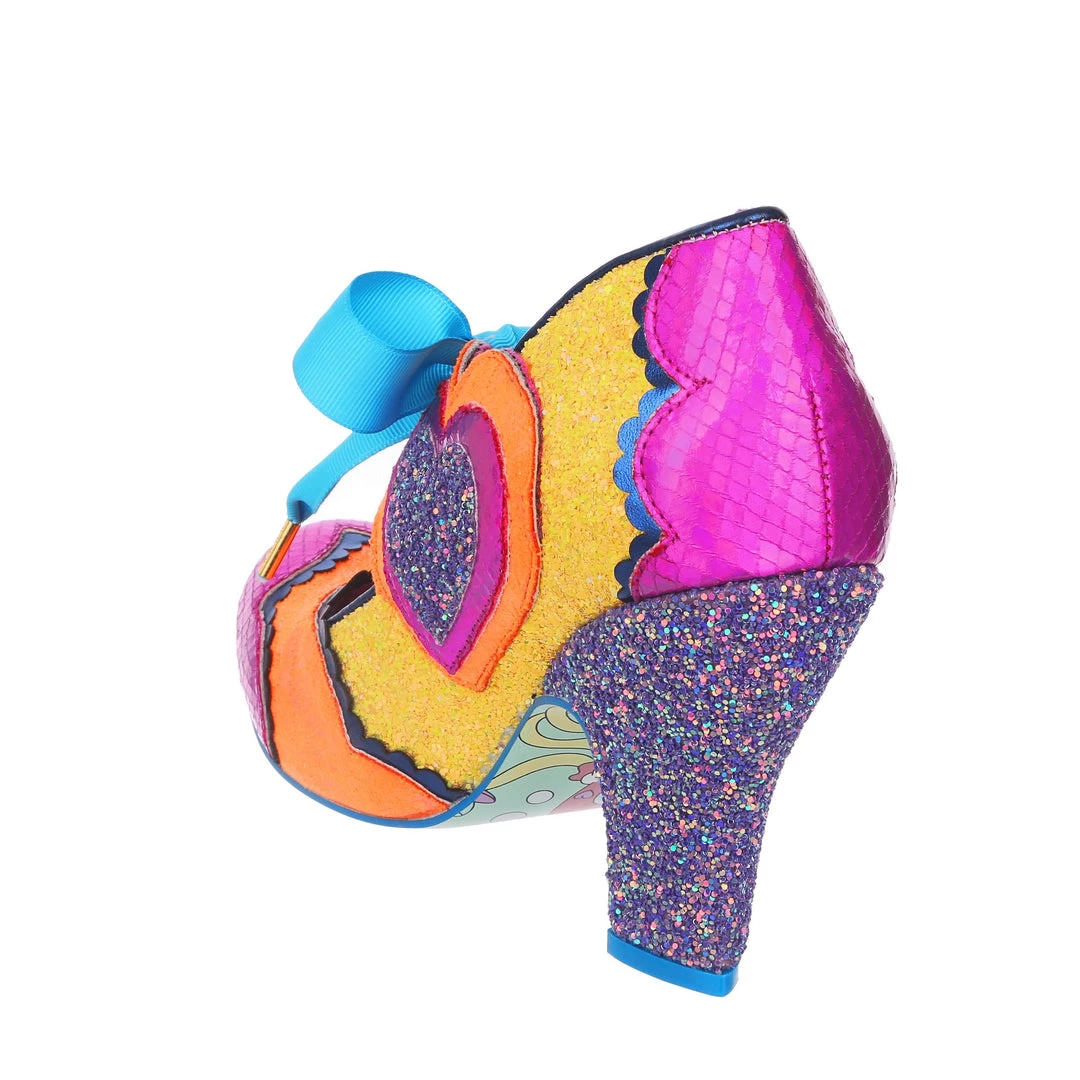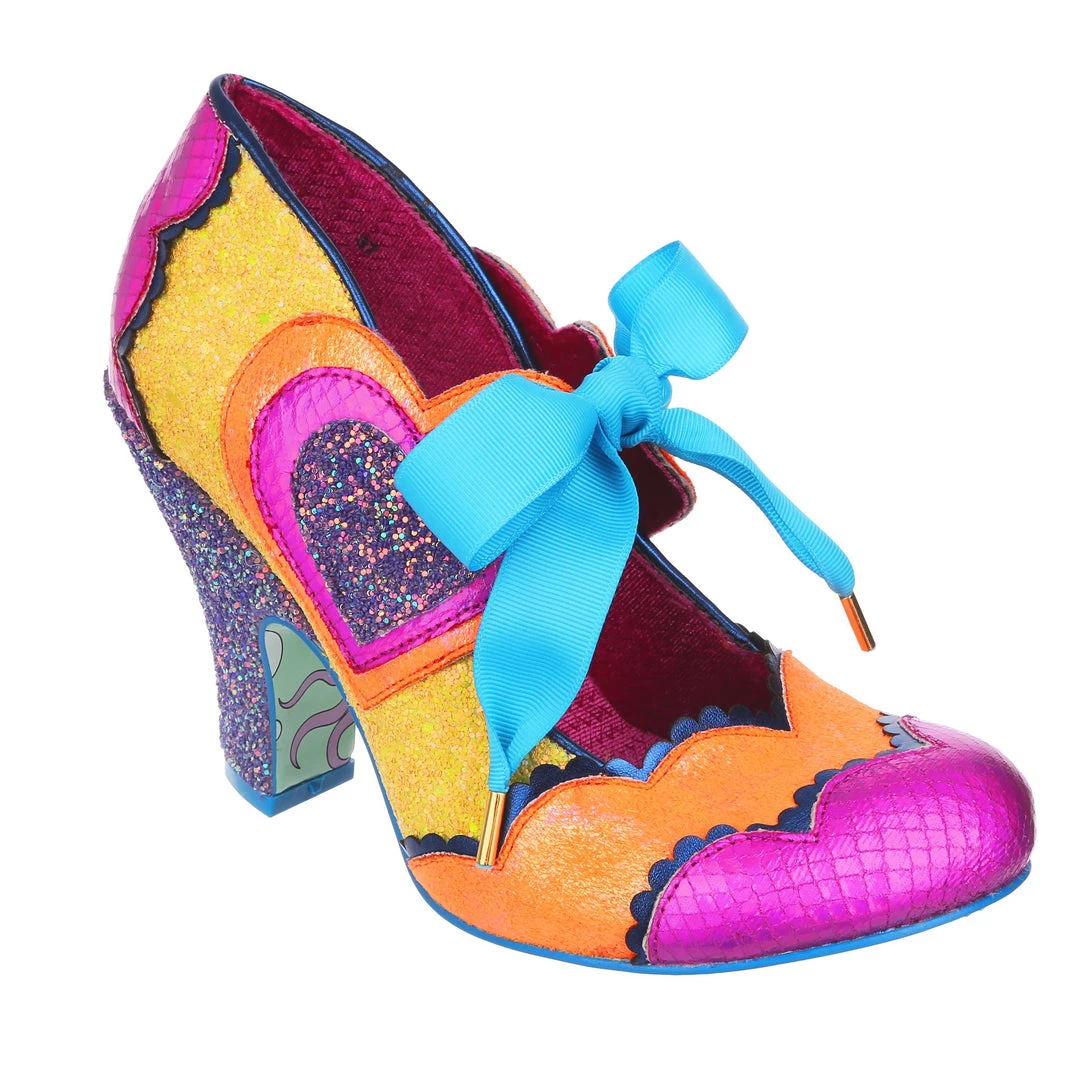 Oooooh feeling grooooovy! Capture the summer of love in these psychedelic wonders! A classic heel shape for us, paired with a tie up Mary Jane strap that forms the stunning retro hearts on the sides! An eye catching contrast of hot pink, orange and yellow – these are sure to make you fall in love with any outfit!