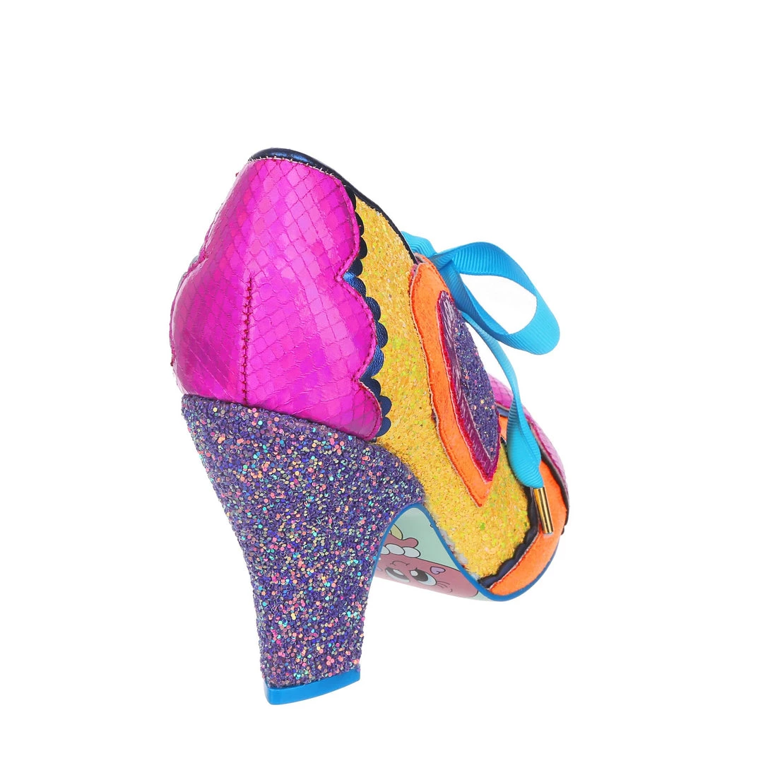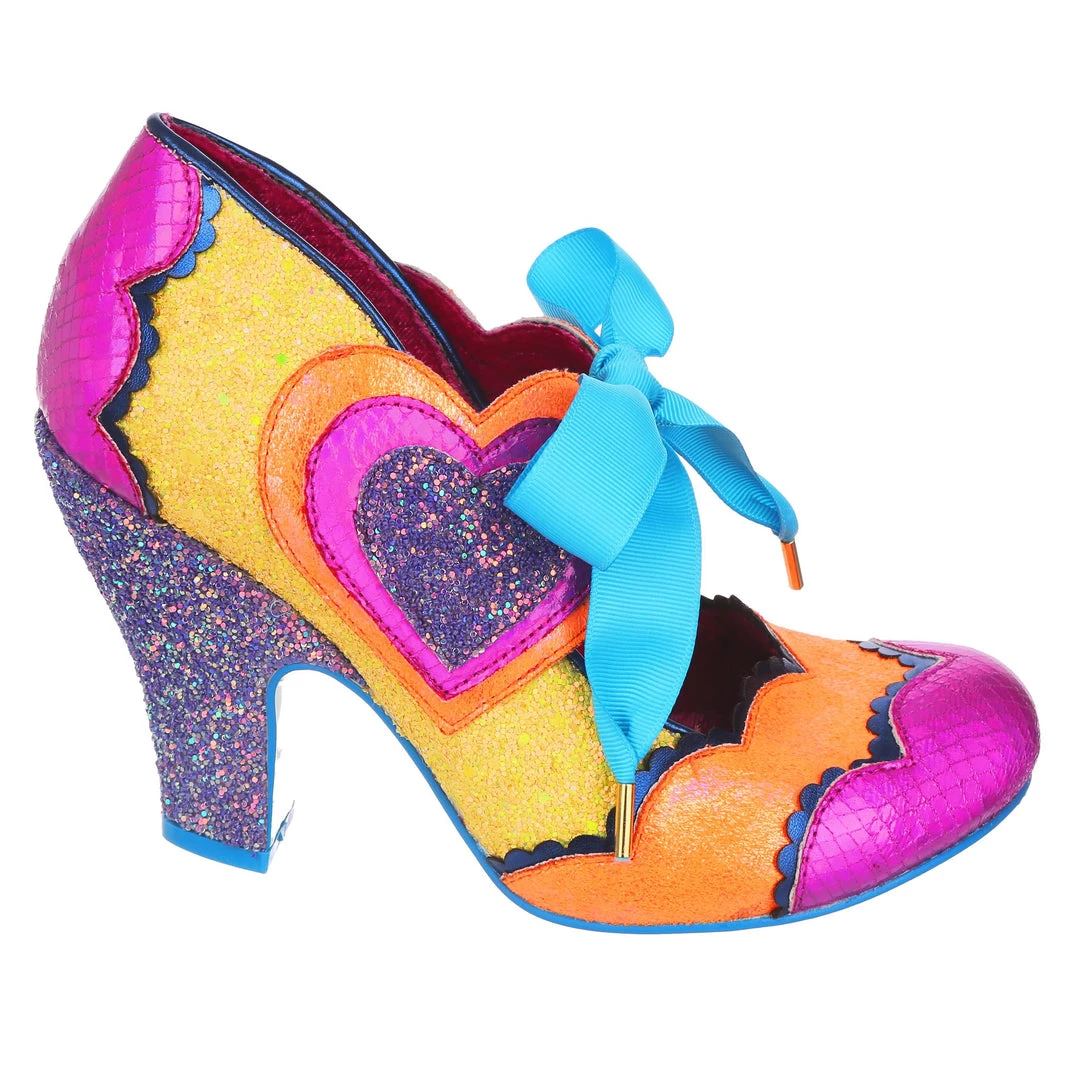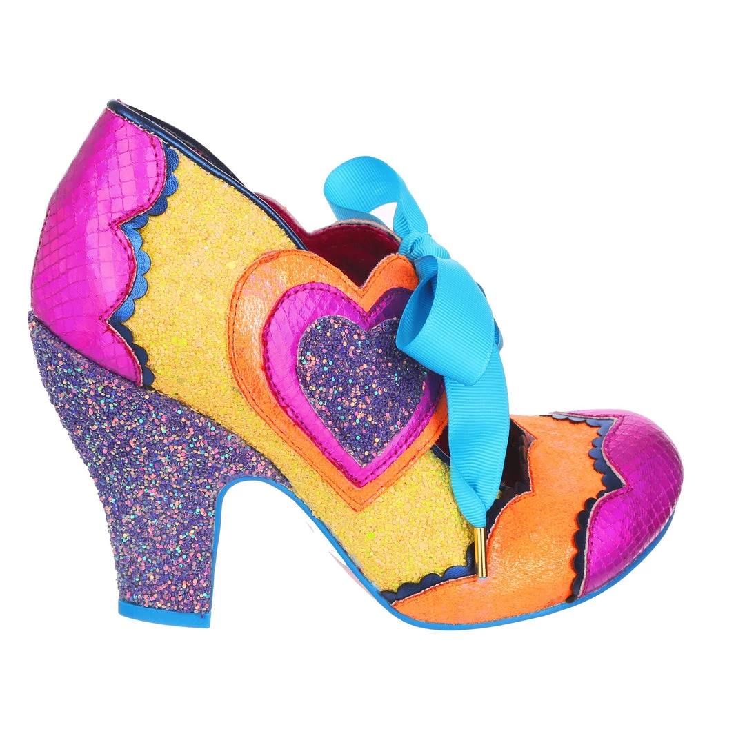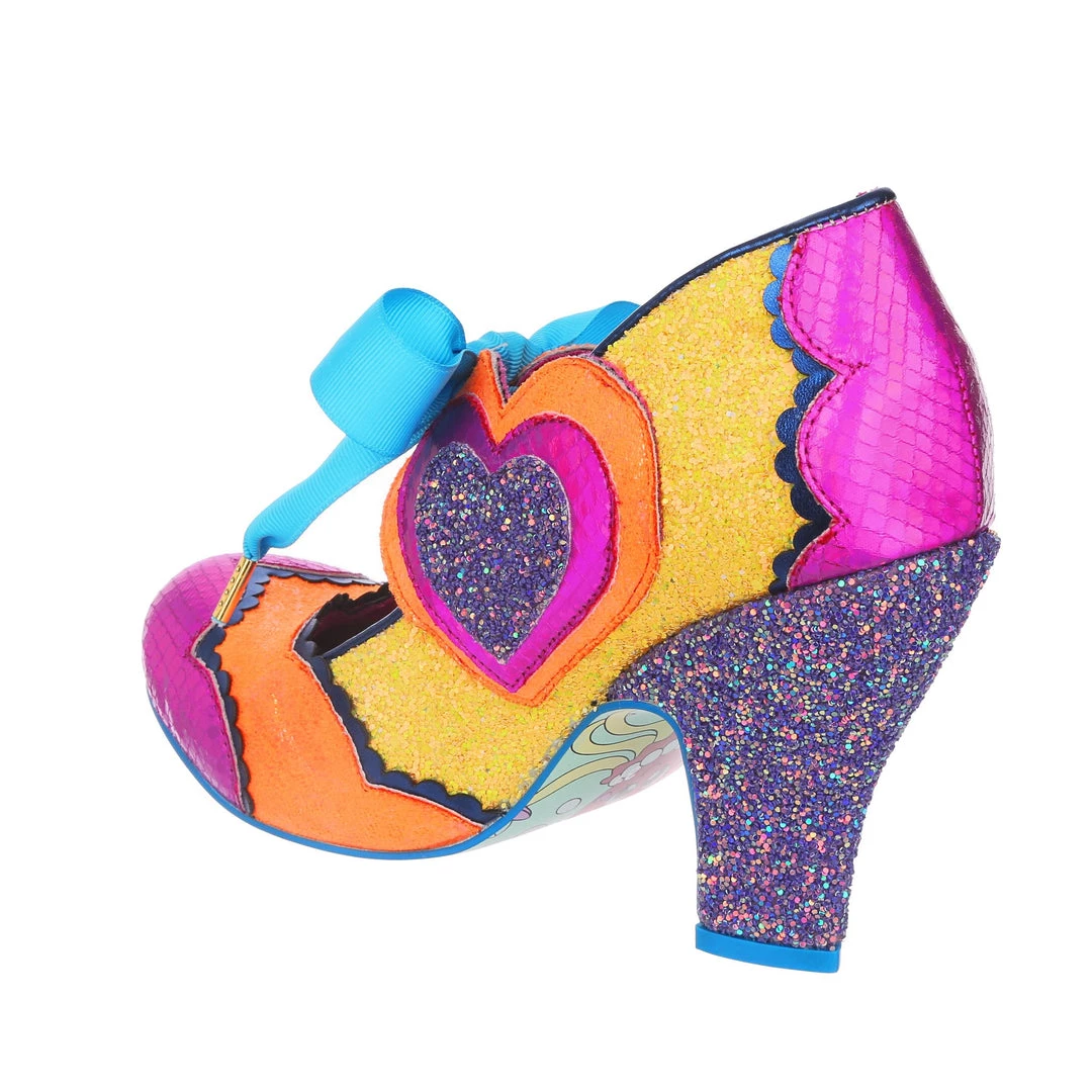 Oooooh feeling grooooovy! Capture the summer of love in these psychedelic wonders! A classic heel shape for us, paired with a tie up Mary Jane strap that forms the stunning retro hearts on the sides! An eye catching contrast of hot pink, orange and yellow – these are sure to make you fall in love with any outfit!