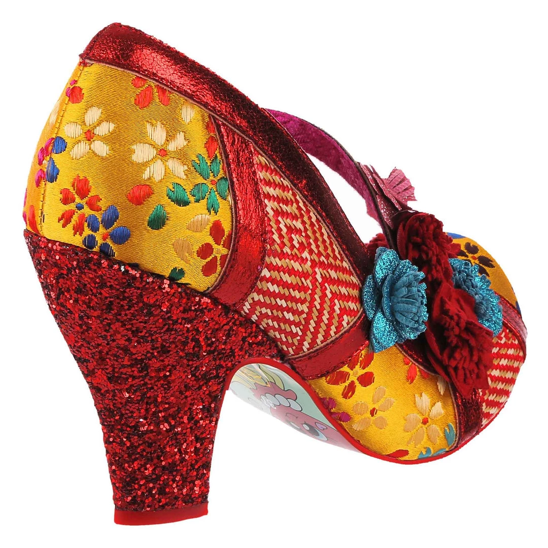 These are a pair of cuties! A diagonal strap crosses the foot, making the leg look longer and giving a beautiful silhouette, which is embellished with fabulous flowers! A stunning red and white herringbone is paired with the sleek shimmering red finishing on the other panels and a multicoloured floral brocade too! Perfect for all you floral lovers who want something a little different!