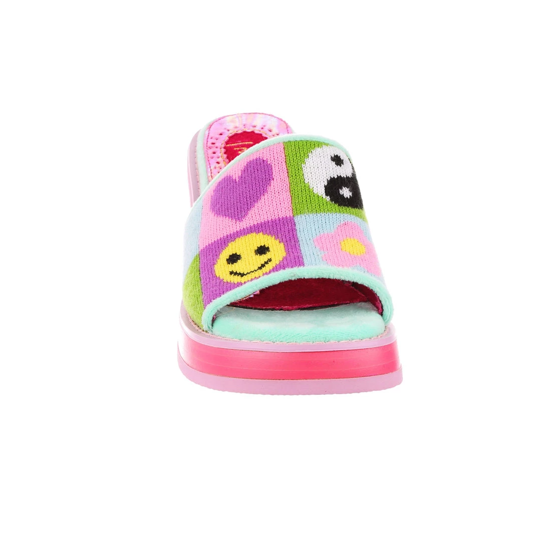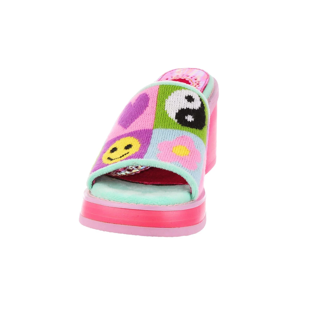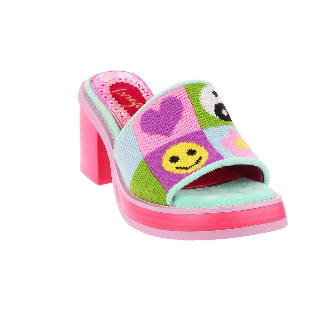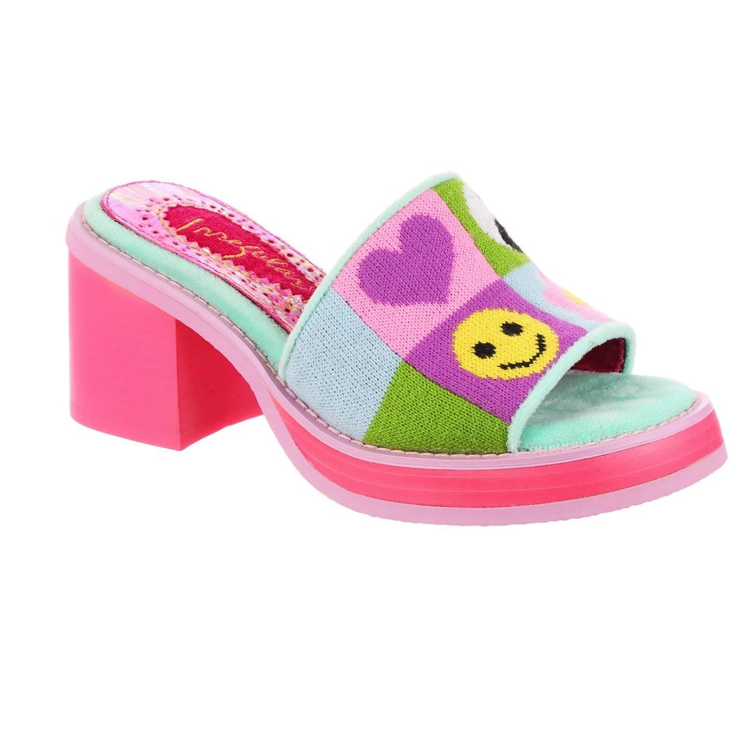 Slip-on these funky fashionista faves! Super cute slide on style, these mules are covered in super cute graphics and have a fun and wearable hot pink chunky heel so that you can slip them on and go all day!