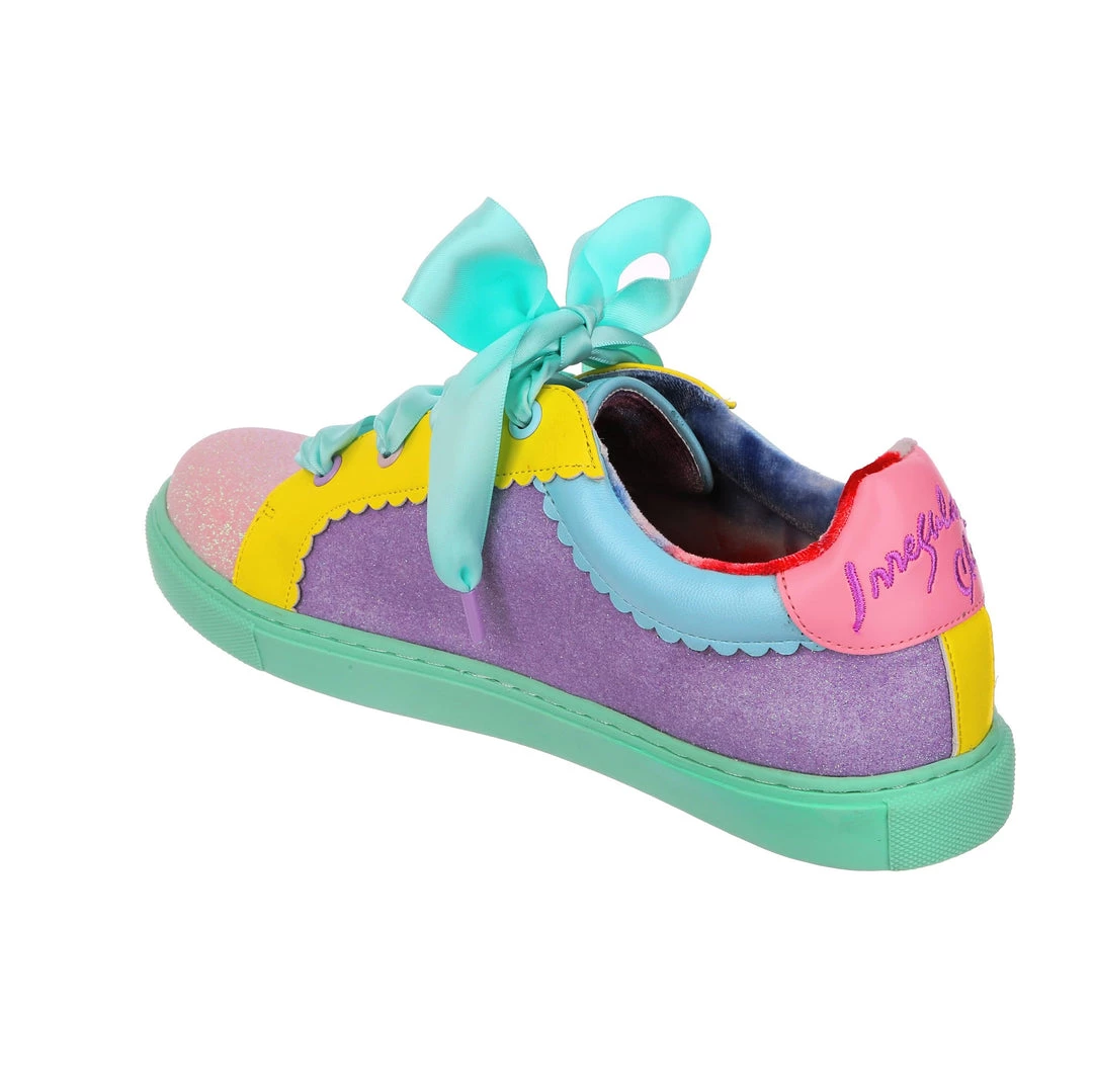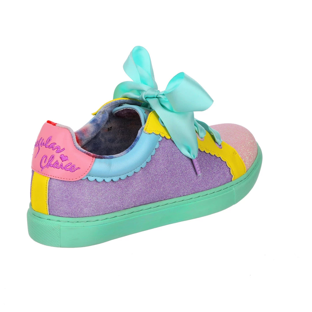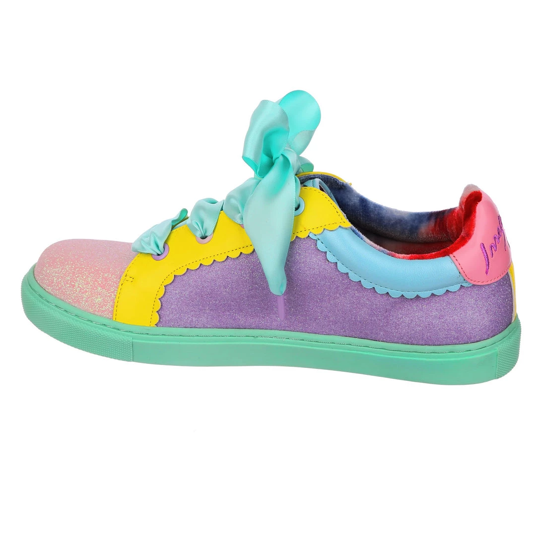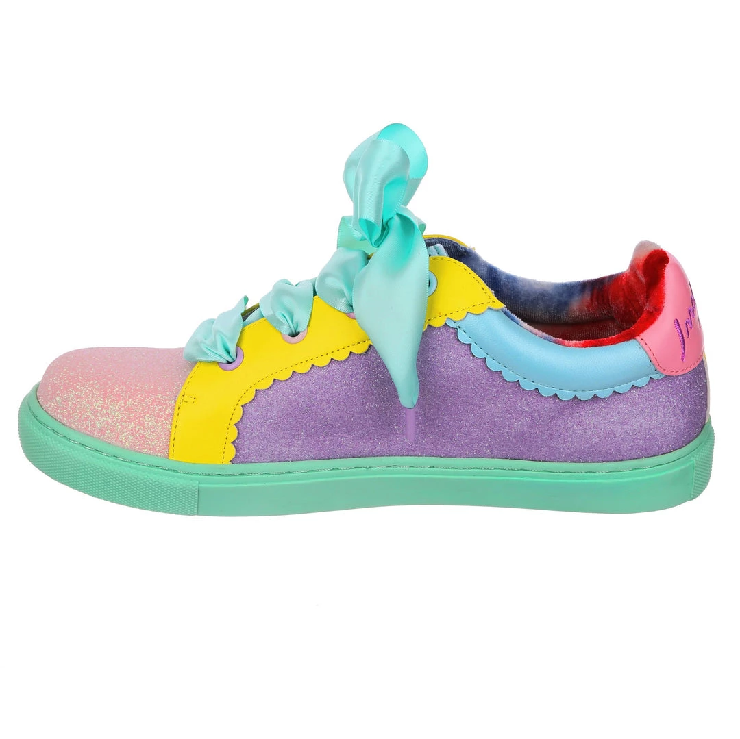 Wanting something comfy and casual but still with some irregular flair, these are the shoes for you! A comfy lace up sneaker style, these pumps are all decked out in a shimmering mismatch patchwork of pastel glitter tones, with bright yellow details and a sumptuous sea foam satin ribbon lace! Absolutely perfect to lace up, step out and show the world what you are made of!