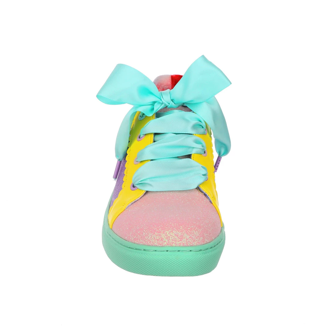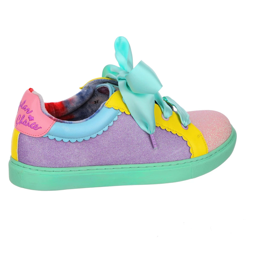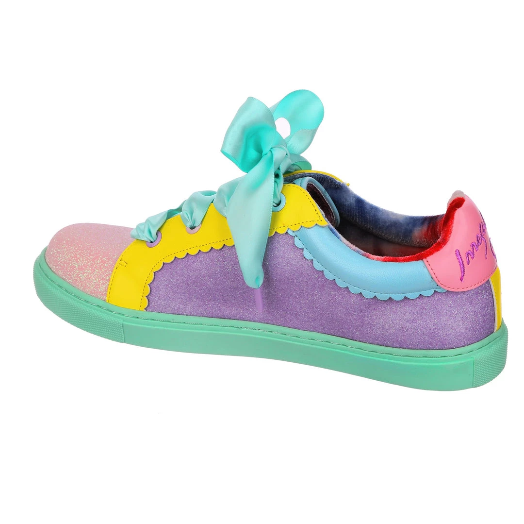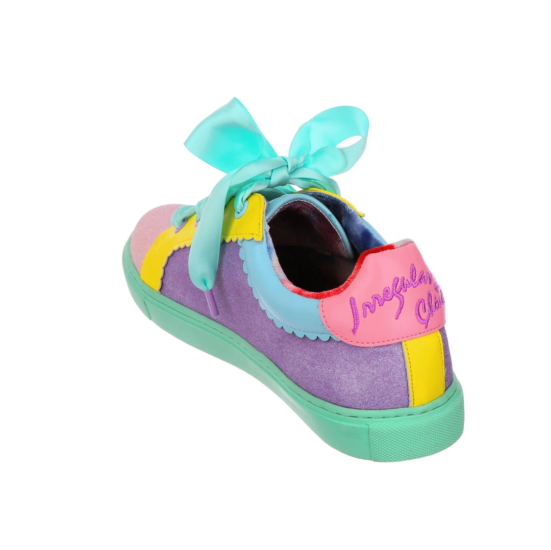 Wanting something comfy and casual but still with some irregular flair, these are the shoes for you! A comfy lace up sneaker style, these pumps are all decked out in a shimmering mismatch patchwork of pastel glitter tones, with bright yellow details and a sumptuous sea foam satin ribbon lace! Absolutely perfect to lace up, step out and show the world what you are made of!