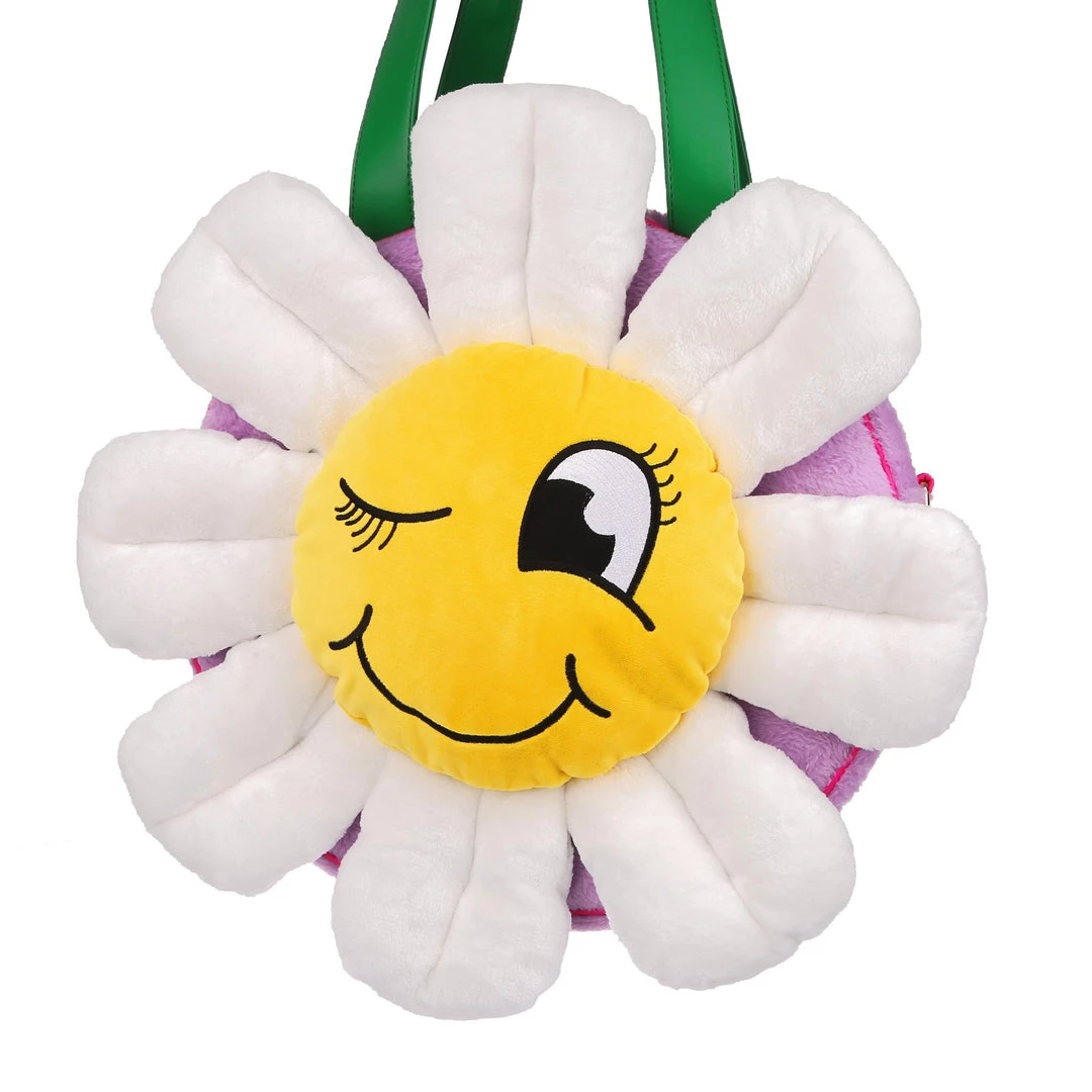 Show you are one with the flowers in this super cute retro floral inspired bag! Featuring a super oversized and gorgeous plush flower, with an adorable face in the middle, and graphic petals, this over the shoulder bag also features a detachable strap with which the bag can be converted into a backpack! Practical and stylish, this bag is the dream!