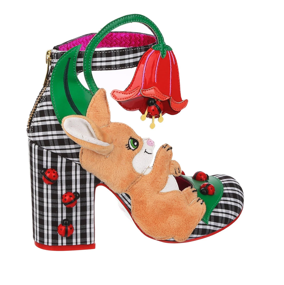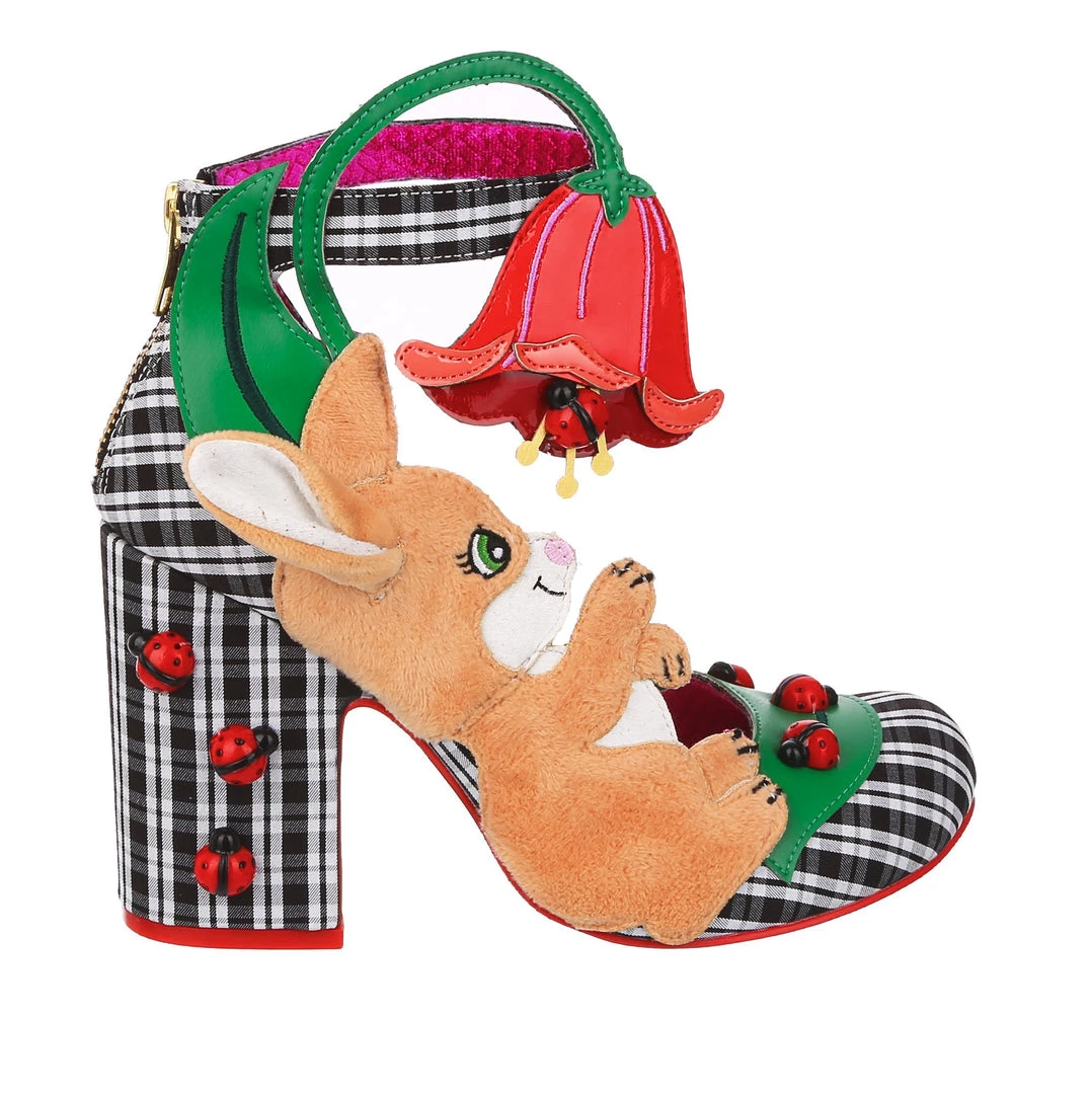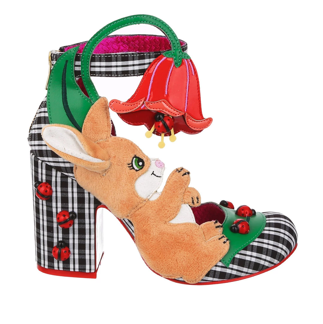 Oh to be a bunny playing with ladybirds on a flower… These whimsical wonders are one for all you animal lovers! A gorgeous chunky heel is wrapped in a classic black and white check, and dotted with adorable 3D ladybird charms! The ankle strap is combined with the large pink flower and also makes these beauties comfortable and wearable, whilst the fuzzy and adorable bunny on the side of the shoe is sure to make you smile!