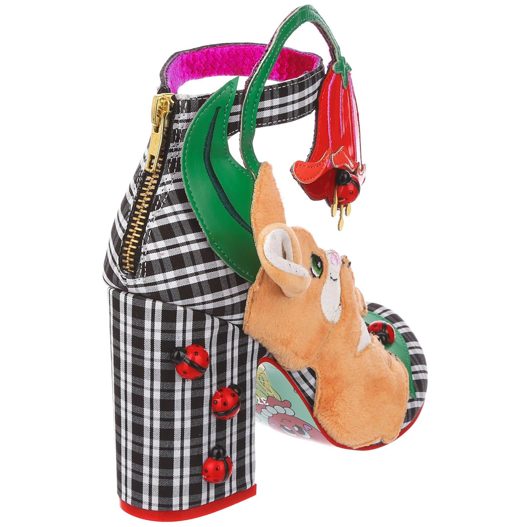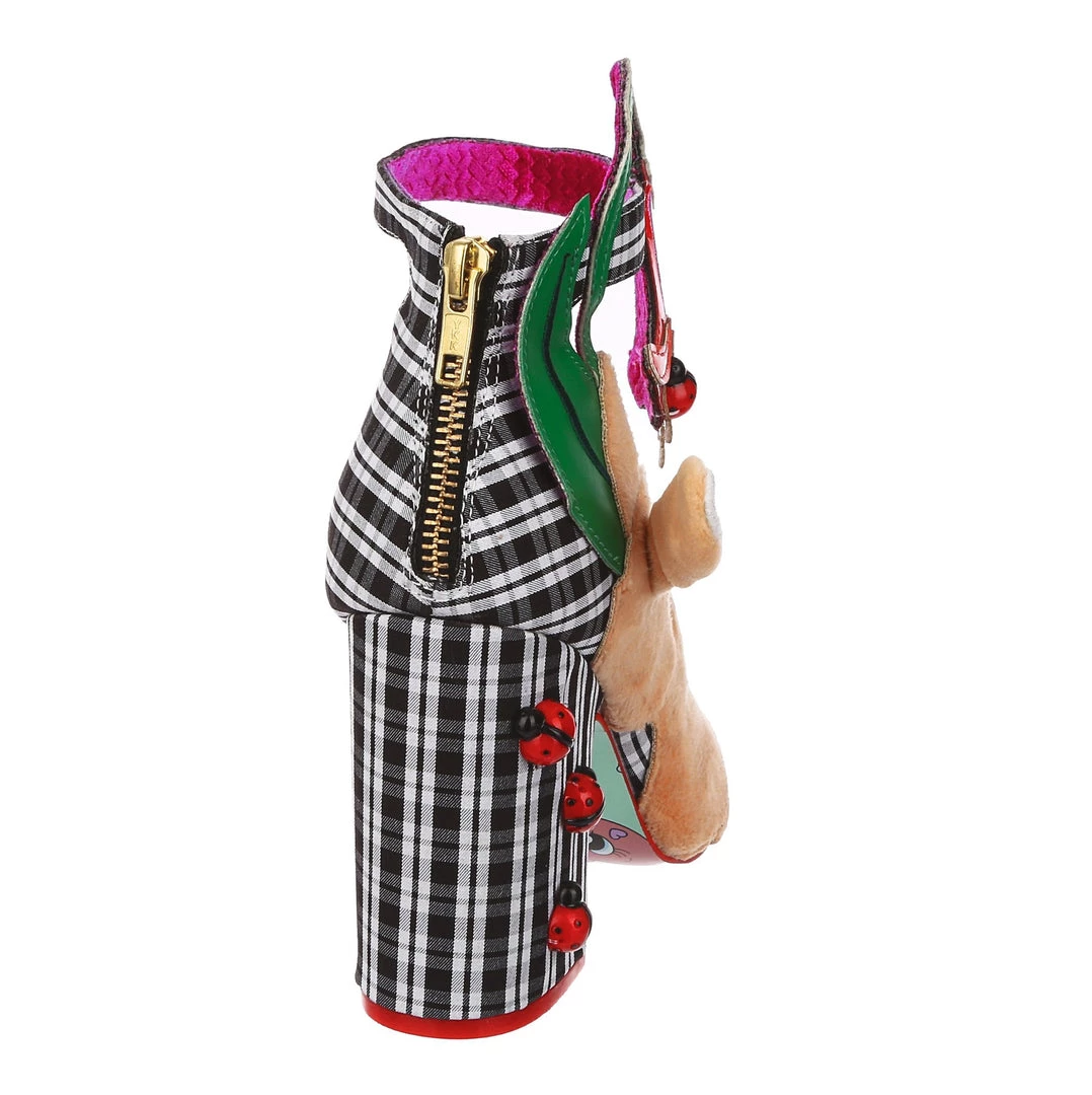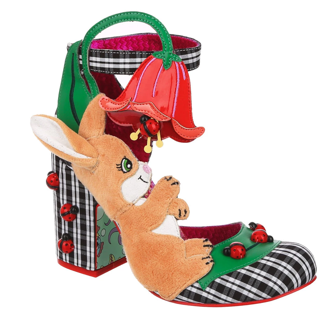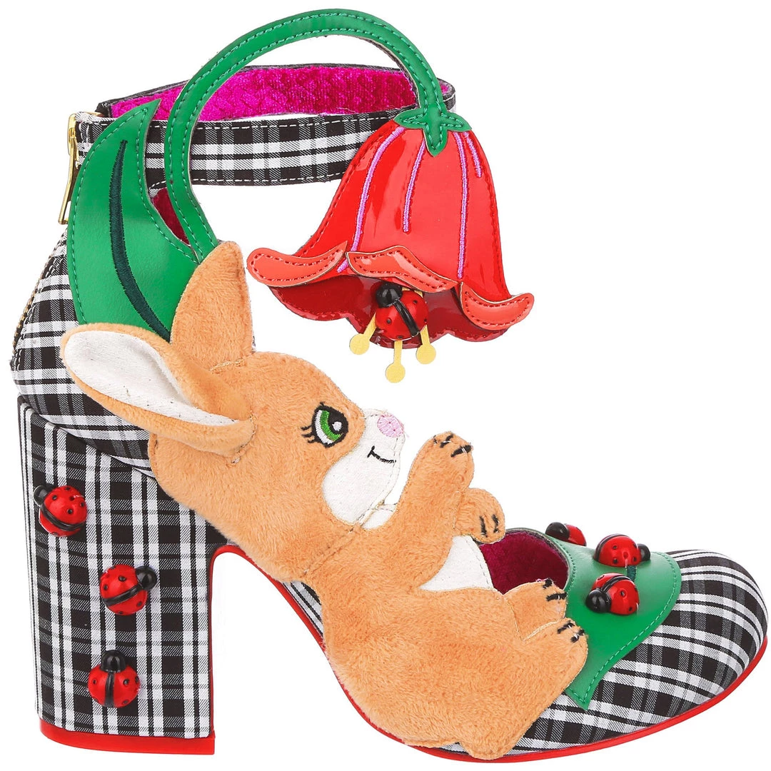 Oh to be a bunny playing with ladybirds on a flower… These whimsical wonders are one for all you animal lovers! A gorgeous chunky heel is wrapped in a classic black and white check, and dotted with adorable 3D ladybird charms! The ankle strap is combined with the large pink flower and also makes these beauties comfortable and wearable, whilst the fuzzy and adorable bunny on the side of the shoe is sure to make you smile!