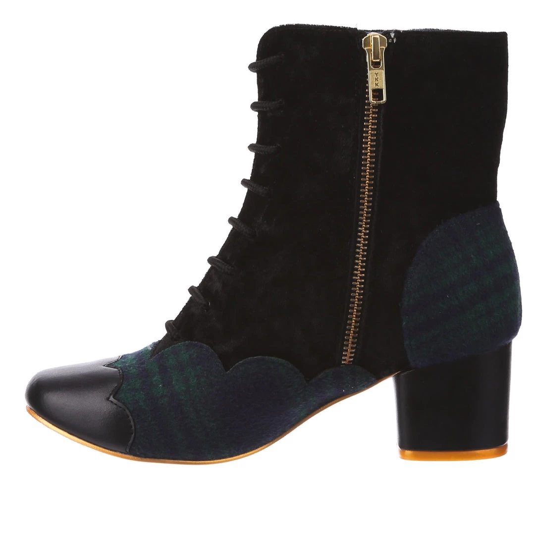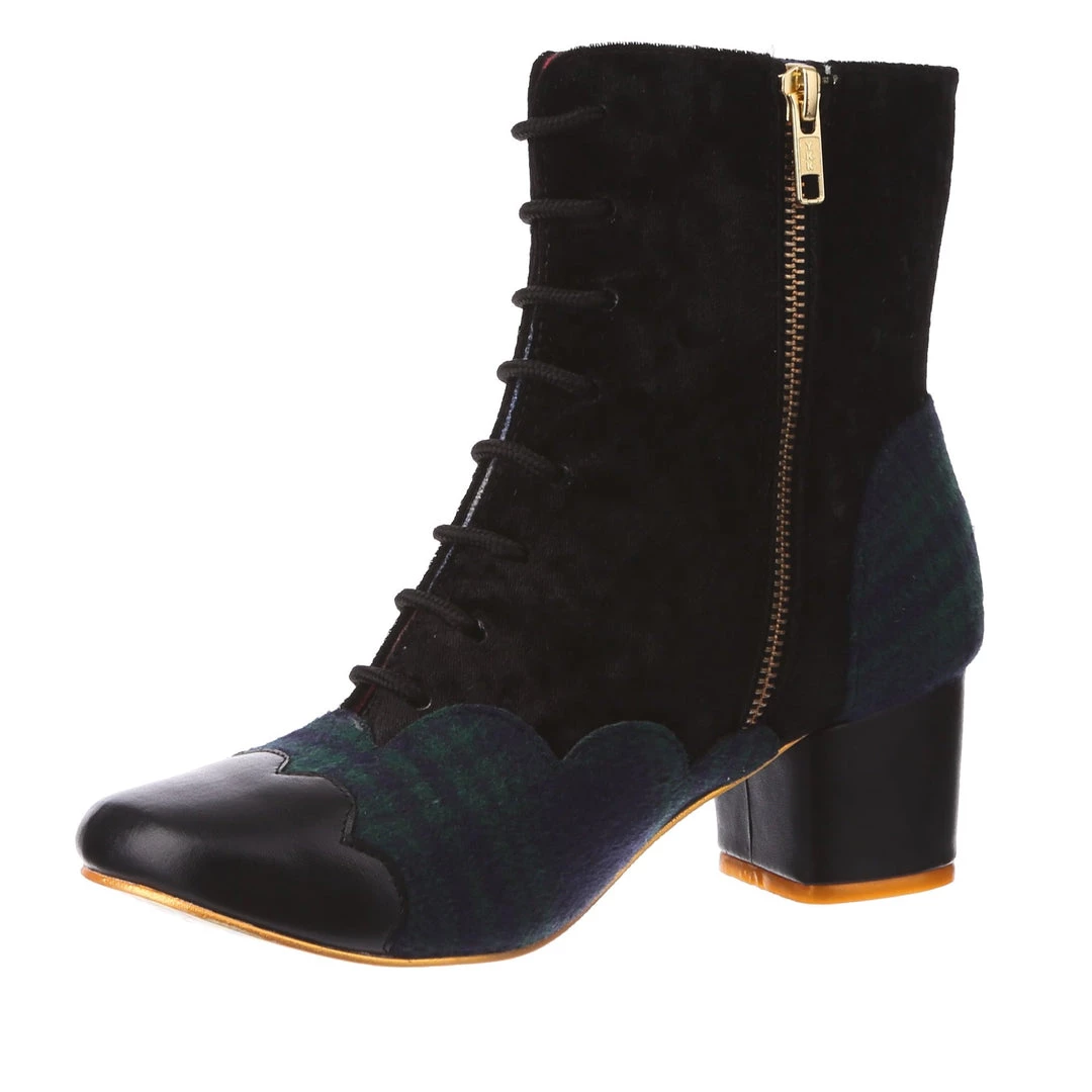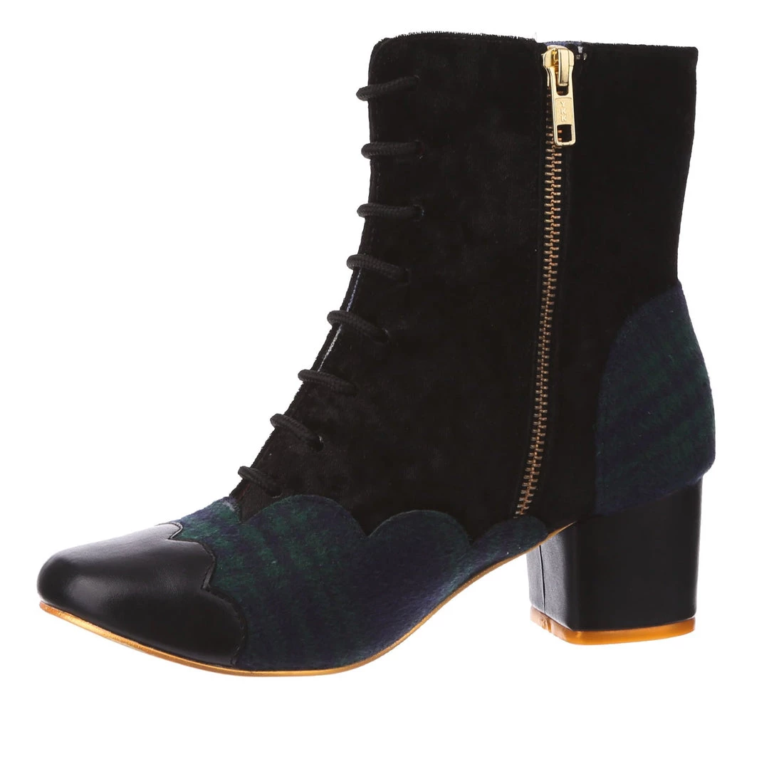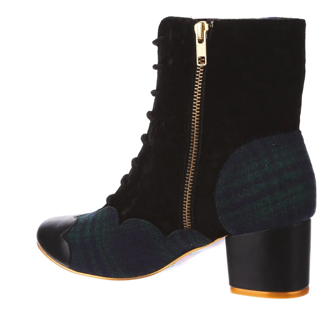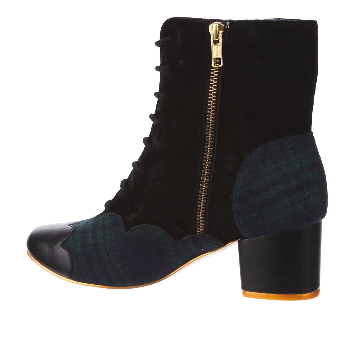 Wander through the forest and say hello to the wilderness! These adorable boots feature a 3D fluffy hedgehog, statement flowers and gorgeous floral embroidery. The fabulous blue tones of the flowers contrast beautifully to the deep black velvet on the upper, and are harmonious with the cosy green tone plaid which wraps around the rest of the boot. Lace up these beauties and have some fun today!