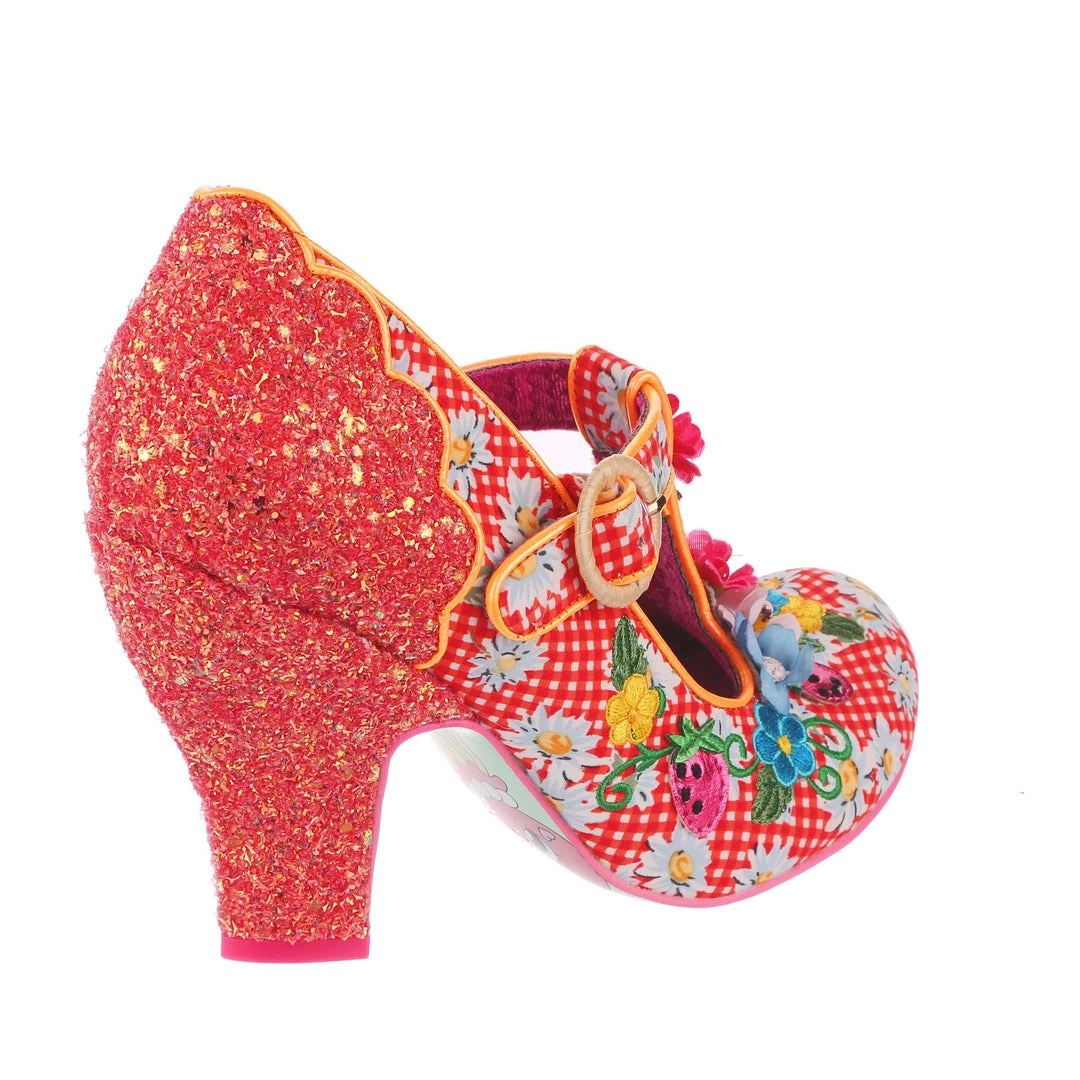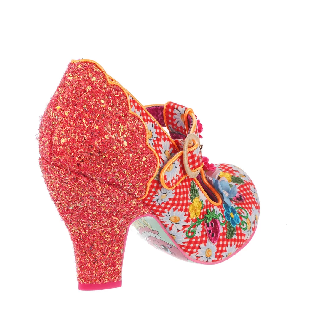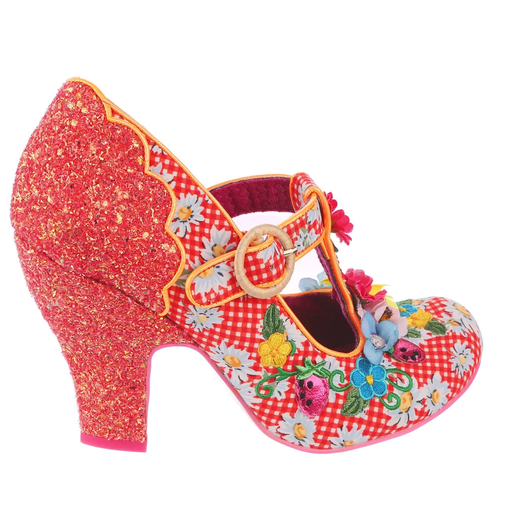 The perfect shoes to put a spring in your step! These T-Bars are covered in the most gorgeous little springtime blooms, which match the darling orange and white gingham upper which has adorable printed daisies on it! The heel and back panelling of the shoe is encrusted in chunky orange glitter, sure to add a little sparkle wherever you go!