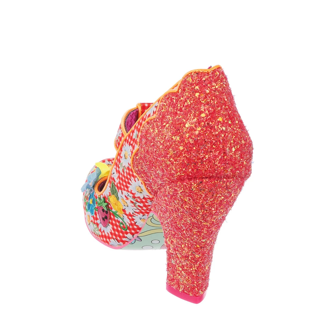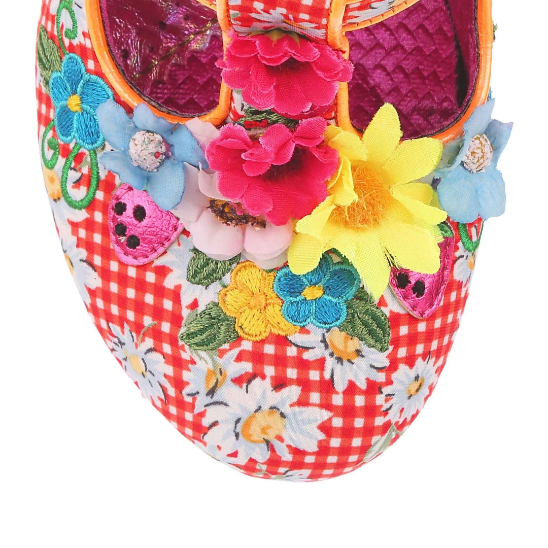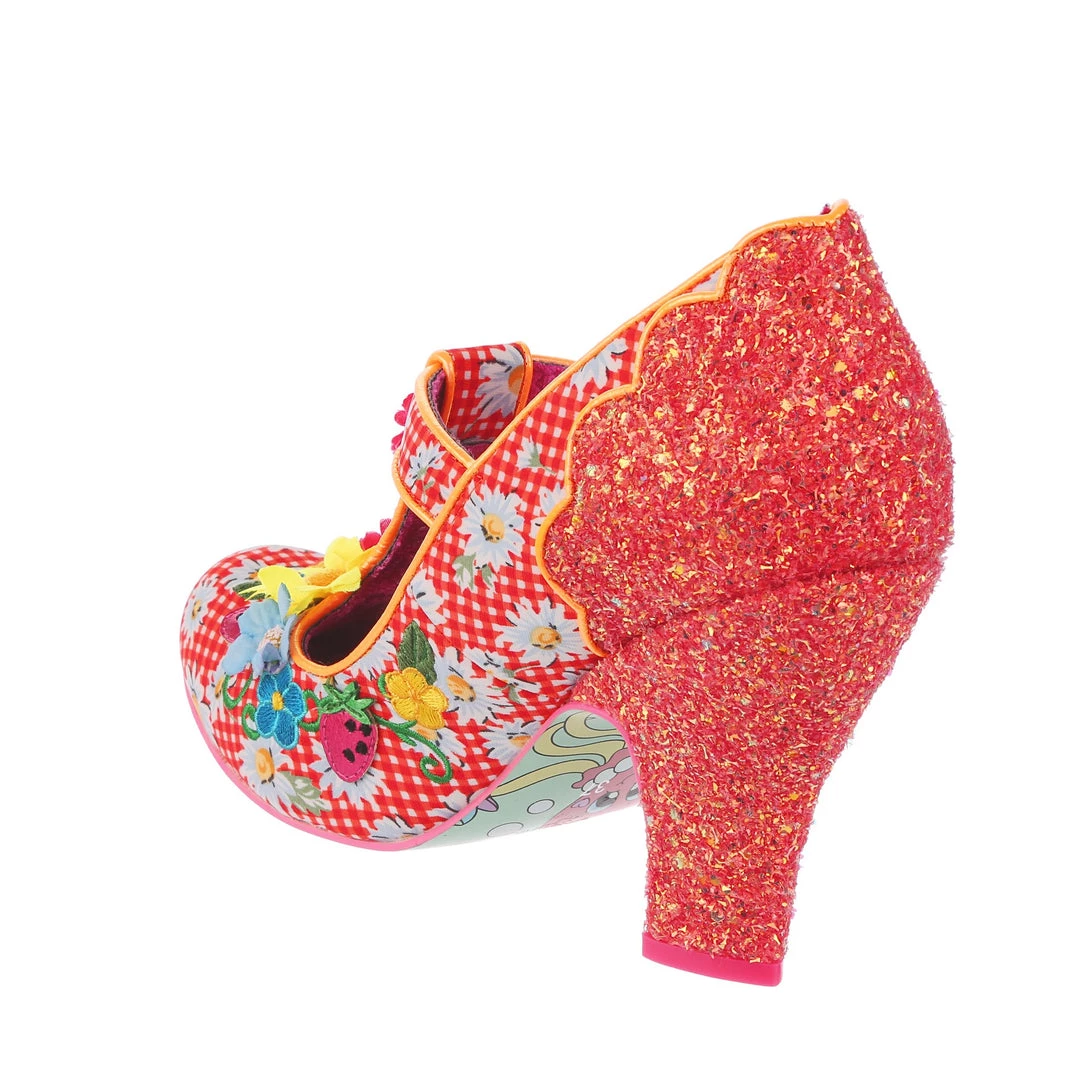 The perfect shoes to put a spring in your step! These T-Bars are covered in the most gorgeous little springtime blooms, which match the darling orange and white gingham upper which has adorable printed daisies on it! The heel and back panelling of the shoe is encrusted in chunky orange glitter, sure to add a little sparkle wherever you go!