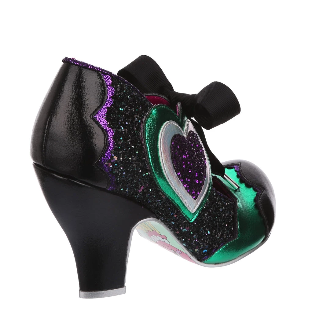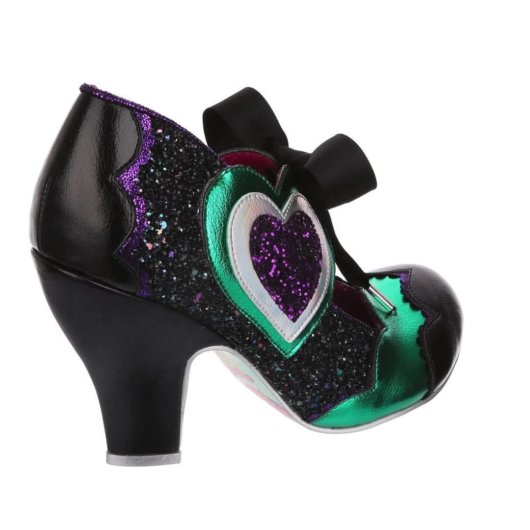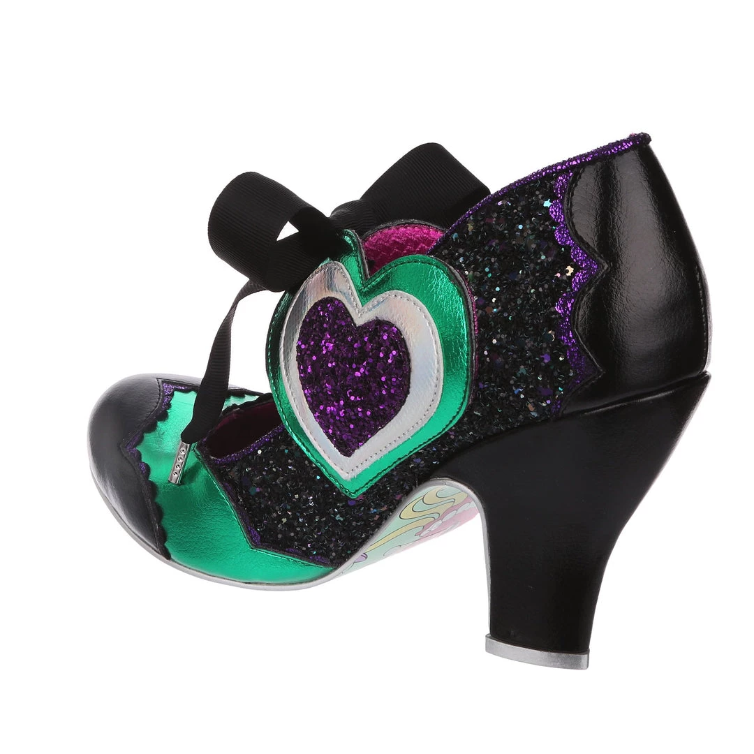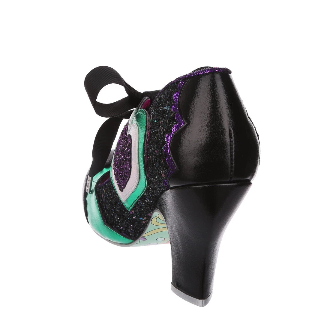 Oooooh feeling grooooovy! Capture the summer of love in these psychedelic wonders! A classic heel shape for us, paired with a tie up Mary Jane strap that forms the stunning retro hearts on the sides! An eye catching contrast of turquoise, purple and black – these are sure to make you fall in love with any outfit!