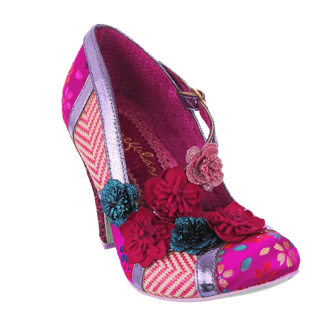 These are a pair of cuties! A diagonal strap crosses the foot, making the leg look longer and giving a beautiful silhouette, which is embellished with fabulous flowers! A stunning pink and white herringbone is paired with the sleek shimmering lilac finishing on the other panels and a multicoloured floral brocade too! Perfect for all you floral lovers who want something a little different!