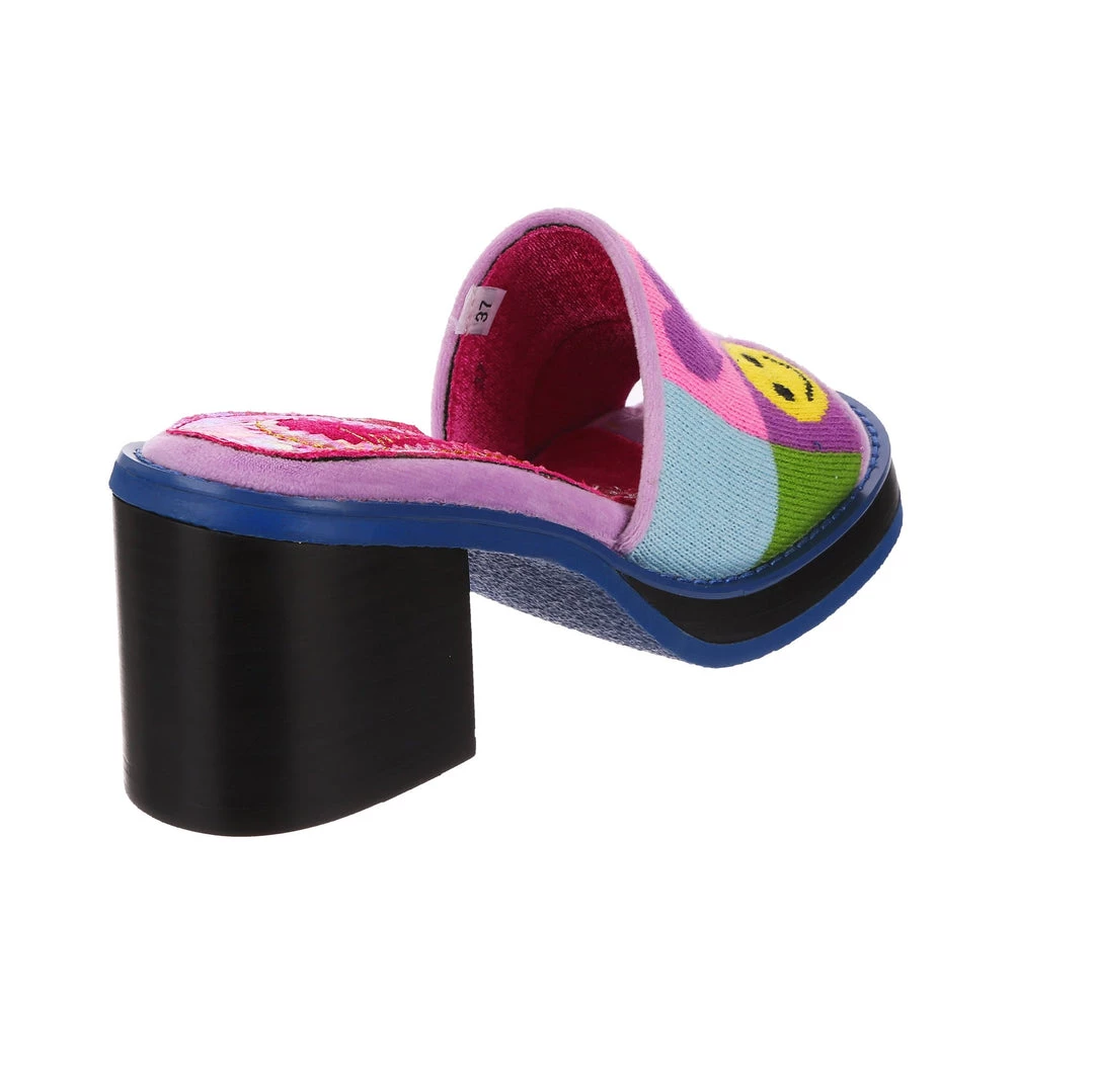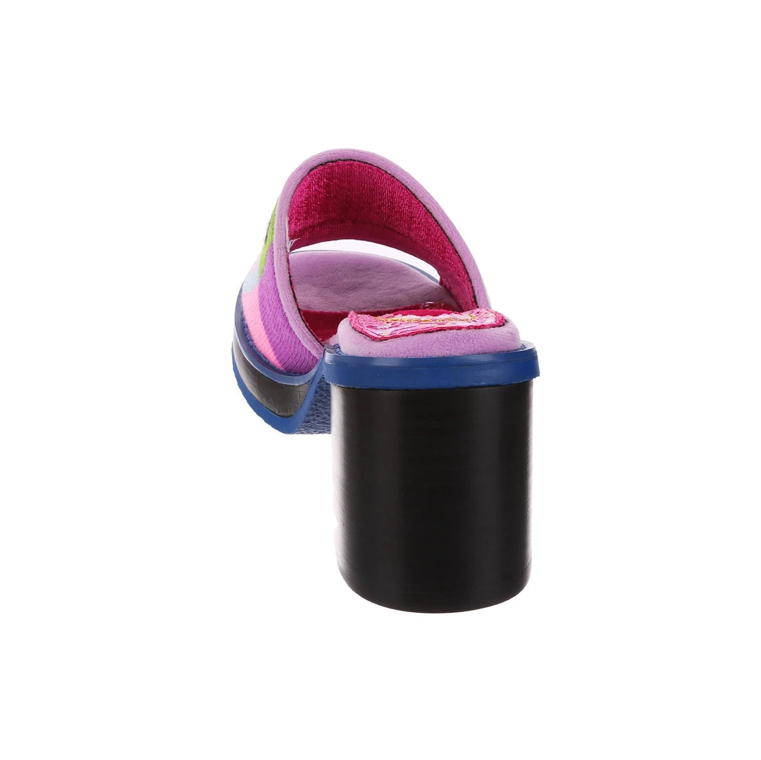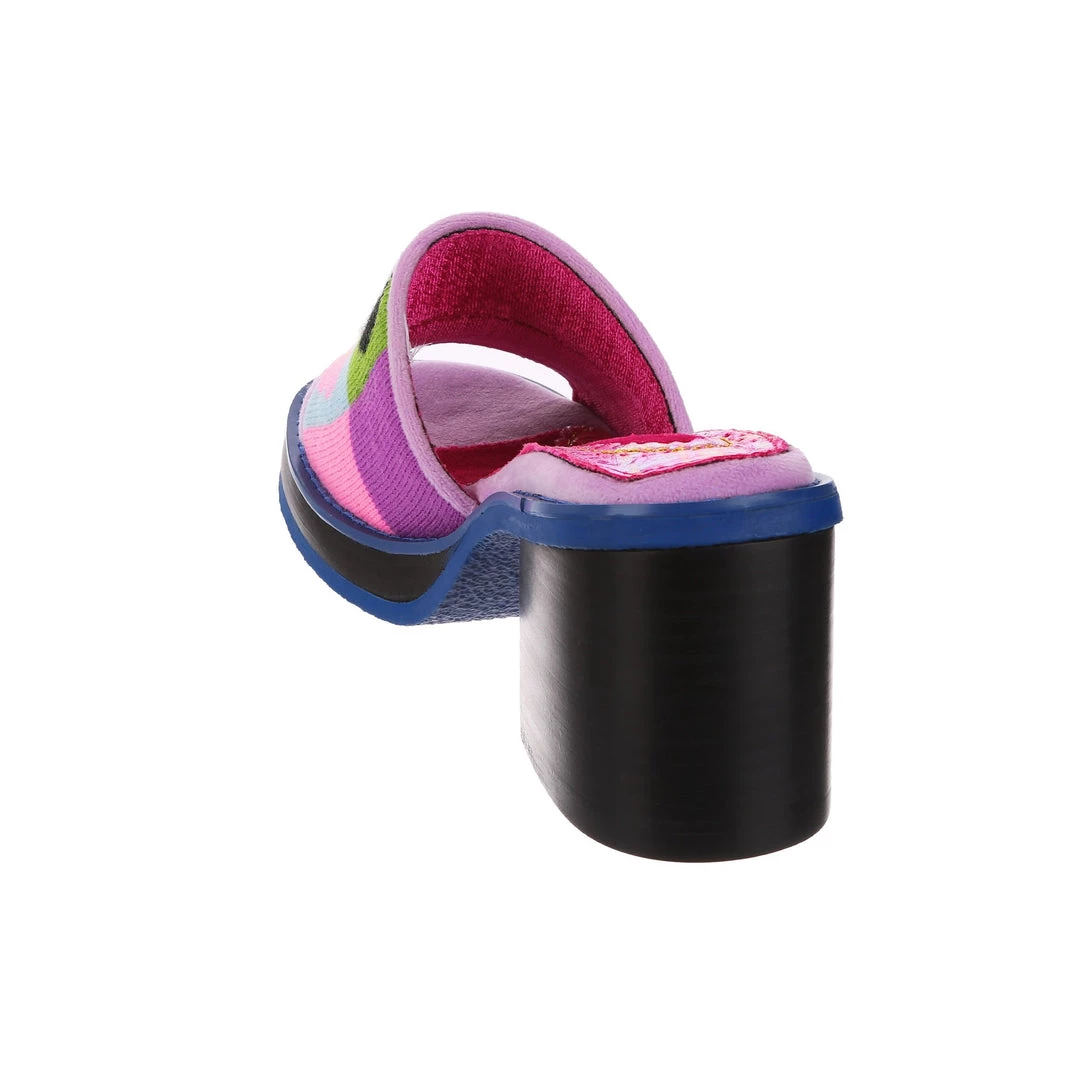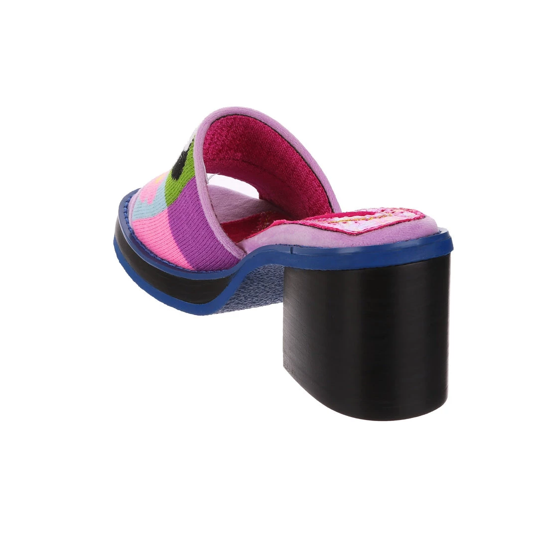 Slip-on these funky fashionista faves! Super cute slide on style, these mules are covered in super cute graphics and have a fun and wearable slick black chunky heel so that you can slip them on and go all day!