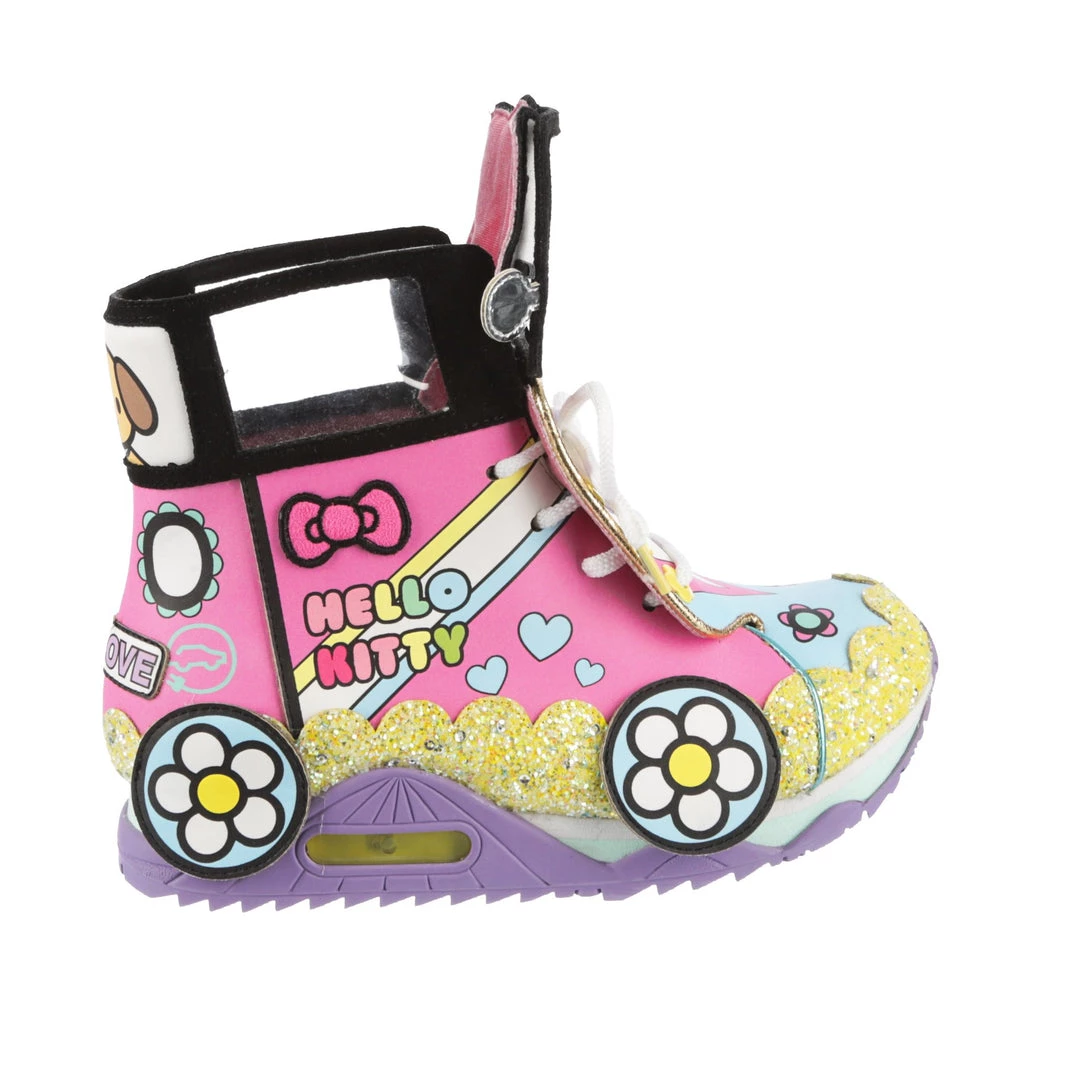 Beep! Beep! Hop in we are going shopping! These kitschy cute trainers are ready to take you on an adventure! Featuring Hello Kitty in the driver’s seat, and cute 3D flower wheels on a magical pastel patterned upper, these are a real showpiece! Make sure to add them to your collection today!