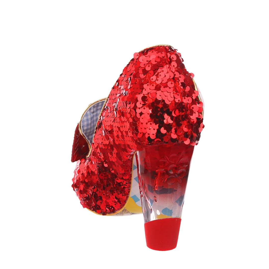 And you were there, and you were there… And these shoes were definitely there! We are talking about our dream wardrobe of course. A bit of a modern take on the Ruby Slippers™, these lucite heeled beauties are the perfect update to the iconic magic shoes! Dripping in ruby sequins, the front bow of these beauties twinkles and lights up with fabulous LED lights! The hearts on the back feature the Wizard of Oz™ logo, as well as a movie photo framed by stunning baby pink gingham. Make sure you add them to your life before they are whisked away by a tornado!
