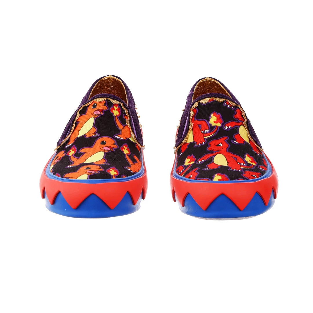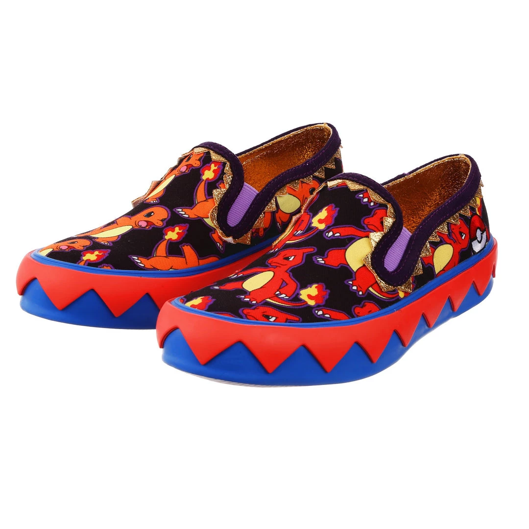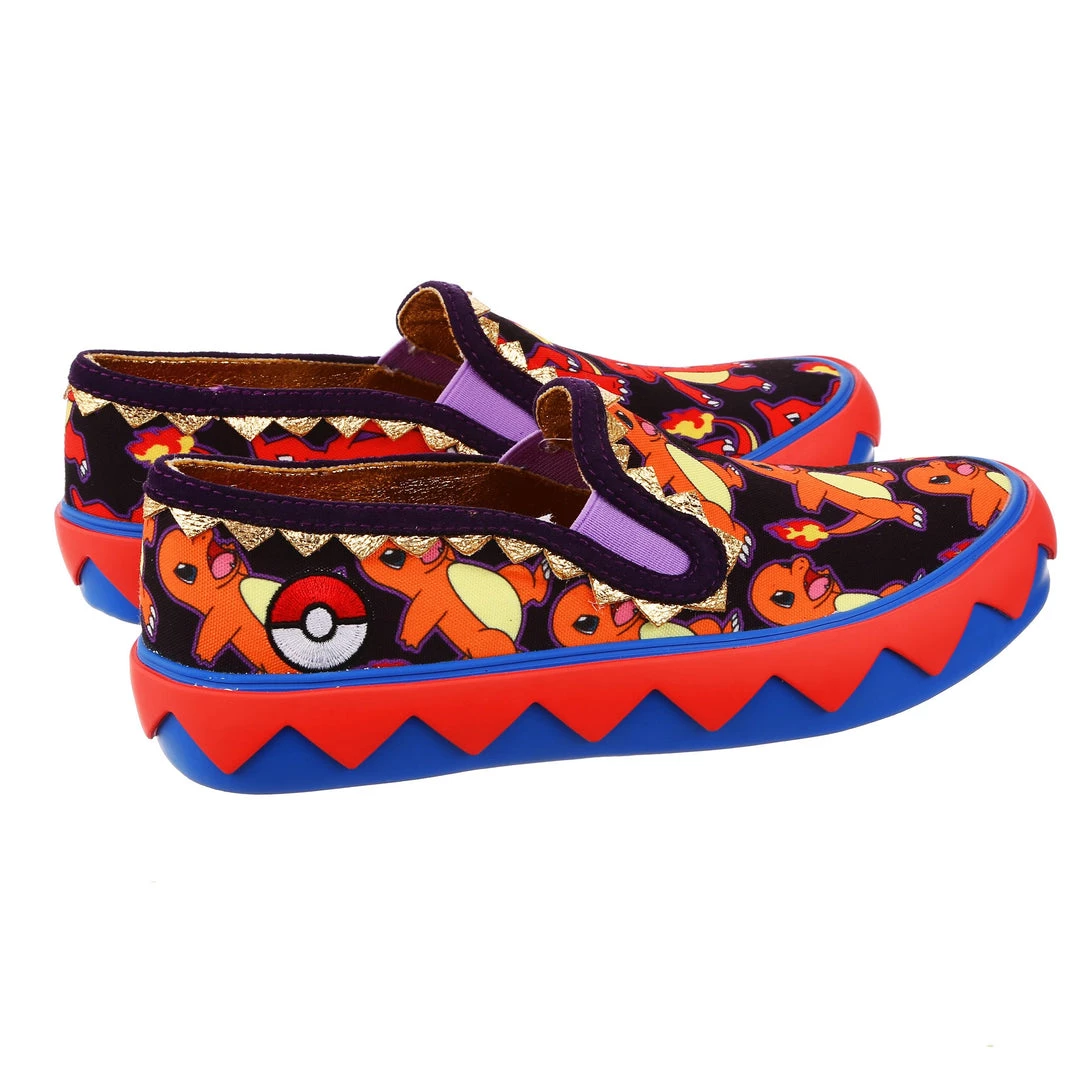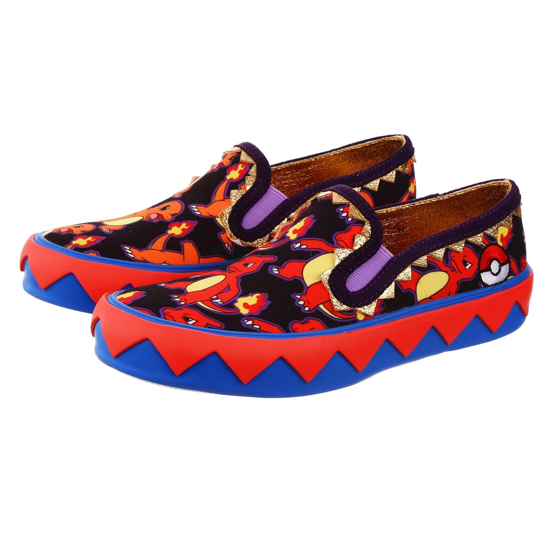 BRB, I’m adventuring! Choose your Pokémon and go on an adventure in these awesome slip ons! With one foot featuring Charmander and the other Charmeleon, these print-tastic kicks are perfect for any fire-type trainer or lover of the adorable Pokémon! A graphic zig-zag trim borders the sole to give a little extra detail, and the purple elastic on the upper makes it easy to slip them on and off! So what are you waiting for? Go, Charmander!