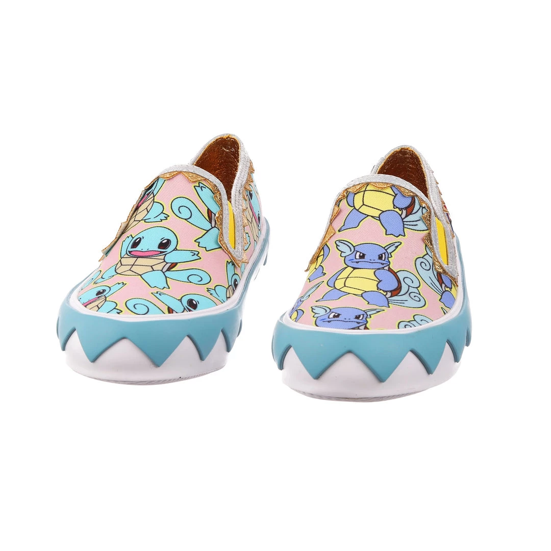 BRB, I’m adventuring! Choose your Pokémon and go on an adventure in these awesome slip ons! With one foot featuring Squirtle and the other Wartortle, these print-tastic kicks are perfect for any water-type trainer or lover of the adorable Pokémon! A graphic zig-zag trim borders the sole to give a little extra detail, and the yellow elastic on the upper makes them easy to slip on and off! So what are you waiting for? Go, Squirtle!