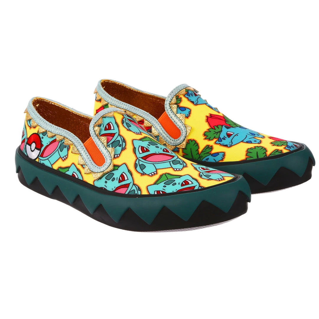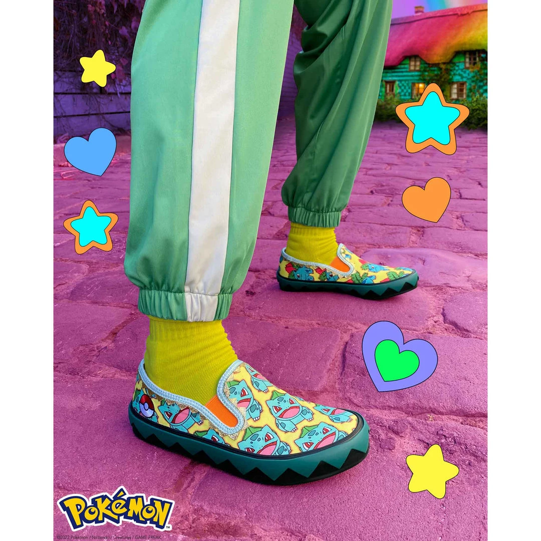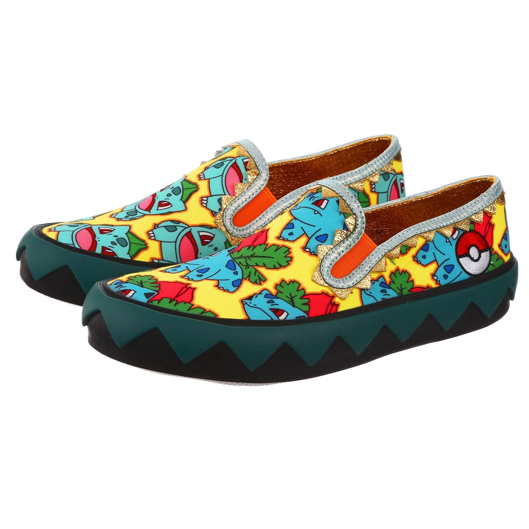 BRB, I’m adventuring! Choose your Pokémon and go on an adventure in these awesome slip ons! With one foot featuring Bulbasaur and the other Ivysaur, these print-tastic kicks are perfect for any grass-type trainer or lover of the adorable Pokémon! A graphic zig-zag trim borders the sole to give a little extra detail, and the red elastic on the upper makes them easy to slip on and off! So what are you waiting for? Go, Bulbasaur!