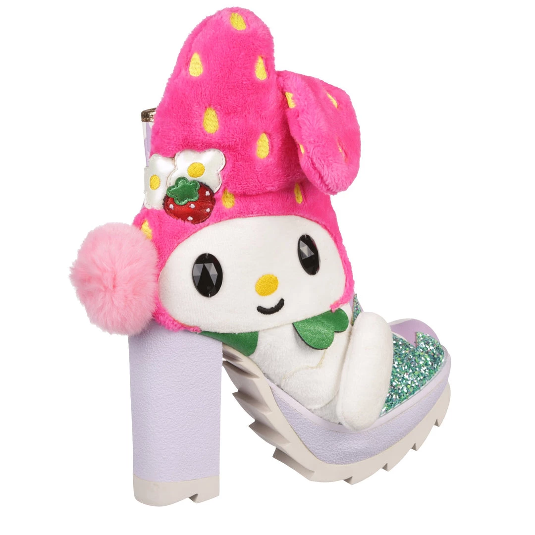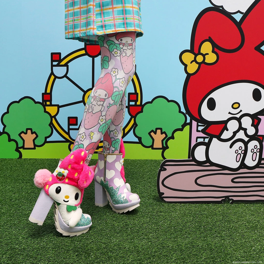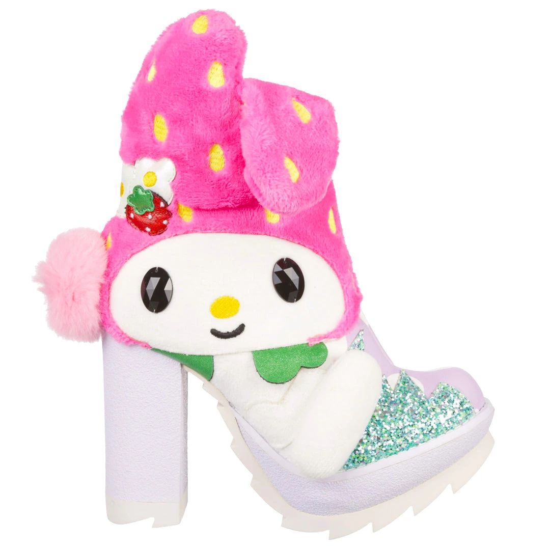 Hop skip and jump your way to cute in these adorable boots! Featuring My Melody, these boots are a mix of metallics, plush and fluffy textures with a 3D pom pom tail and floppy ears too! The chunky heel and tread make these a striking pair of shoes, perfect to take any outfit to the next level and also show your love of My Melody! Add them to your wardrobe today!