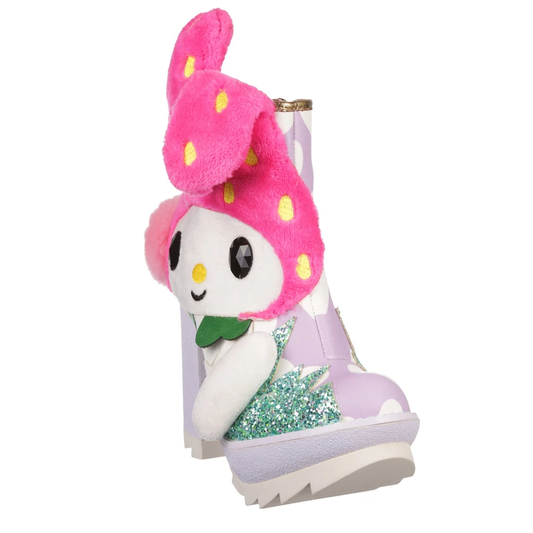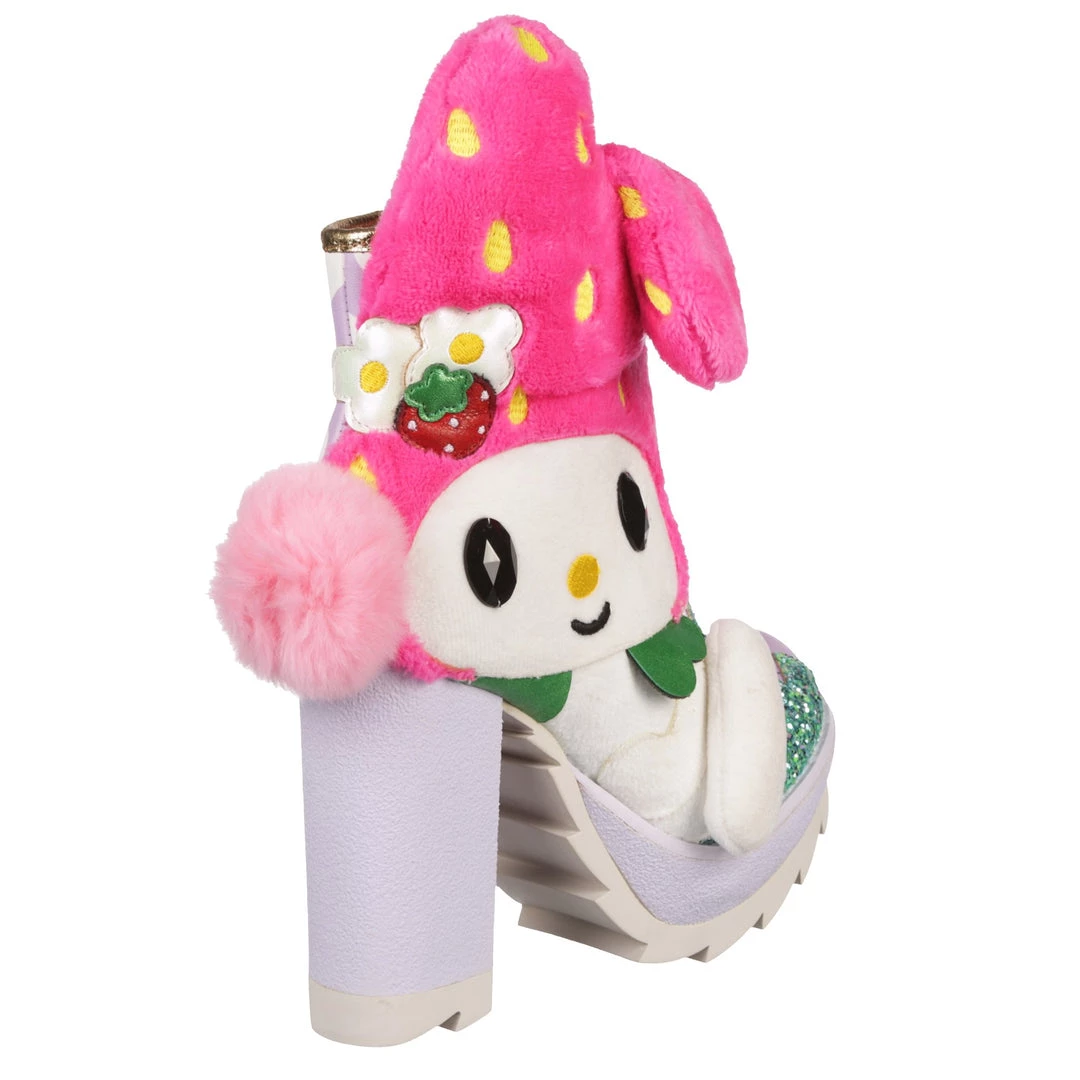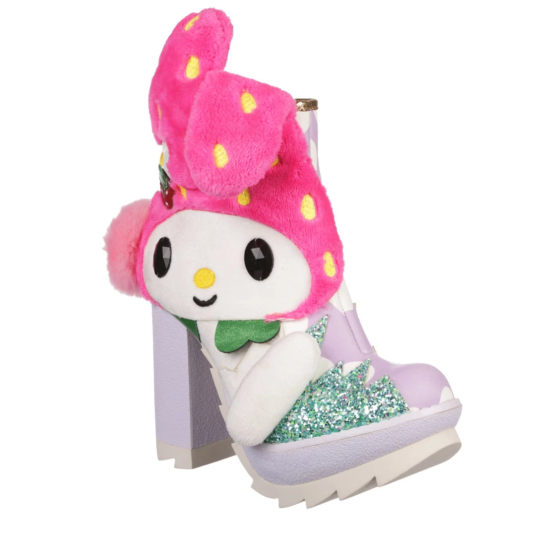 Hop skip and jump your way to cute in these adorable boots! Featuring My Melody, these boots are a mix of metallics, plush and fluffy textures with a 3D pom pom tail and floppy ears too! The chunky heel and tread make these a striking pair of shoes, perfect to take any outfit to the next level and also show your love of My Melody! Add them to your wardrobe today!