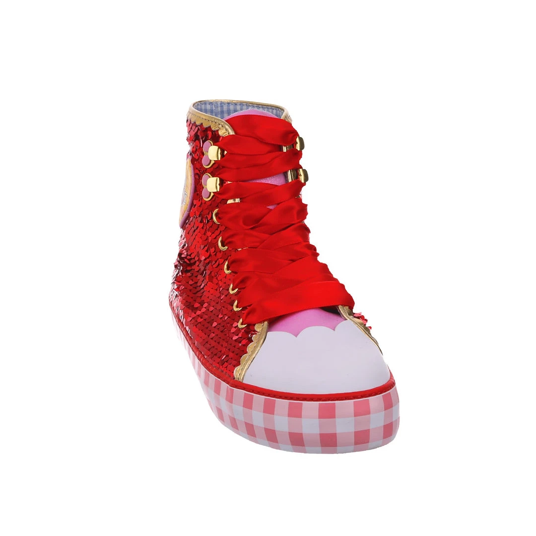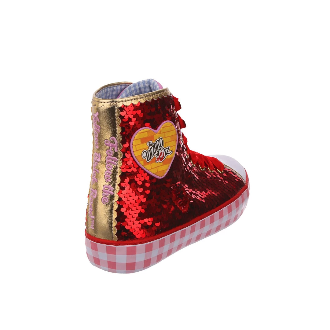 Want all the magic of the Ruby Slippers™, but not really a heels person? We got you covered! These ruby sneakers take all that glitz, glamour and gorgeousness and give it a wearable street style twist! With a pink gingham sole for a bit of extra Dorothy™ dazzle, and hearts on the side featuring the Wizard of Oz™ logo as well as a movie still for that extra nostalgia. Perfect to take your adventure on the go, get ready to click your heels three times!