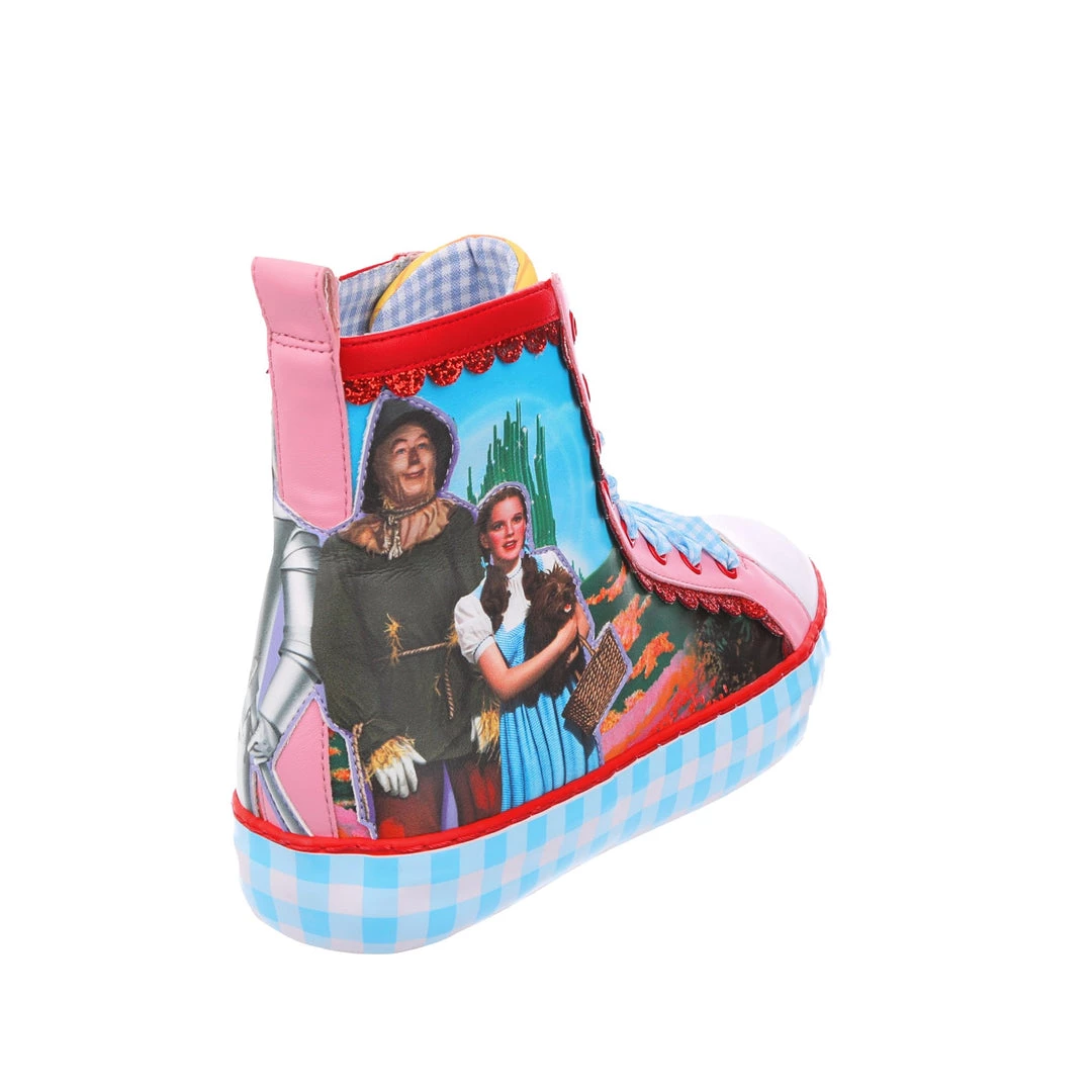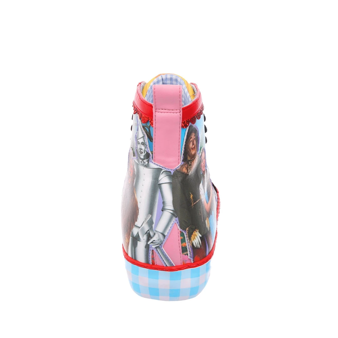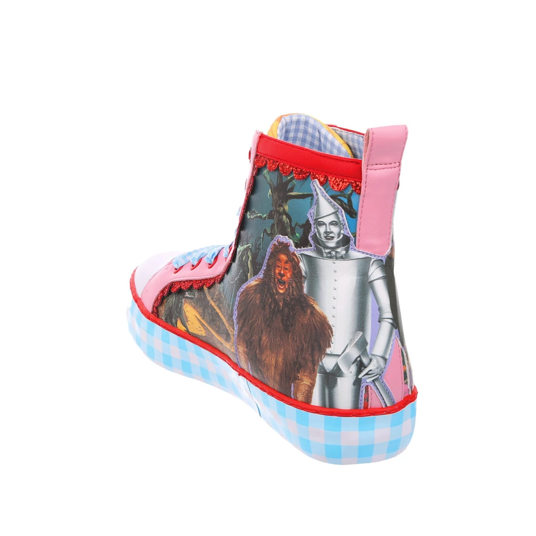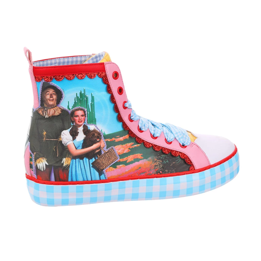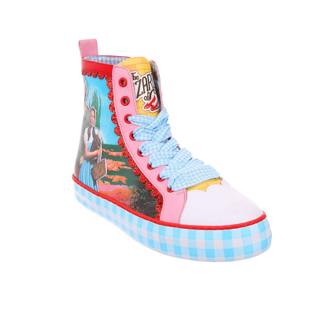 Get practicing your skip, these lace up beauties are sure to take you on all the adventures! Featuring imagery of Dorothy™, Toto™, The Scarecrow™, The Tin Man™ and The Cowardly Lion™, against a stunning landscape from the movie, these high tops are the perfect party piece. A chunky sole is decked out in blue gingham print, which matches the fabulous ribbon laces! So lace them up and get skipping!